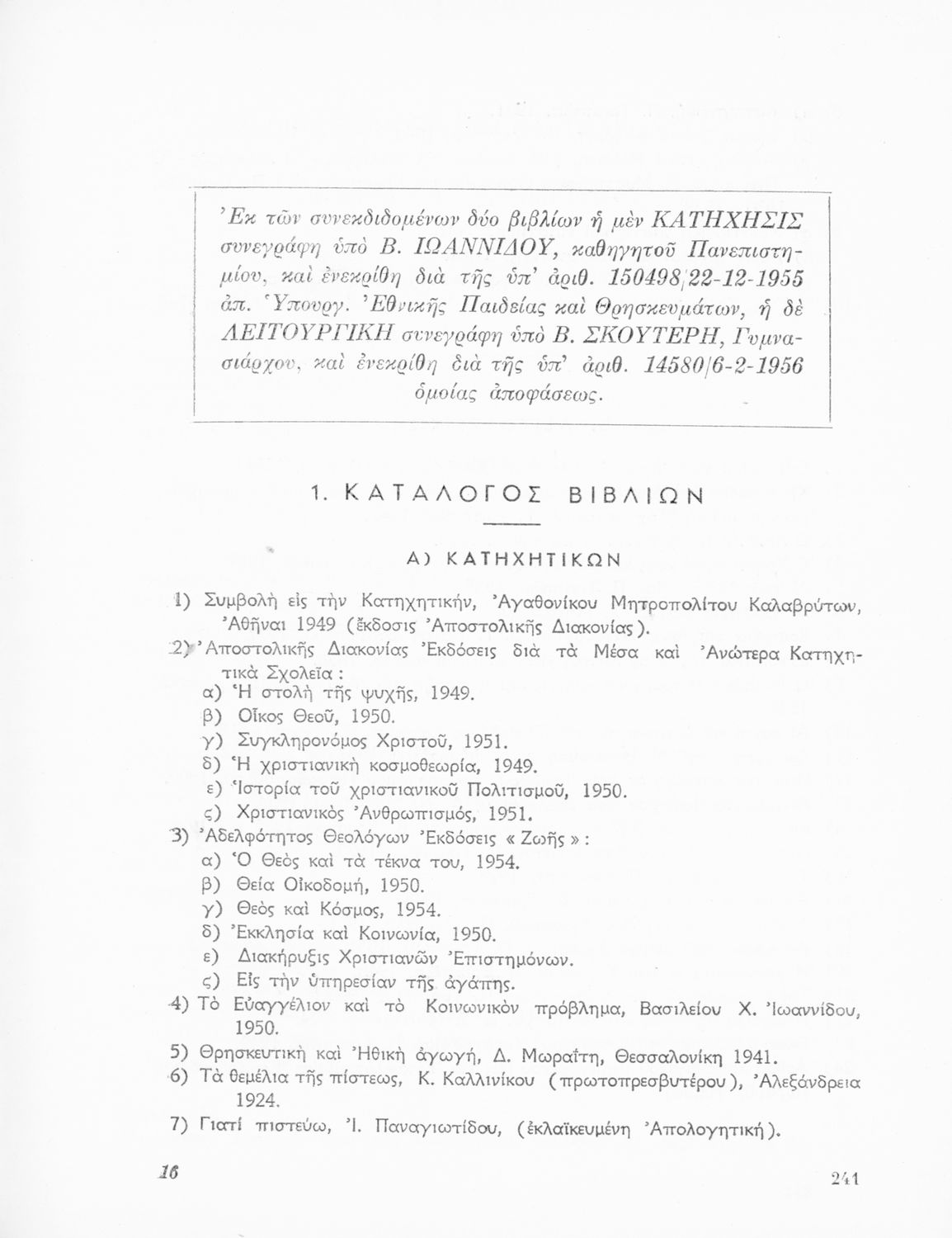 Μάθημα: Θρησκευτικά Γλώσσα: Καθαρεύουσα Παρουσίαση περιεχομένου: Σχολικό εγχειρίδιο Θρησκευτικών που αναλύει την έννοια της κατήχησης στις διάφορες θρησκείες με έμφαση στο ορθόδοξο χριστιανικό δόγμα, το οποίο εξετάζει από δογματική και ηθική σκοπιά. Περιλαμβάνει και στοιχεία λειτουργικής της Ορθόδοξης Εκκλησίας. |