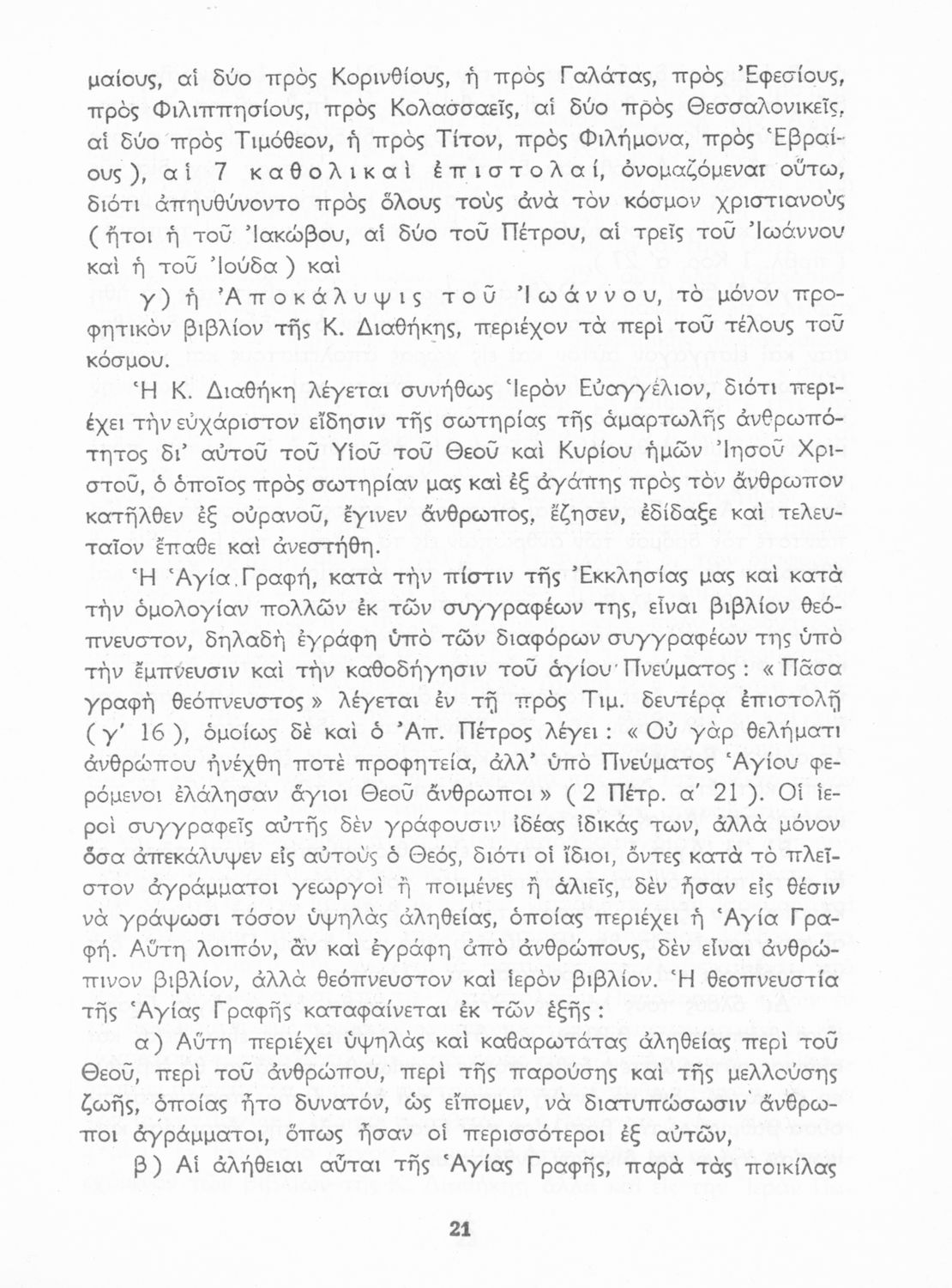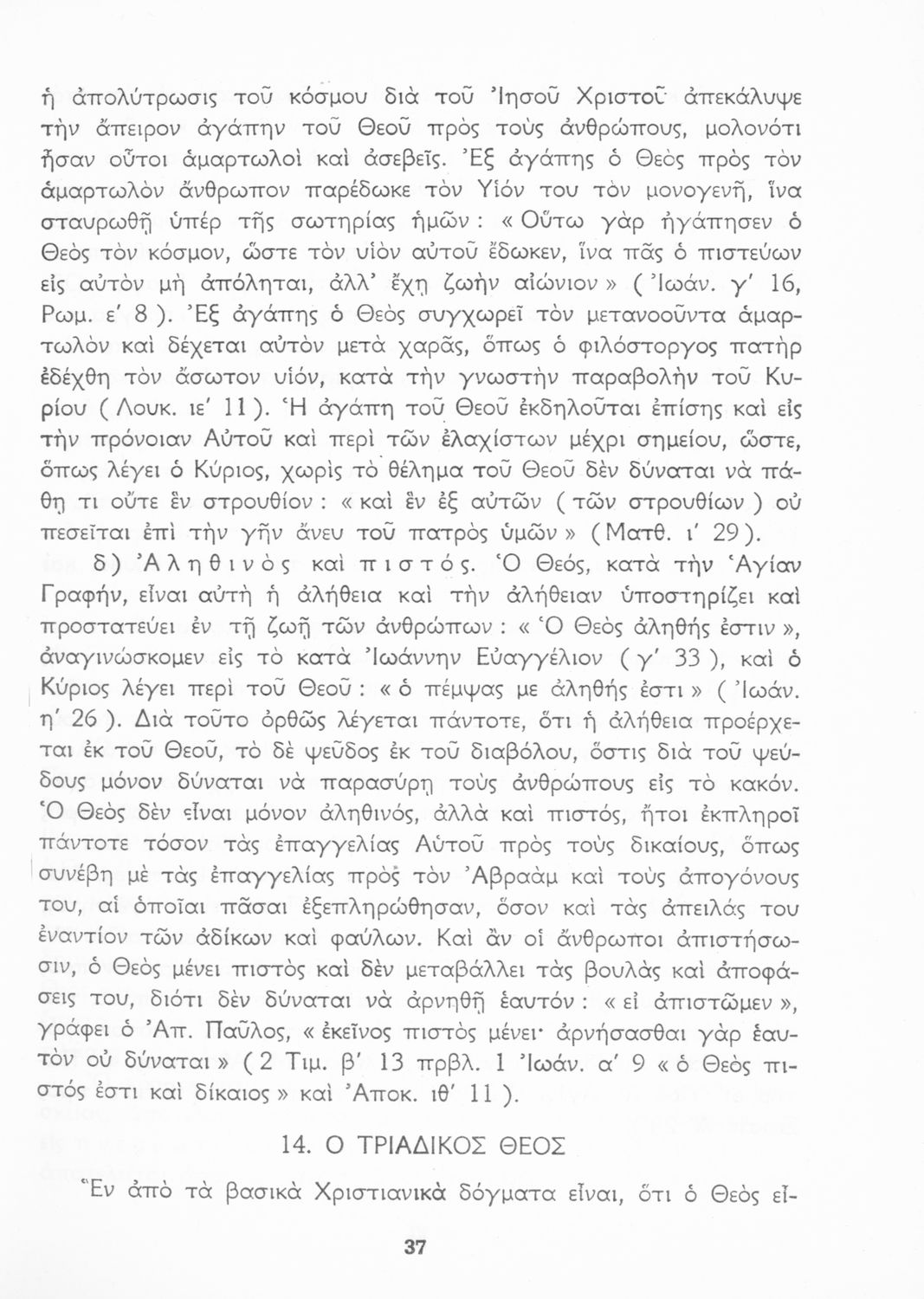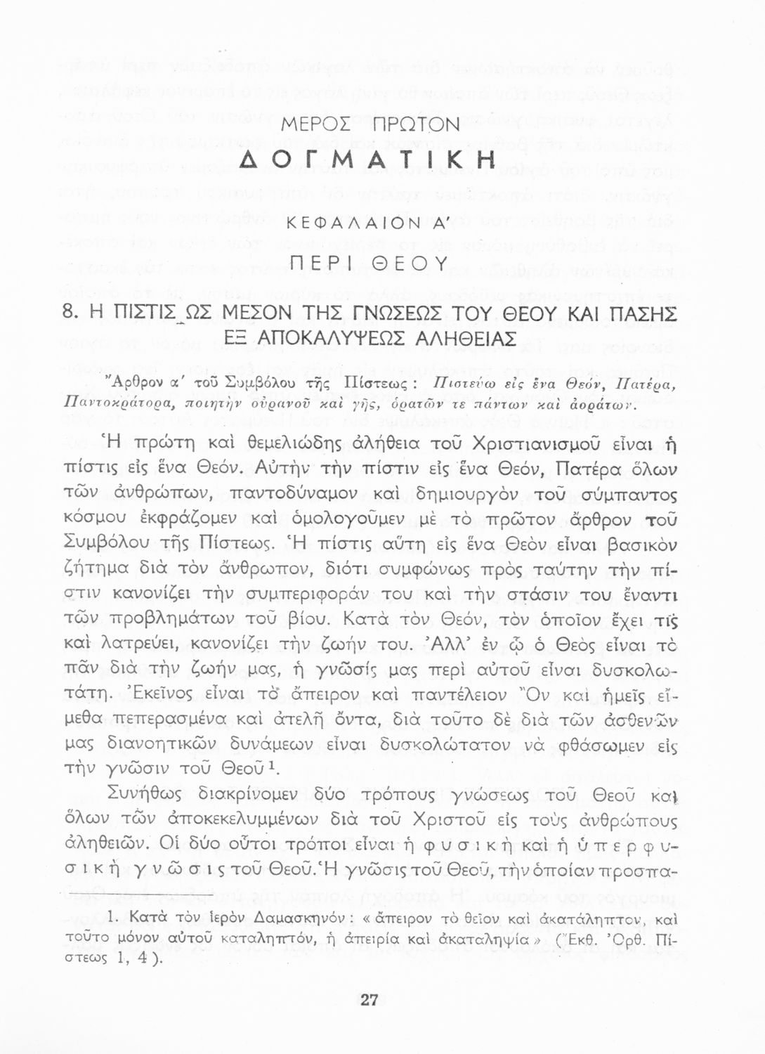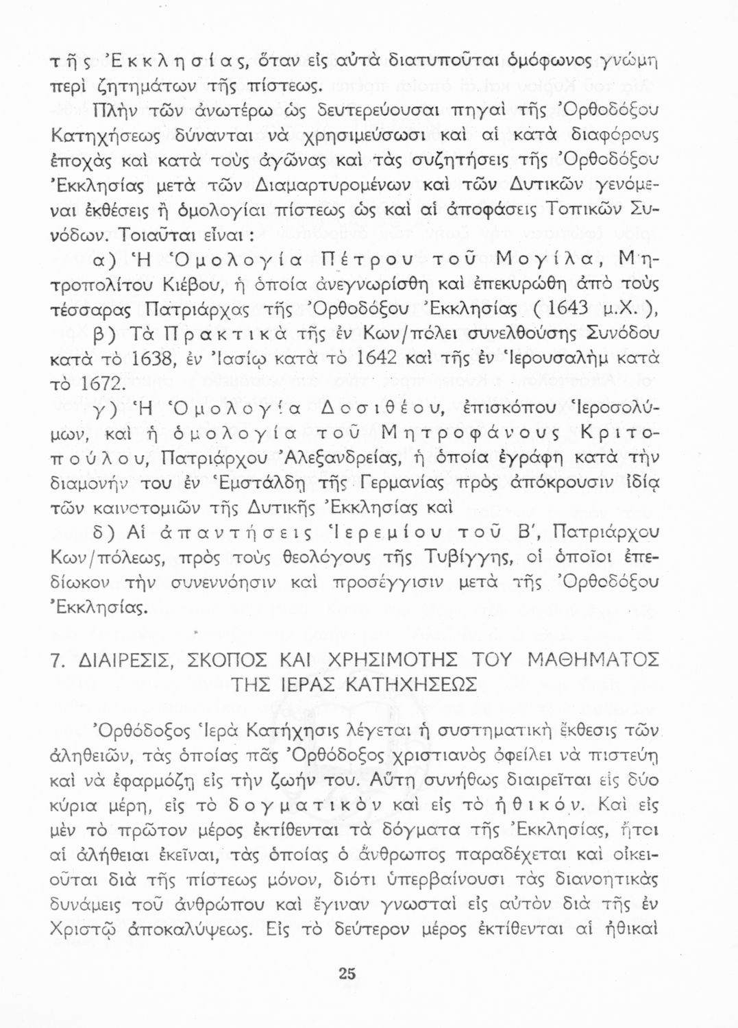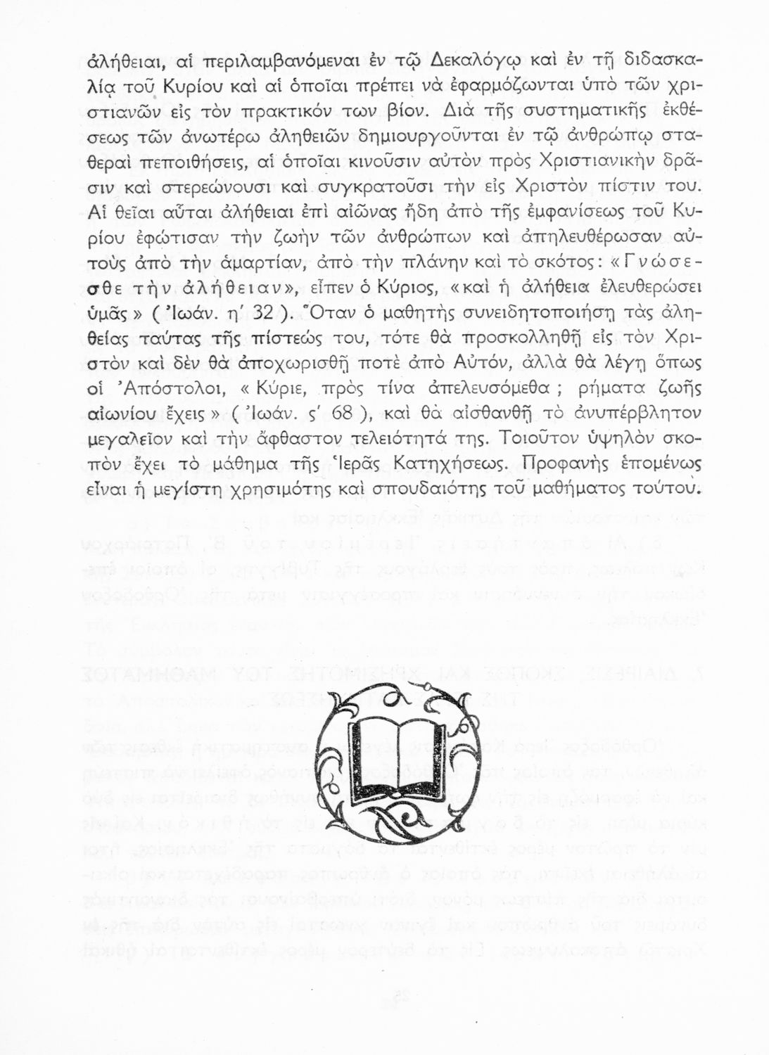Μάθημα: Θρησκευτικά Γλώσσα: Καθαρεύουσα Παρουσίαση περιεχομένου: Σχολικό εγχειρίδιο Θρησκευτικών που αναλύει την έννοια της κατήχησης στις διάφορες θρησκείες με έμφαση στο ορθόδοξο χριστιανικό δόγμα, το οποίο εξετάζει από δογματική και ηθική σκοπιά. Περιλαμβάνει και στοιχεία λειτουργικής της Ορθόδοξης Εκκλησίας. |
