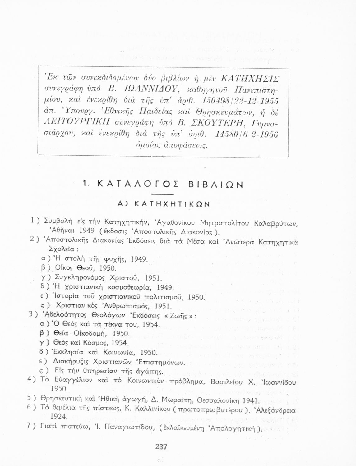 Μάθημα: Θρησκευτικά Γλώσσα: Καθαρεύουσα Παρουσίαση περιεχομένου: Σχολικό εγχειρίδιο Θρησκευτικών που αναλύει την έννοια της κατήχησης στις διάφορες θρησκείες με έμφαση στο ορθόδοξο χριστιανικό δόγμα, το οποίο εξετάζει από δογματική και ηθική σκοπιά. Περιλαμβάνει και στοιχεία λειτουργικής της Ορθόδοξης Εκκλησίας. |