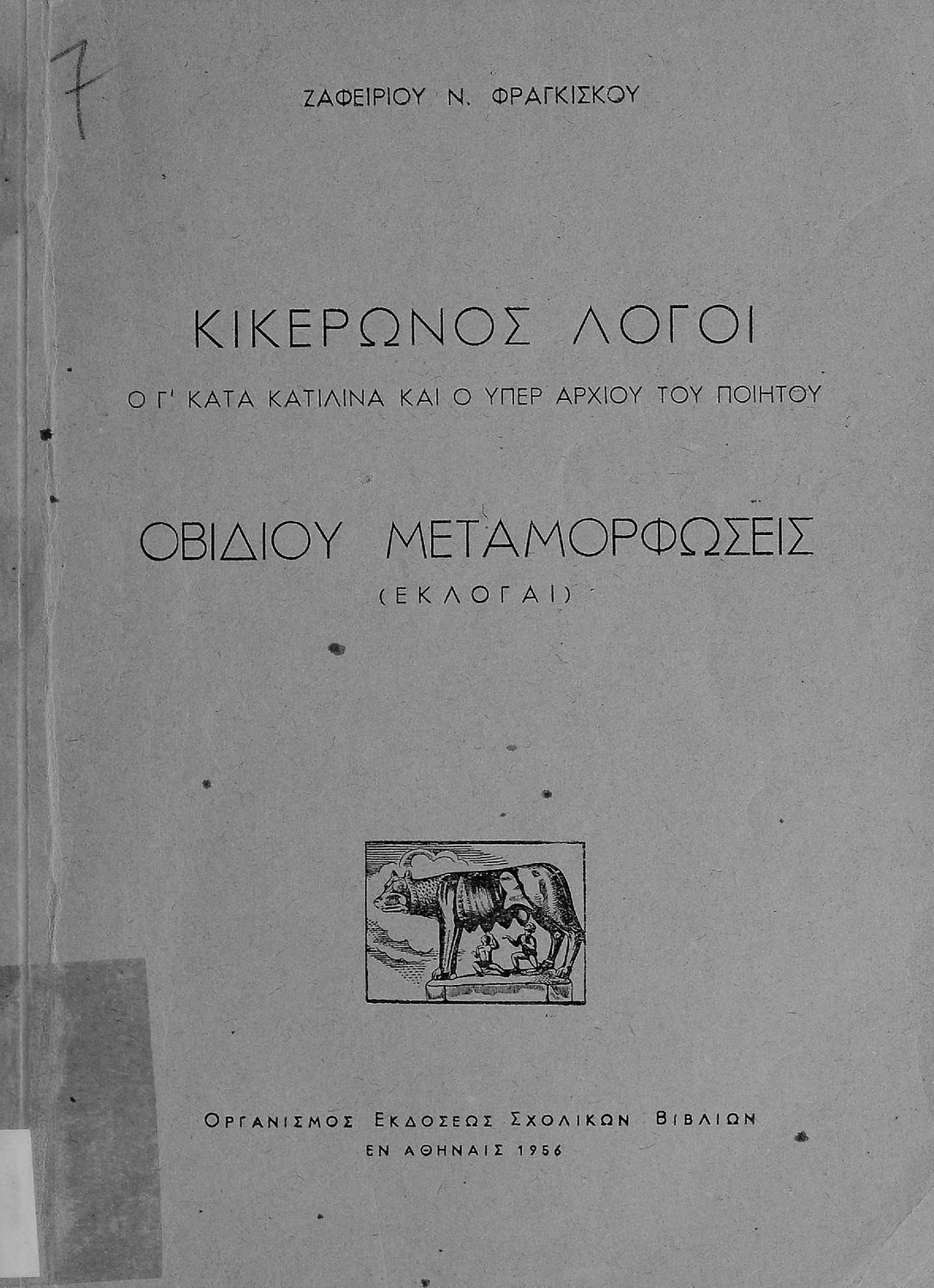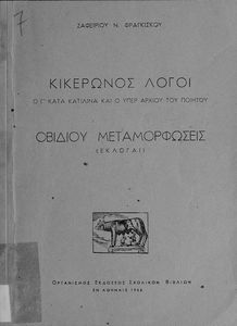 Σχολικό εγχειρίδιο Λατινικών για την Ε΄ Γυμνασίου παλαιού τύπου και την ΣΤ΄ Γυμνασίου νέου τύπου ου περιέχει βιογραφικό σημείωμα των Κικέρωνα και Οβίδιου, εισαγωγικά σχόλια, κείμενο και ερμηνευτικές σημειώσεις.