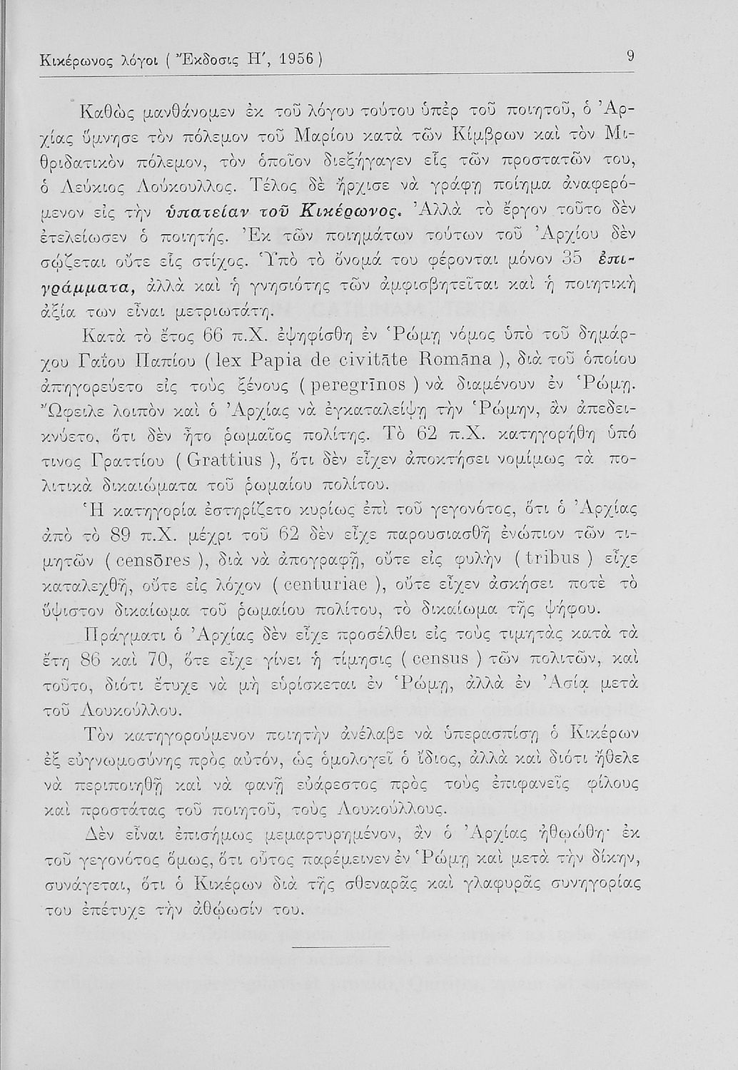 Σχολικό εγχειρίδιο Λατινικών Γ΄ Γυμνασίου που περιλαμβάνει το έργο του Κικέρωνα Υπέρ του Αρχία του ποιητή λόγος, εισαγωγή στη ζωή και την εργογραφία του Κικέρωνα, και ερμηνευτικά και γραμματολογικά σχόλια.