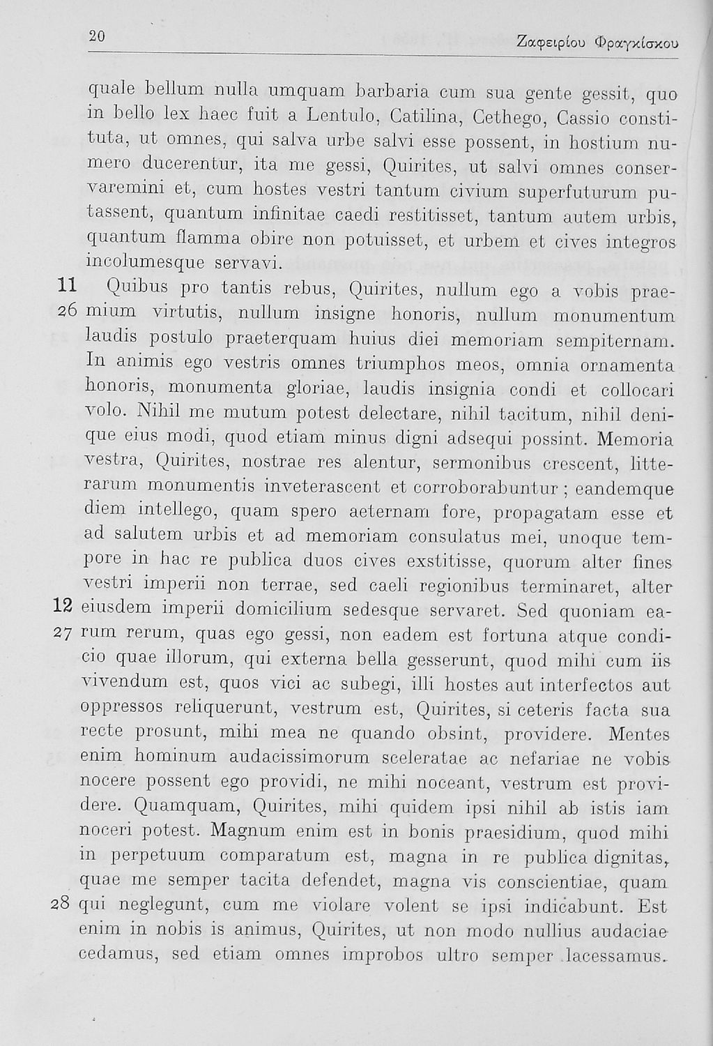 Μάρκος Τύλλιος Κικέρωνας (Marcus Tullius Cicero), Ζαφείριος Ν. Φραγκίσκος (εισαγωγή, σχόλια)