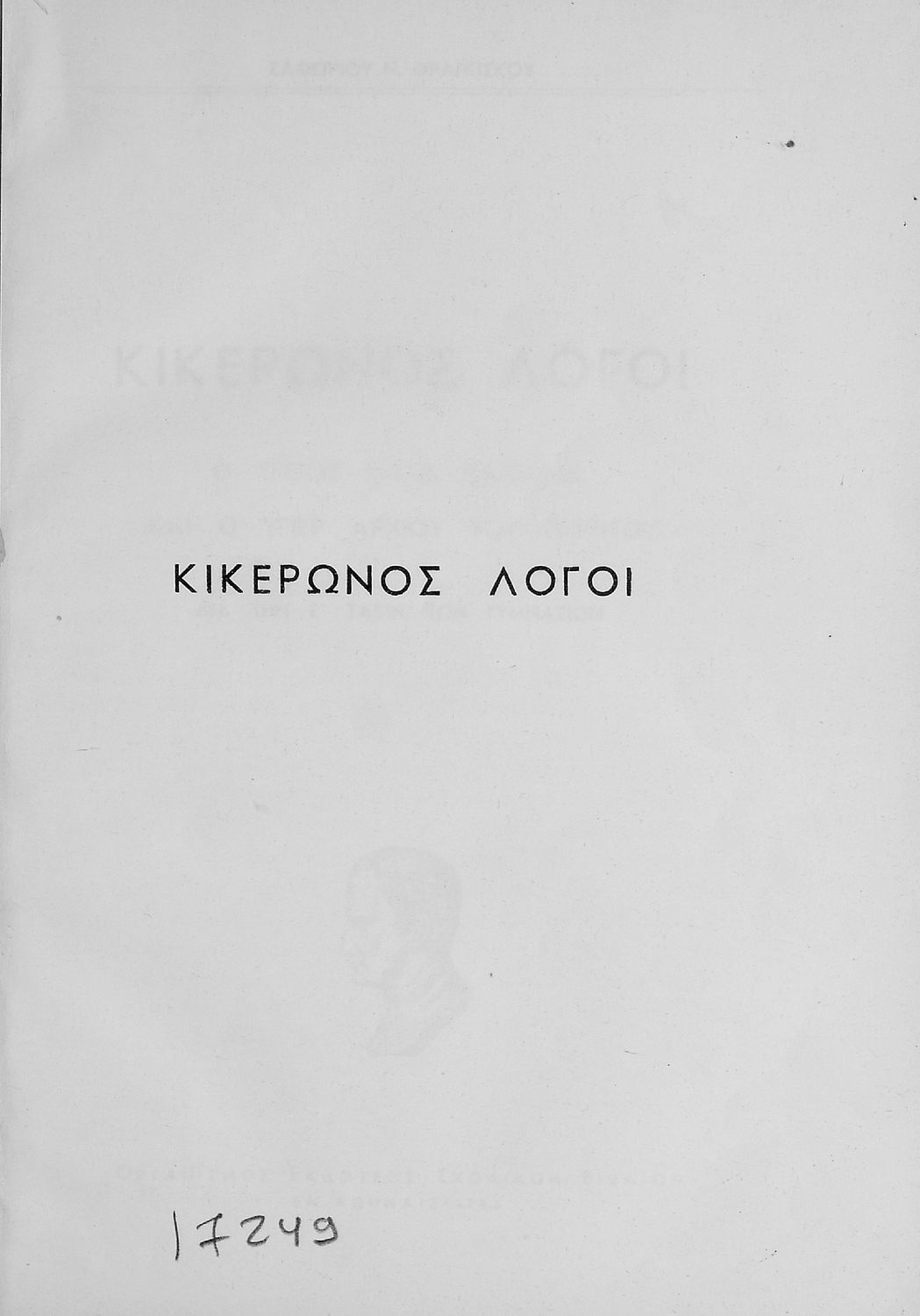 Τίτλος: Κικέρωνος Λόγοι Ο Γ΄ κατά Κατιλίνα και ο υπέρ Αρχίου του ποιητού / Οβίδιου Μεταμορφώσεις (Εκλογαί) δια την Ε΄ τάξιν των Γυμνασίων