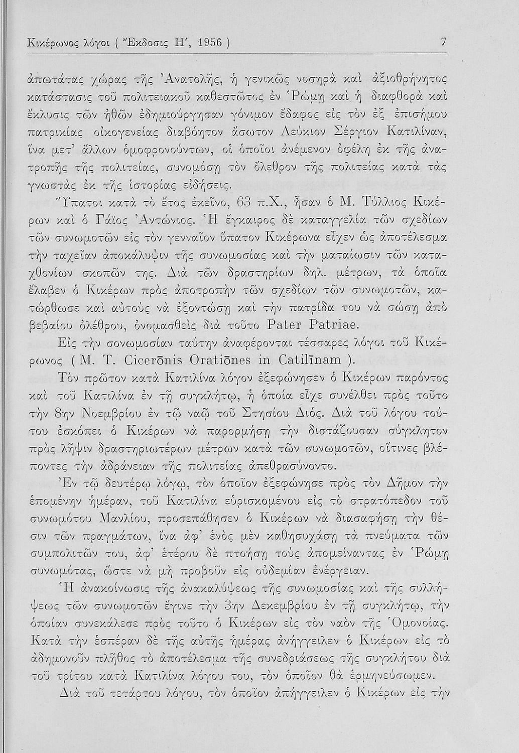 Κικέρωνος Λόγοι Ο Γ΄ κατά Κατιλίνα και ο υπέρ Αρχίου του ποιητού / Οβίδιου Μεταμορφώσεις (Εκλογαί) δια την Ε΄ τάξιν των Γυμνασίων