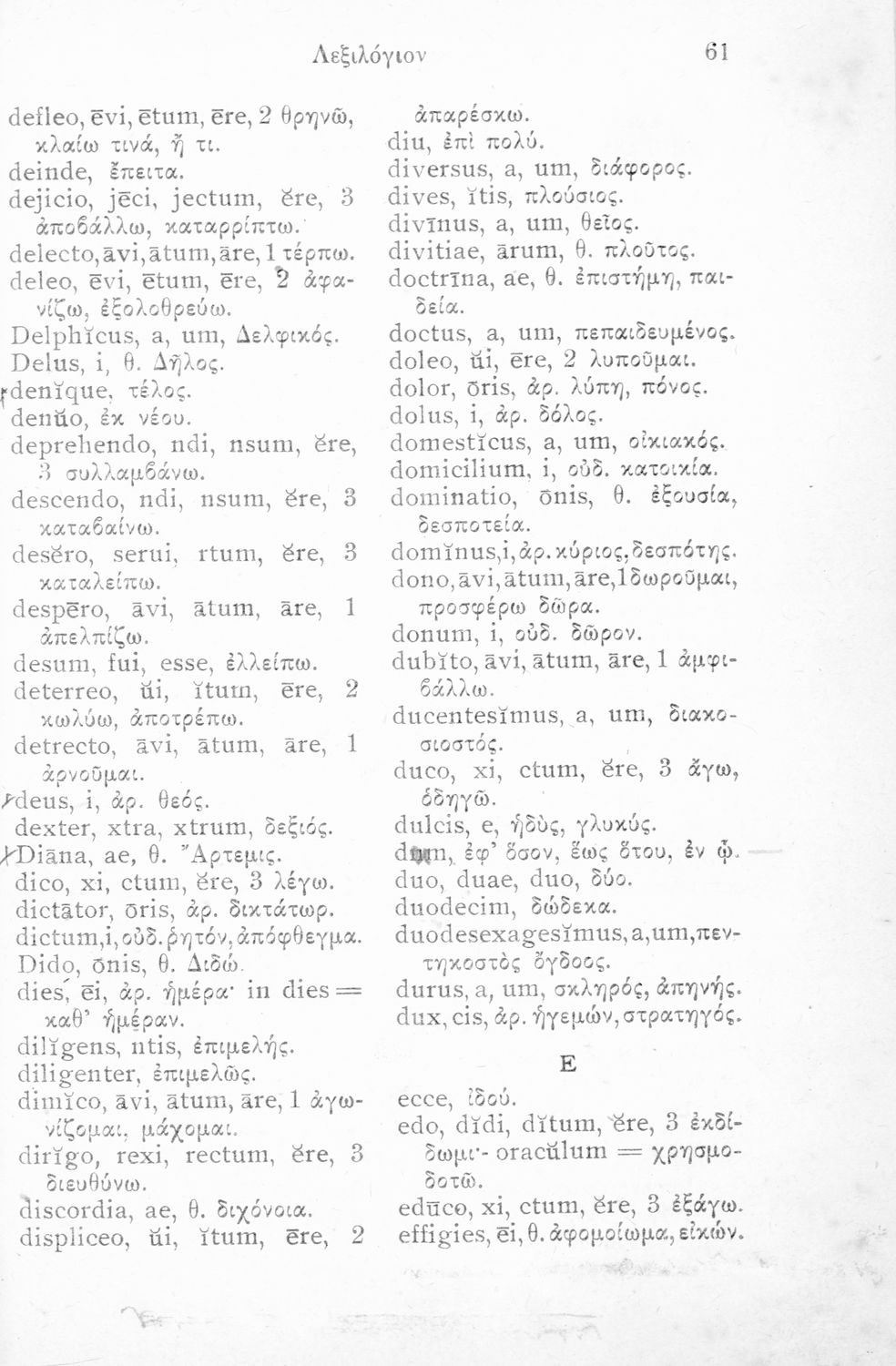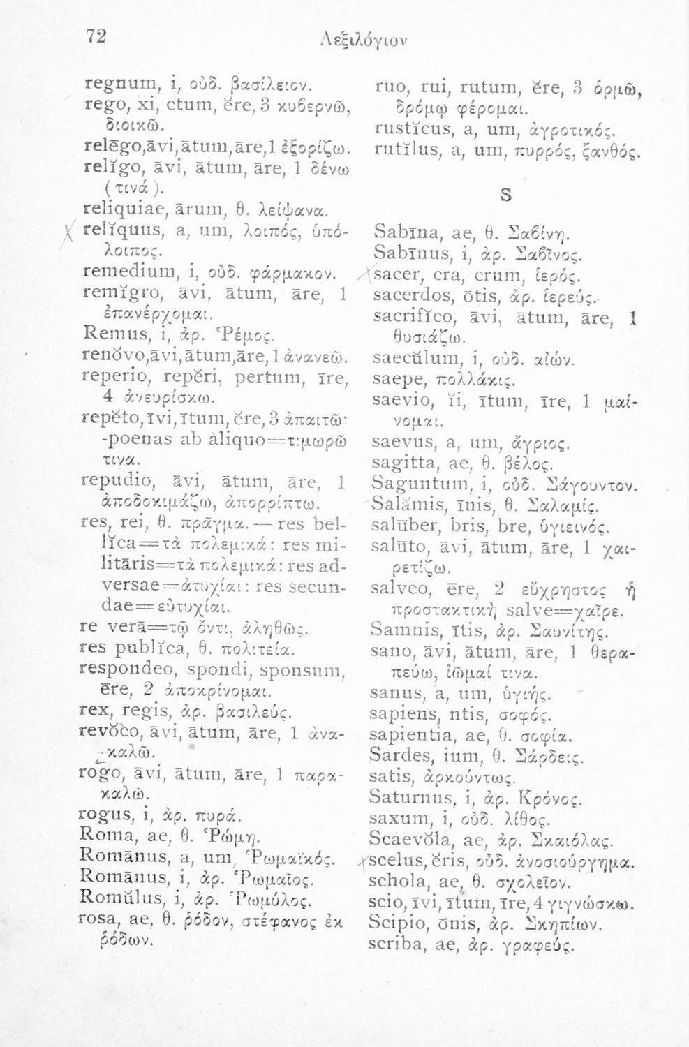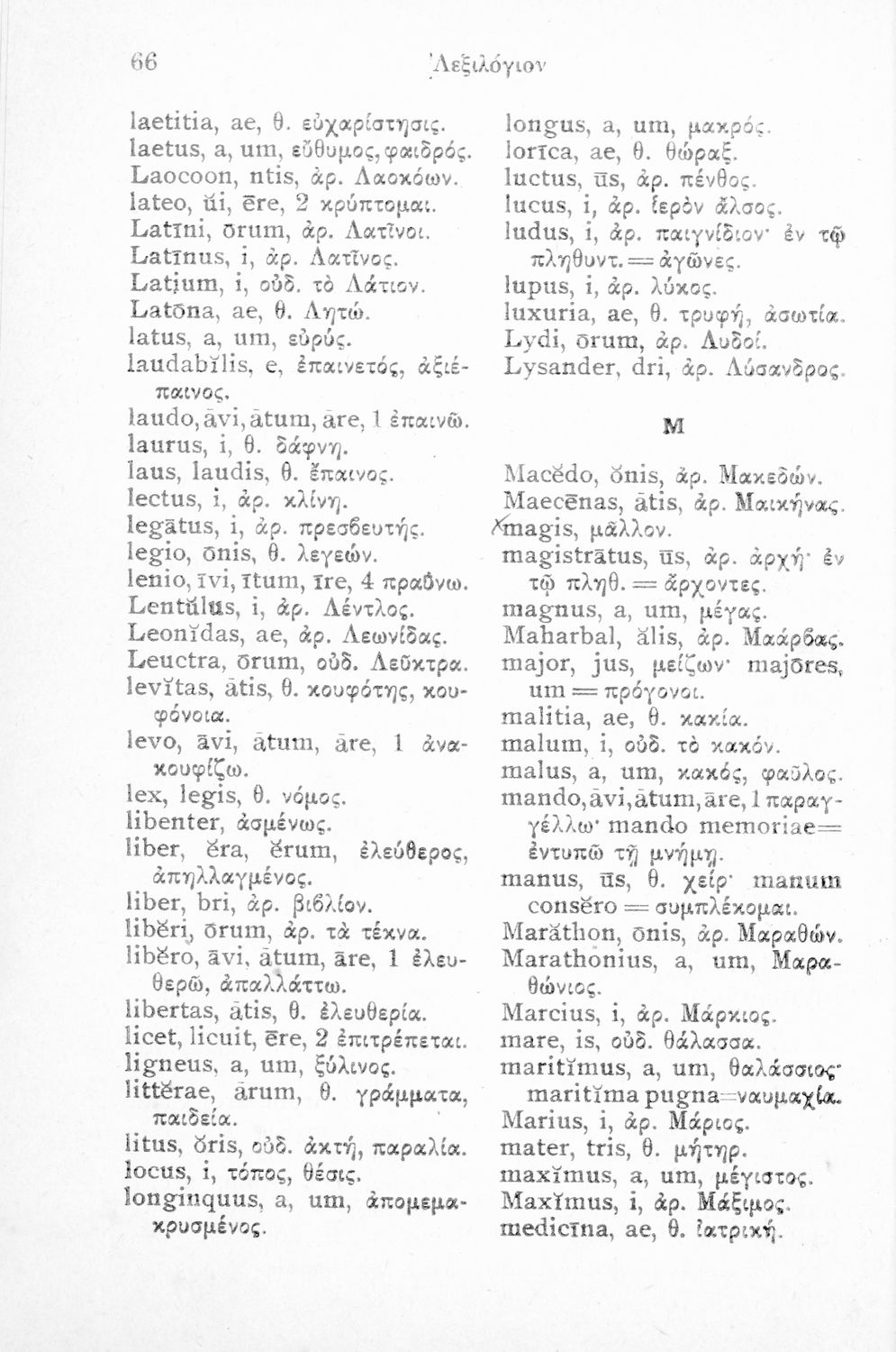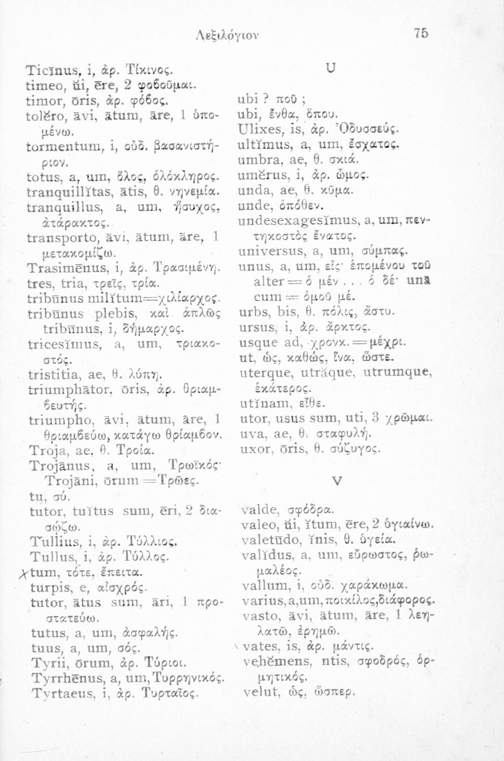 Σχολικό εγχειρίδιο Λατινικών για τη Γ΄ Γυμνασίου που περιέχει 54 κείμενα/περικοπές στα λατινικά, ερμηνευτικά υπομνήματα, λεξιλόγιο και κατάλογο με τα συντακτικά φαινόμενα (αφαιρετική, προθέσεις, σύνδεσμοι) που