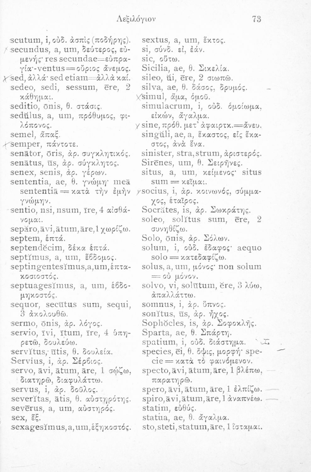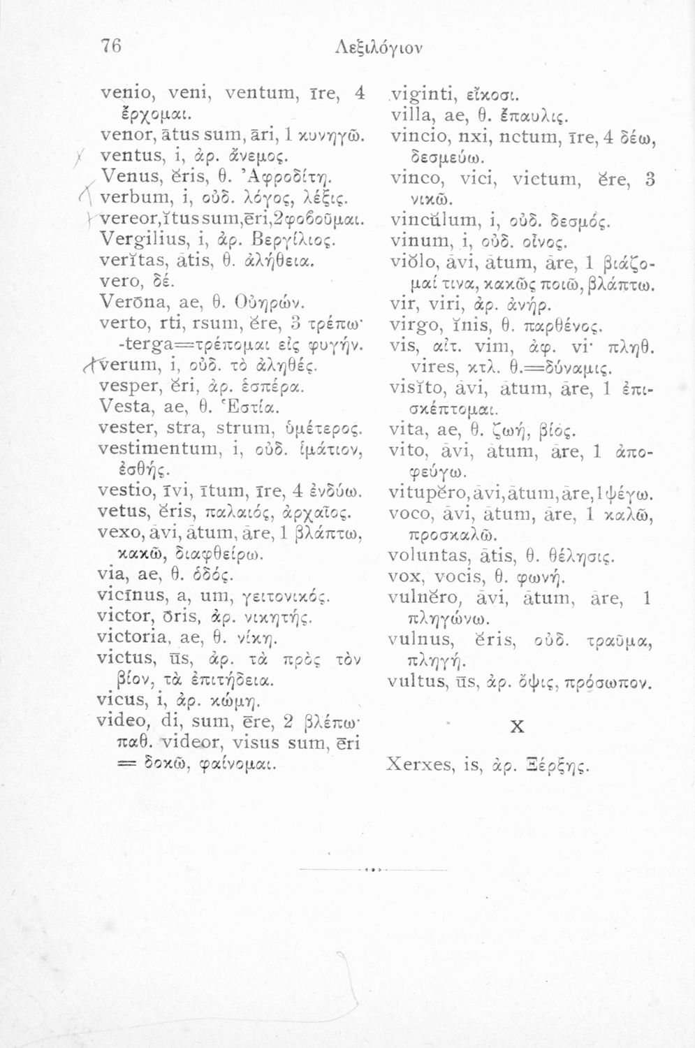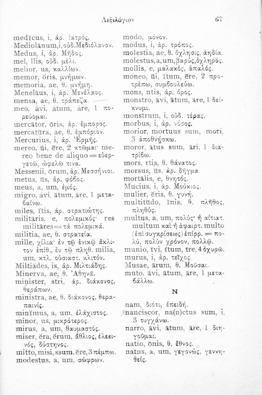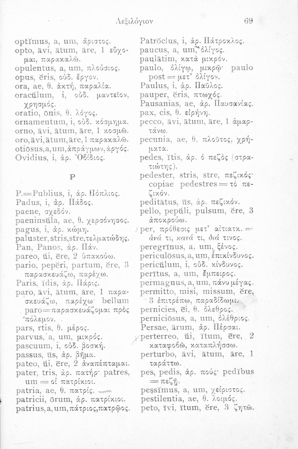 Σχολικό εγχειρίδιο Λατινικών για τη Γ΄ Γυμνασίου που περιέχει 54 κείμενα/περικοπές στα λατινικά, ερμηνευτικά υπομνήματα, λεξιλόγιο και κατάλογο με τα συντακτικά φαινόμενα (αφαιρετική, προθέσεις, σύνδεσμοι) που