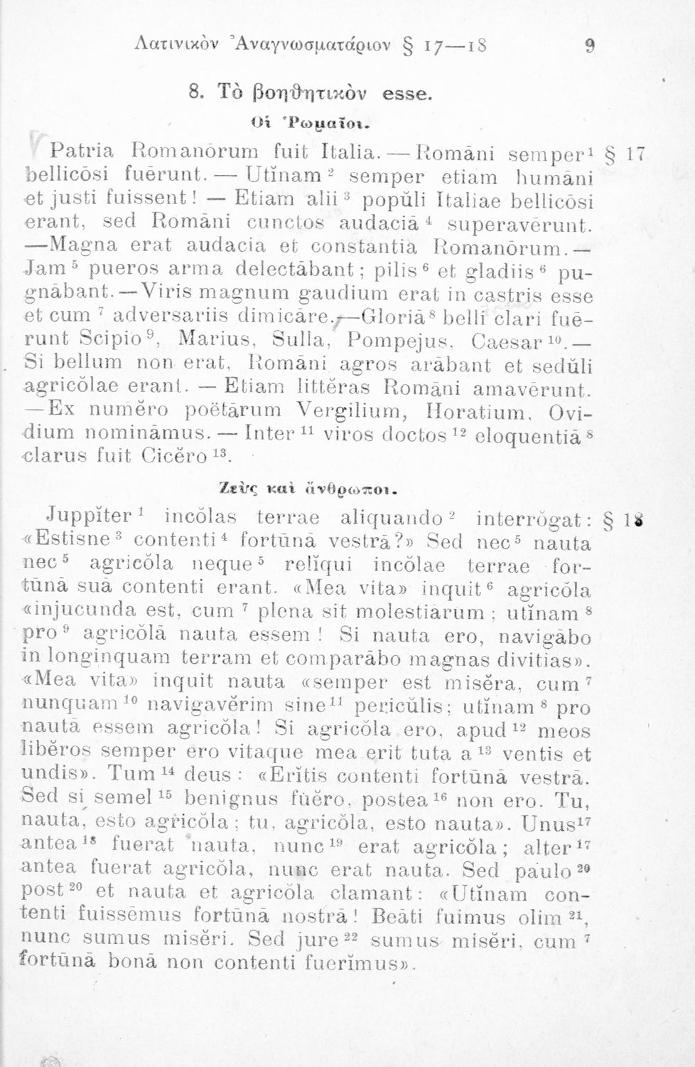 Μαθητικό βοήθημα Λατινικών για την Η΄ τάξη των Οκταταξίων Γυμνασίων που περιέχει κείμενο, μετάφραση, γραμματικά, σημασιολογικά και συντακτικά σχόλια, νόημα και περίληψη.