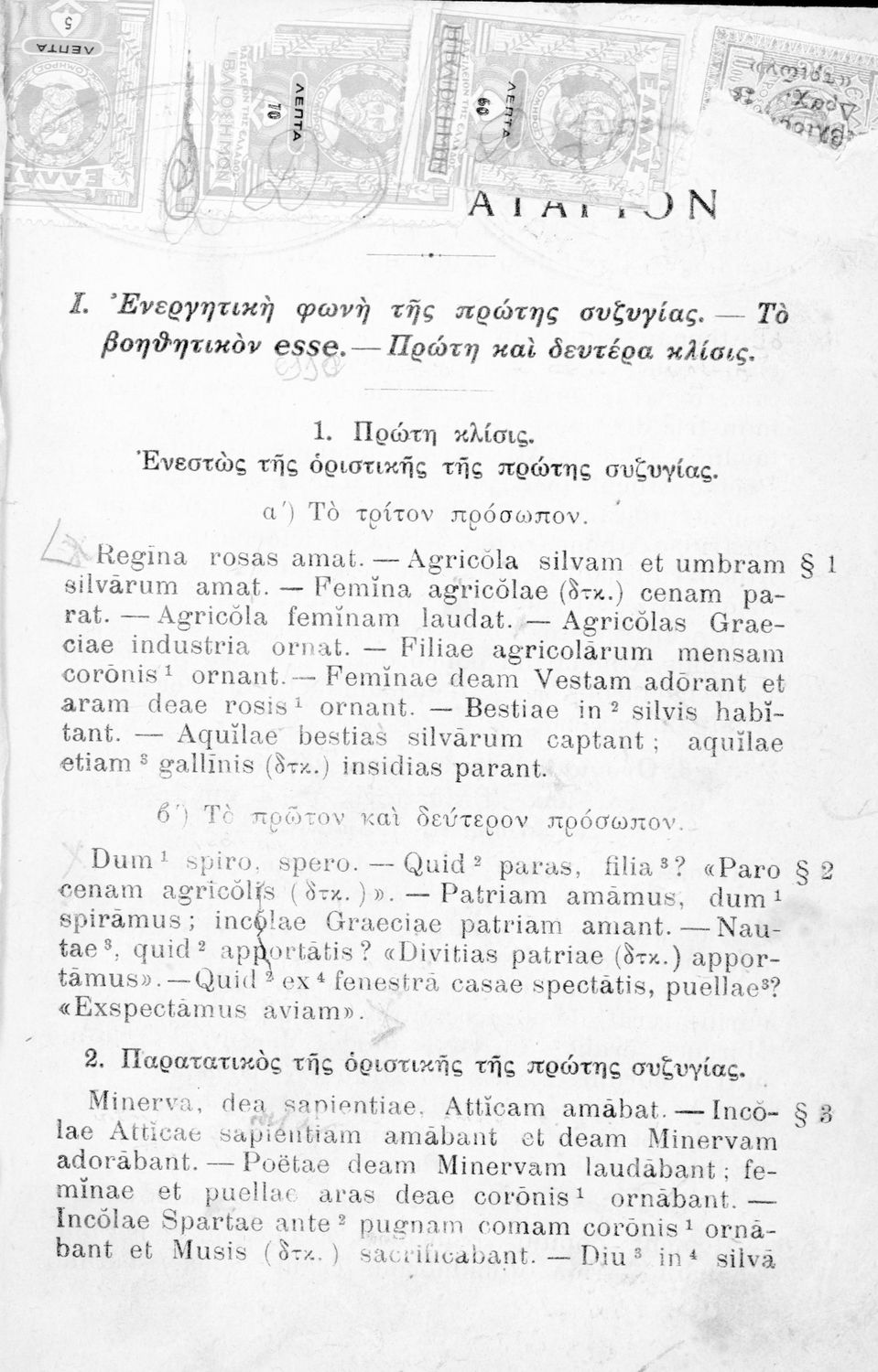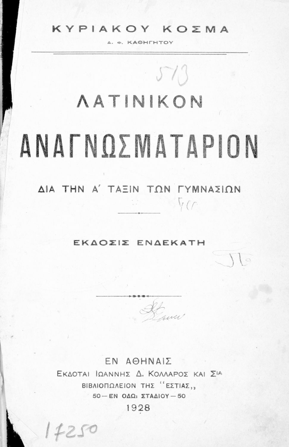 Τίτλος: Λατινικόν αναγνωσματάριον δια την Α΄ τάξιν των Γυμνασίων
