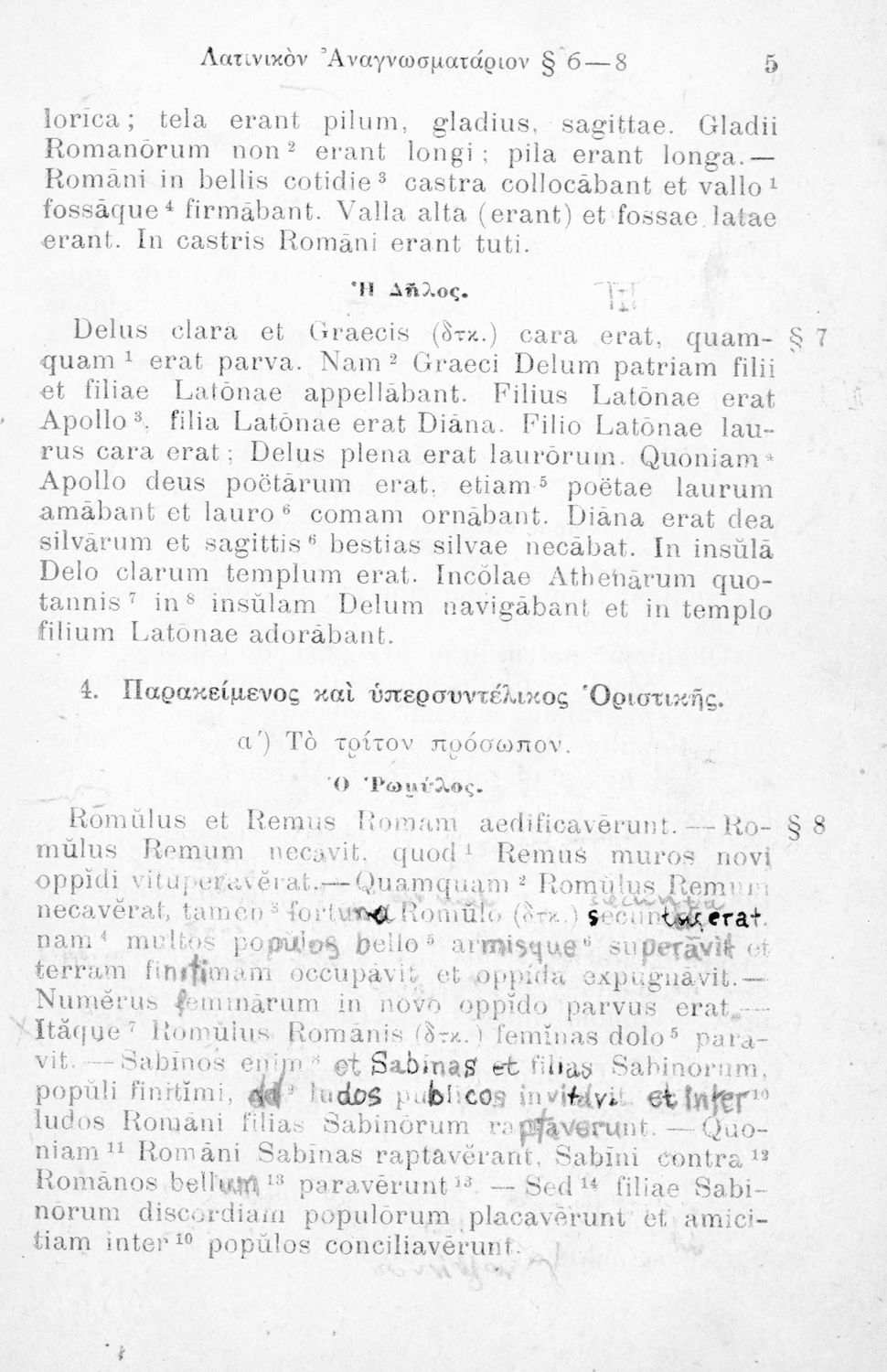 Λατινικόν αναγνωσματάριον δια την Α΄ τάξιν των Γυμνασίων