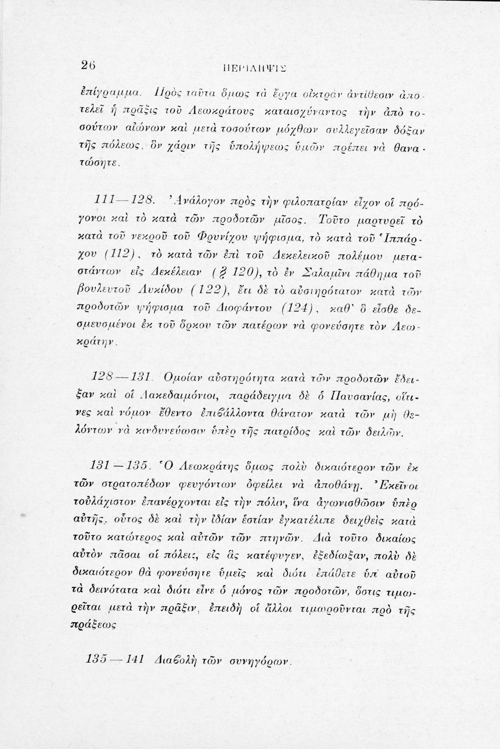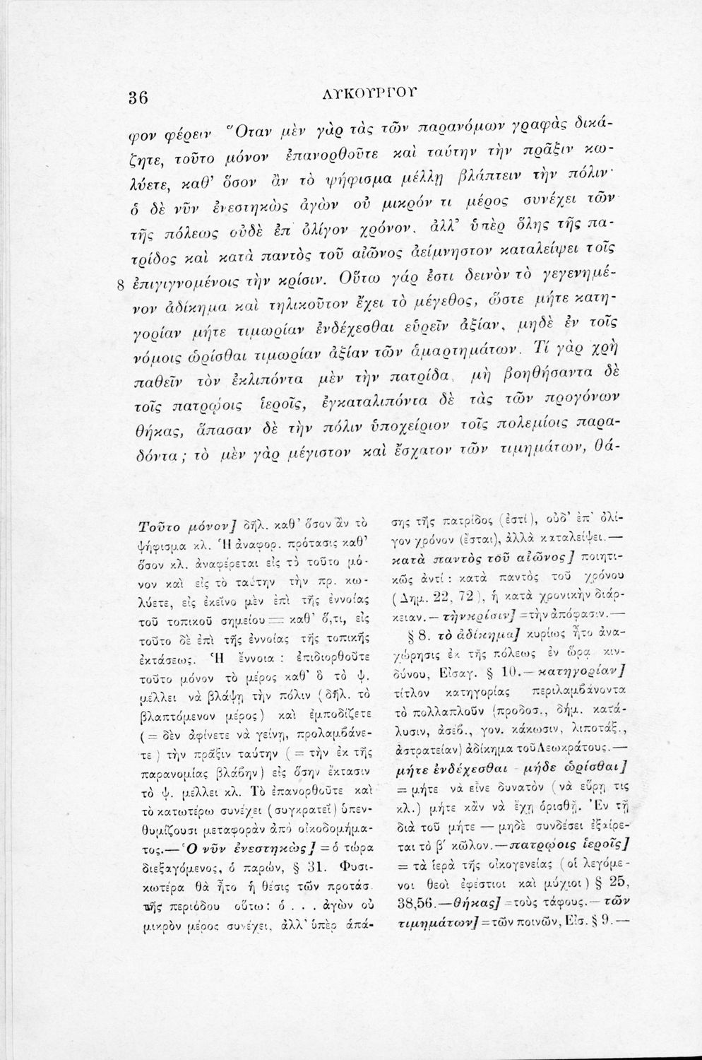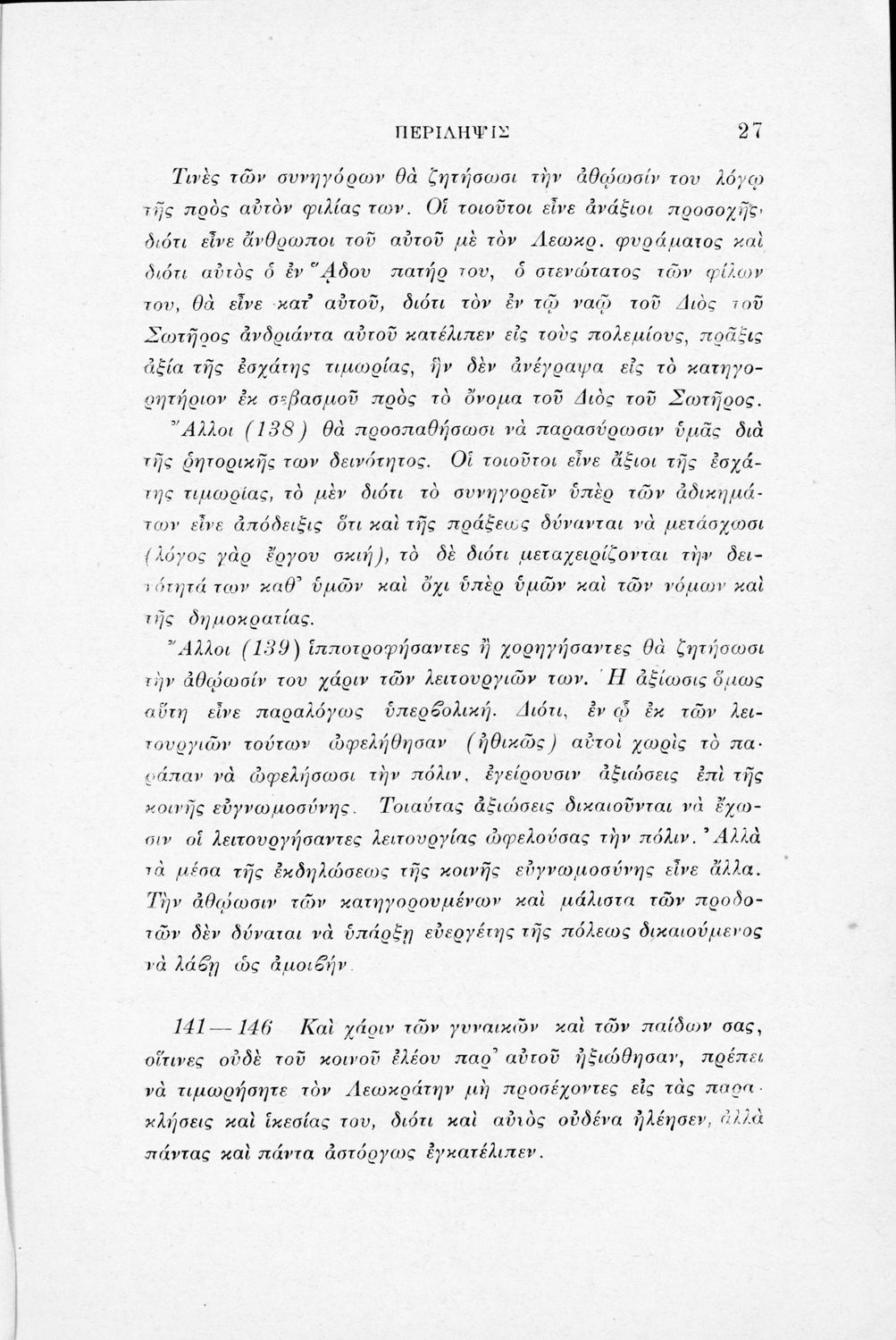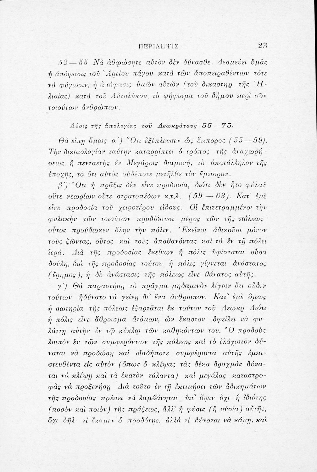 Μαθητικό βοήθημα Αρχαίων Ελληνικών για τα Ελληνικά Σχολεία, τα Παρθεναγωγεία και τα Γυμνάσια που περιλαμβάνει το έργο του Λυκούργου Λόγος κατά Λεωκράτους και ερμηνευτικές σημειώσεις.