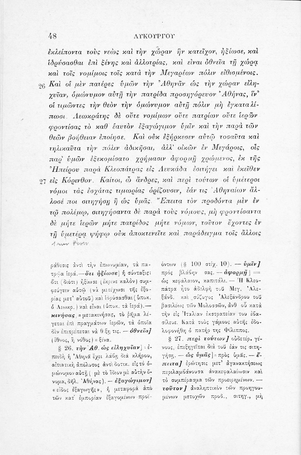 Μαθητικό βοήθημα Αρχαίων Ελληνικών για τα Ελληνικά Σχολεία, τα Παρθεναγωγεία και τα Γυμνάσια που περιλαμβάνει το έργο του Λυκούργου Λόγος κατά Λεωκράτους και ερμηνευτικές σημειώσεις.