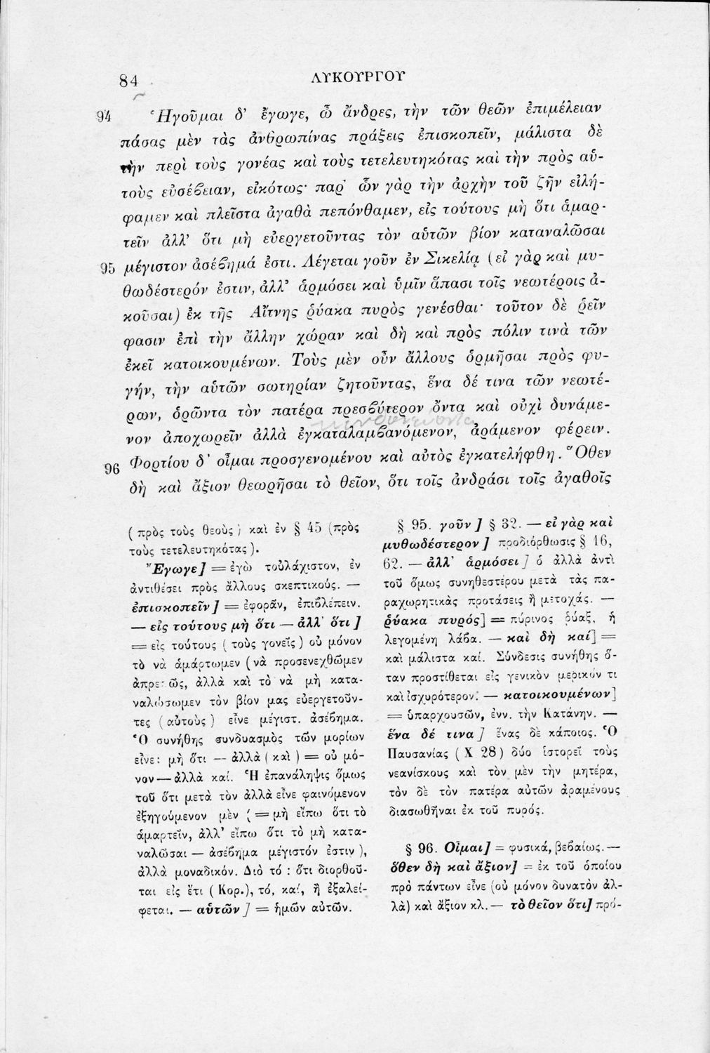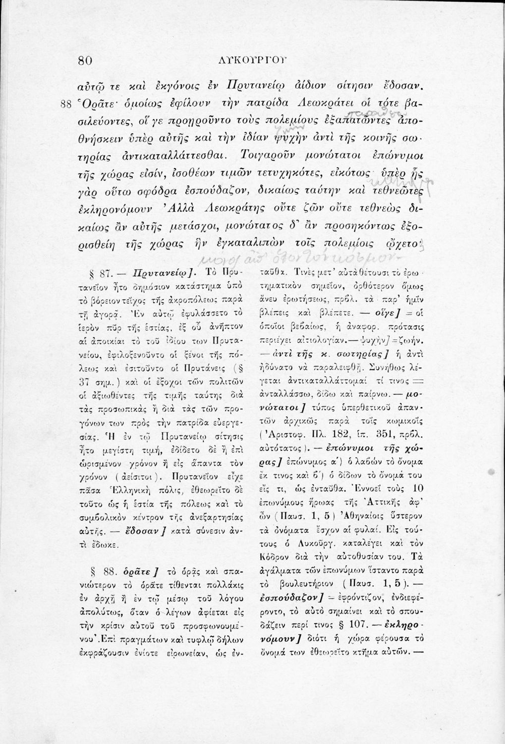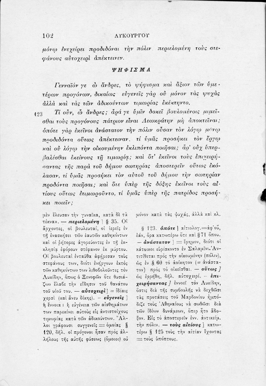 Μαθητικό βοήθημα Αρχαίων Ελληνικών για τα Ελληνικά Σχολεία, τα Παρθεναγωγεία και τα Γυμνάσια που περιλαμβάνει το έργο του Λυκούργου Λόγος κατά Λεωκράτους και ερμηνευτικές σημειώσεις.