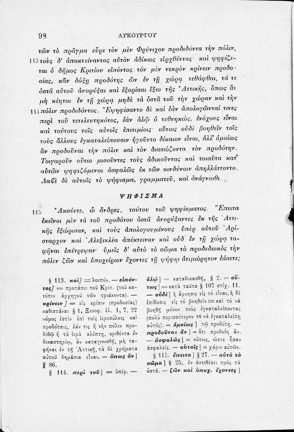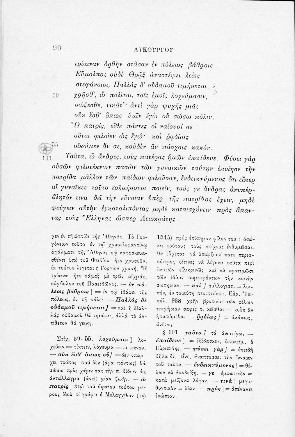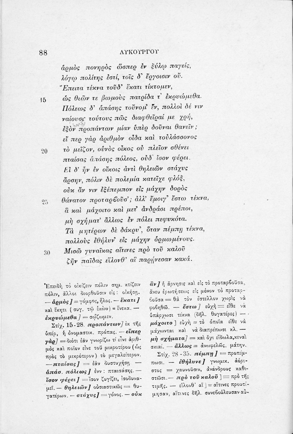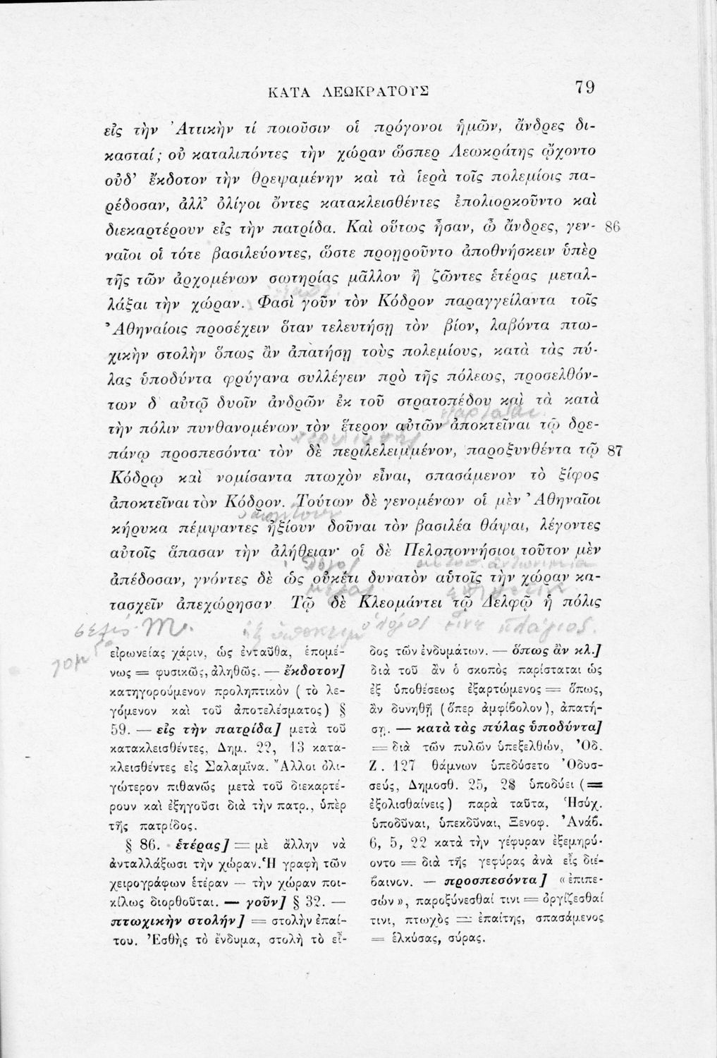 Μαθητικό βοήθημα Αρχαίων Ελληνικών για τα Ελληνικά Σχολεία, τα Παρθεναγωγεία και τα Γυμνάσια που περιλαμβάνει το έργο του Λυκούργου Λόγος κατά Λεωκράτους και ερμηνευτικές σημειώσεις.