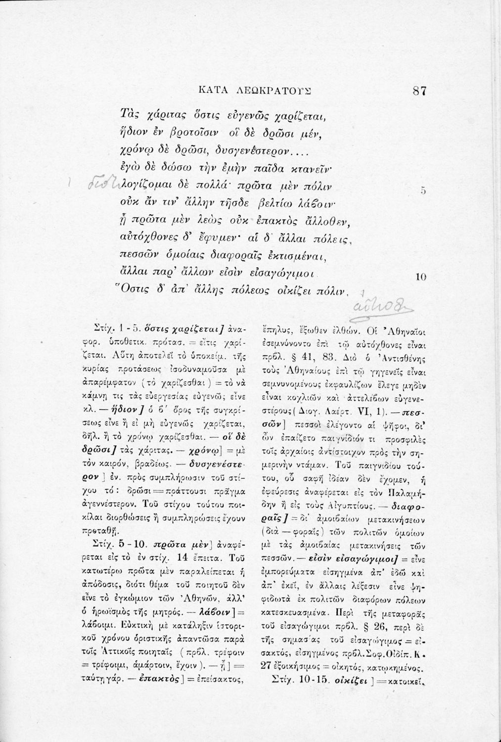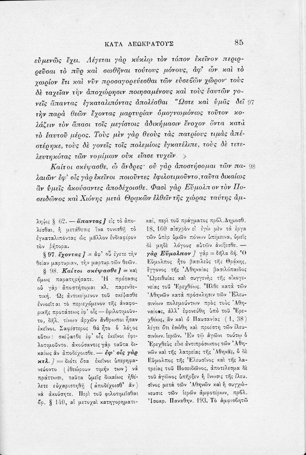 Δημοσθένης, Λυκούργος, Ισοκράτης, Κυριάκος Κοσμάς, Νικ. Φραγκίσκος, Μιχ. Περίδης, Γ. Παπαοικονόμου (σχόλια)