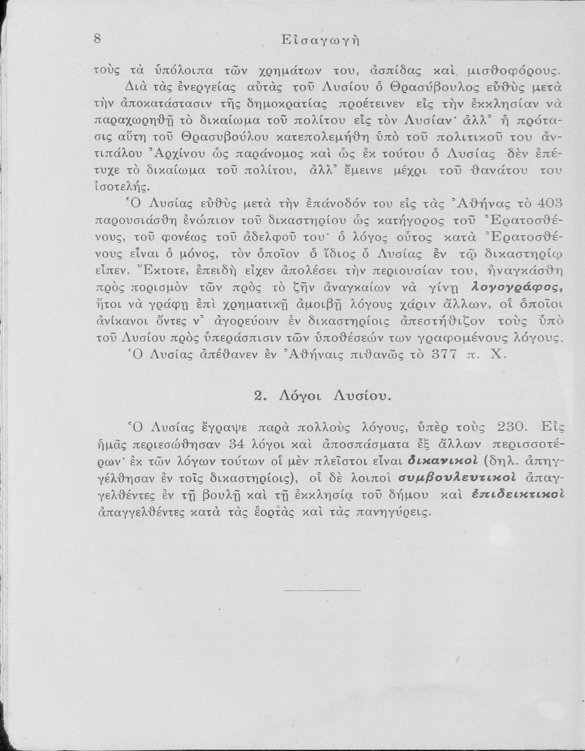 Σχολικό εγχειρίδιο της Γ΄ Γυμνασίου για τα Αρχαία Ελληνικά. Περιλαμβάνει Λόγους του Λυσία, Υπέρ Μαντιθέου, Κατά Εργοκλέους, Περί του σηκού απολογία, Υπέρ του αδυνάτου, Κατά των σιτοπωλών και ερμηνευτικές, ...