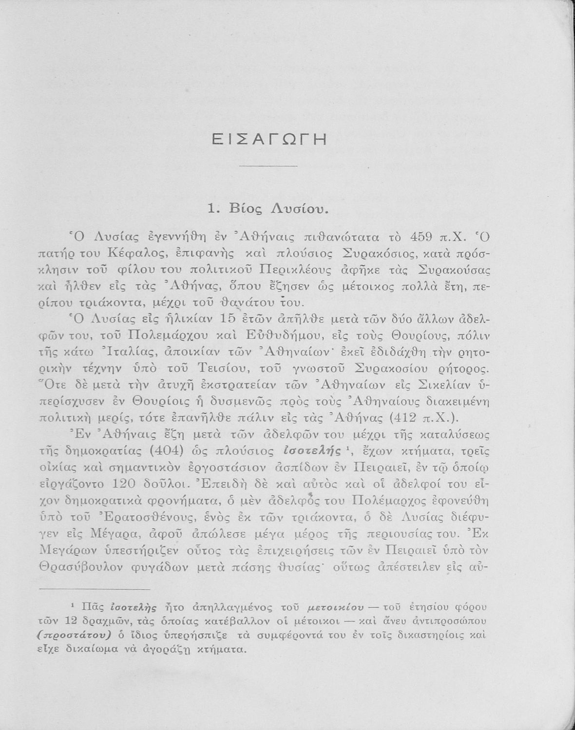 Σχολικό εγχειρίδιο Αρχαίων Ελληνικών που περιλαμβάνει τους Λόγους του Λυσία Περί του σηκού απολογία, Υπέρ του αδυνάτου, Κατά των σιτοπωλών και του Ισοκράτη Προς Δημόνικον, Προς Νικοκλέα και Ευαγόρας, εισαγωγή ...