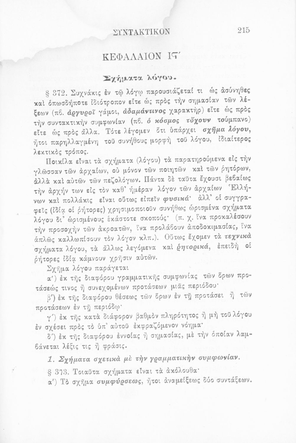 Σχολικό εγχειρίδιο Αρχαίων Ελληνικών Γυμνασίου που περιέχει τους κανόνες γραμματικής και είναι χωρισμένο σε φθογγολογικό, τυπολογικό και ετυμολογικό μέρος. Περιέχει και κατάλογο ανωμάλων ρημάτων.