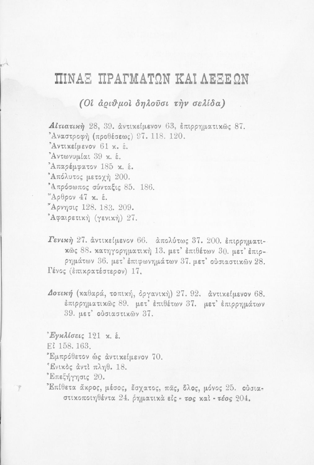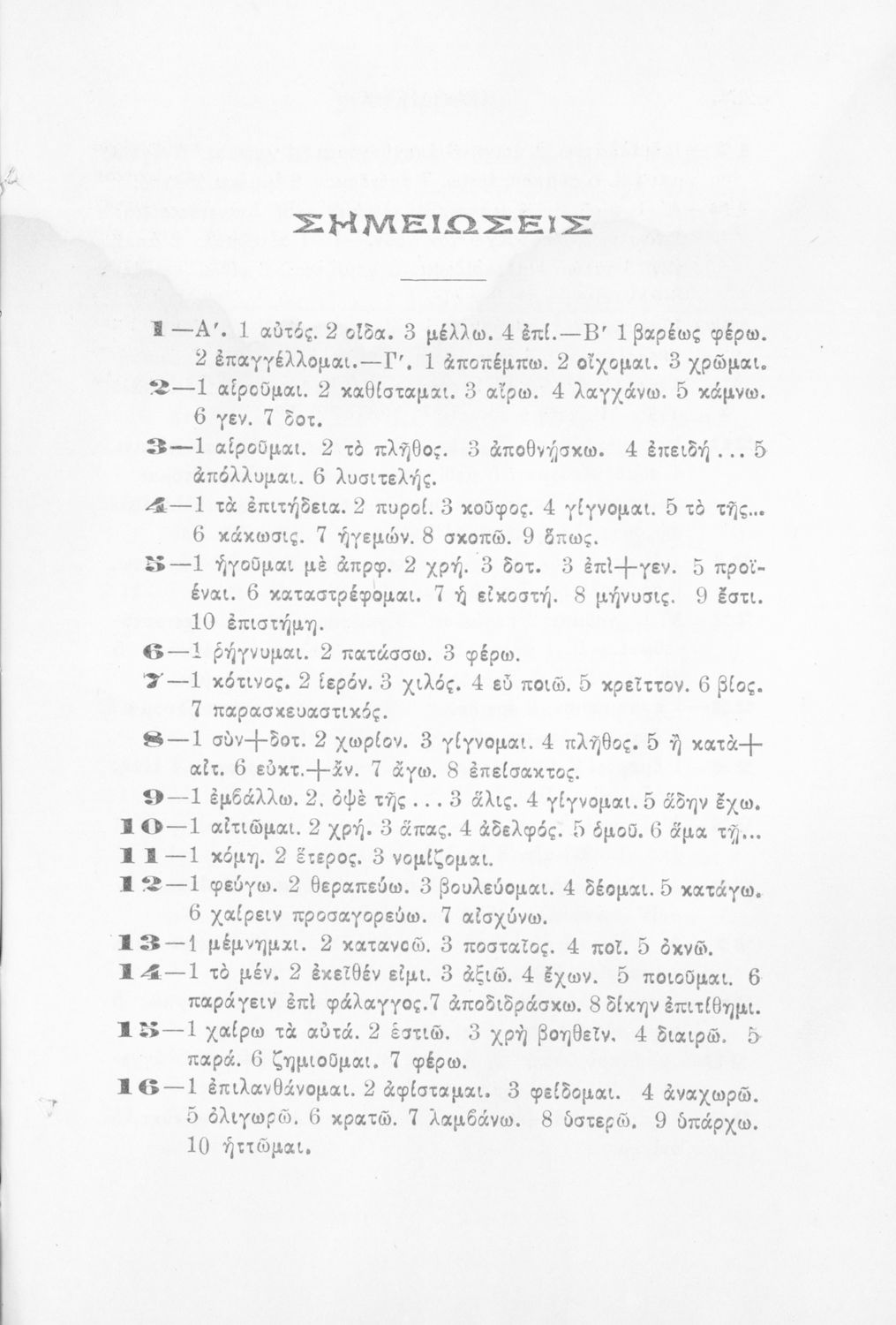 Σχολικό εγχειρίδιο Αρχαίων Ελληνικών Γυμνασίου που περιέχει τους κανόνες γραμματικής και είναι χωρισμένο σε φθογγολογικό, τυπολογικό και ετυμολογικό μέρος. Περιέχει και κατάλογο ανωμάλων ρημάτων.