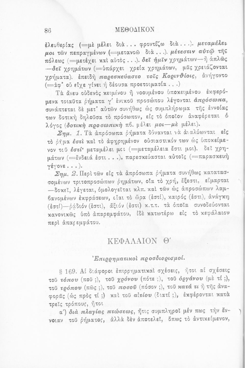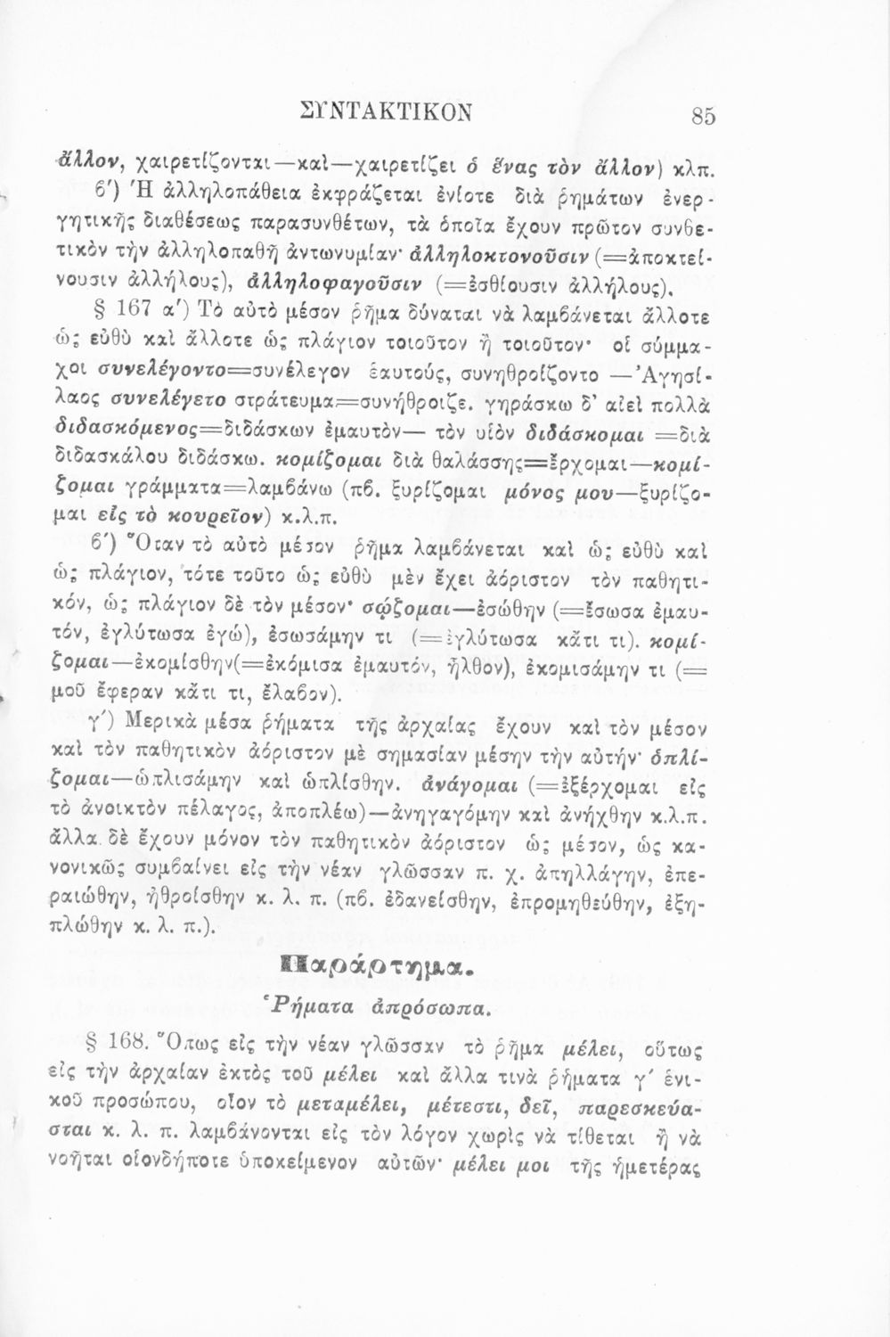 Σχολικό εγχειρίδιο Αρχαίων Ελληνικών Γυμνασίου που περιέχει τους κανόνες γραμματικής και είναι χωρισμένο σε φθογγολογικό, τυπολογικό και ετυμολογικό μέρος. Περιέχει και κατάλογο ανωμάλων ρημάτων.