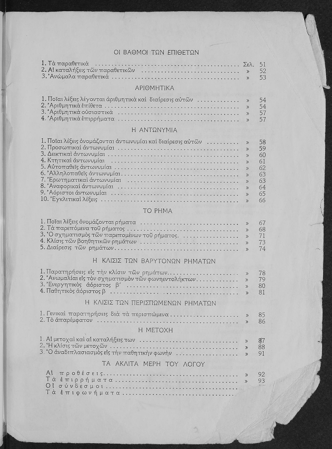 Παρουσίαση περιεχομένου: Σχολικό εγχειρίδιο γραμματικής για τους μαθητές της Ε΄ και ΣΤ΄ τάξης του Δημοτικού. Περιέχει τη διδασκαλία της γραμματικής της καθαρεύουσας με κανόνες και παραδείγματα.