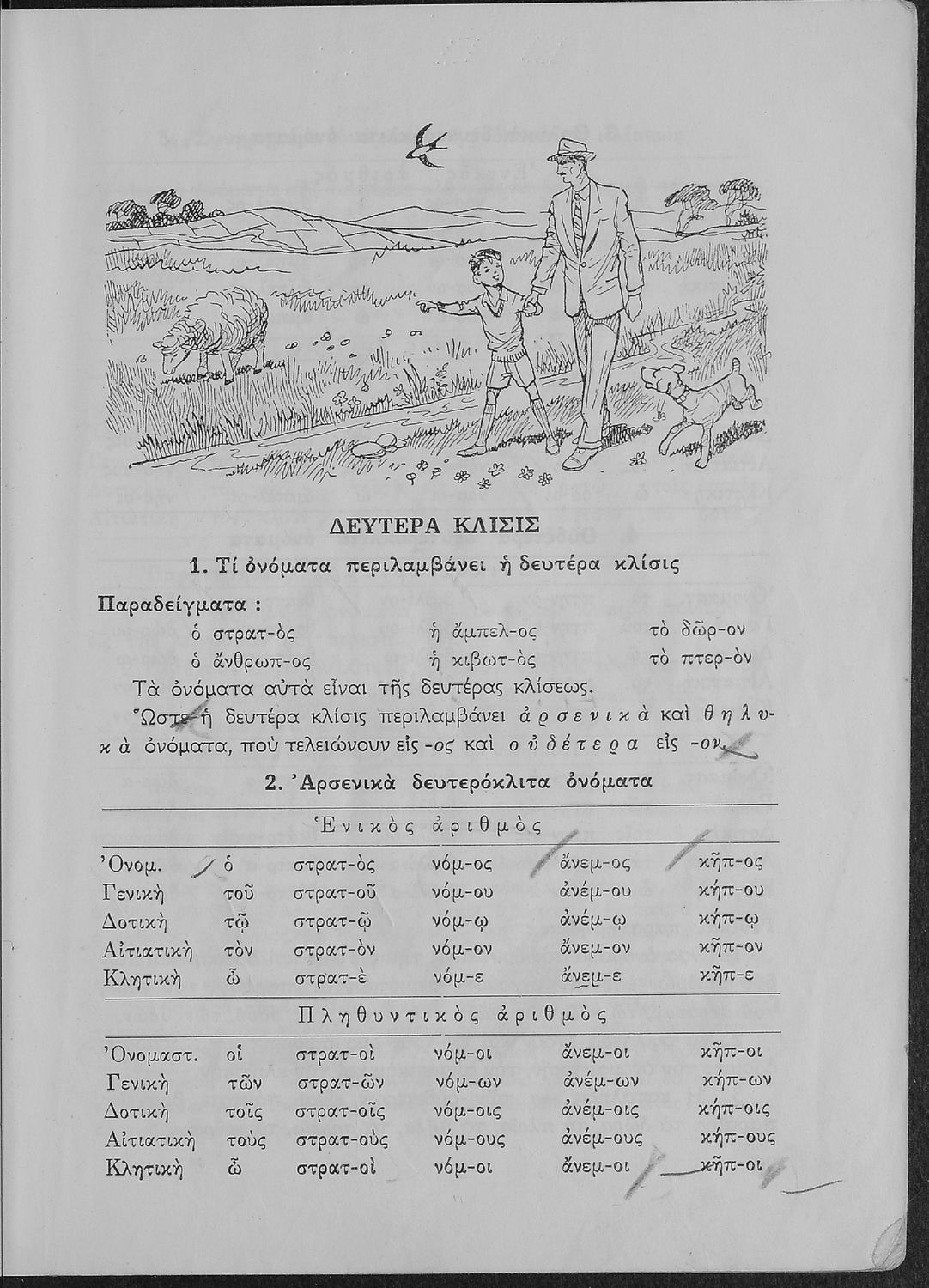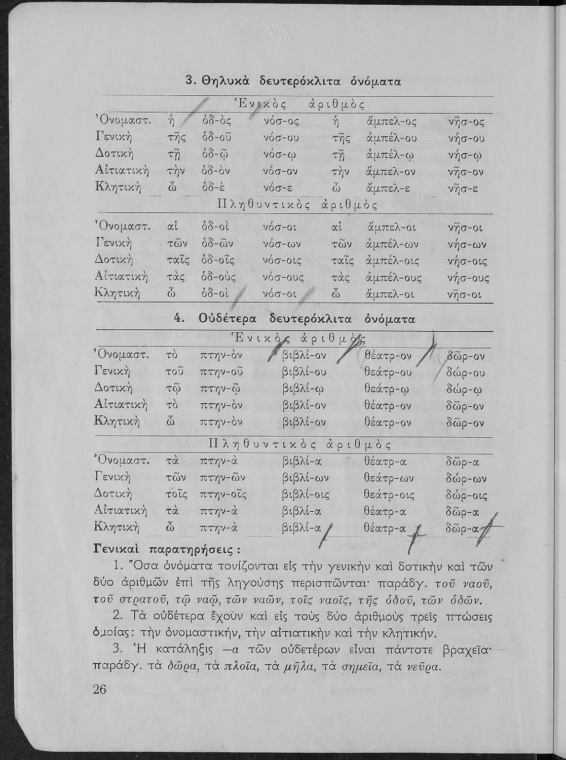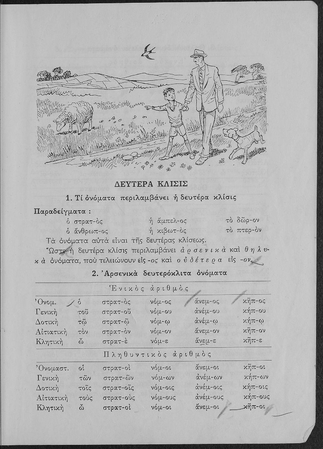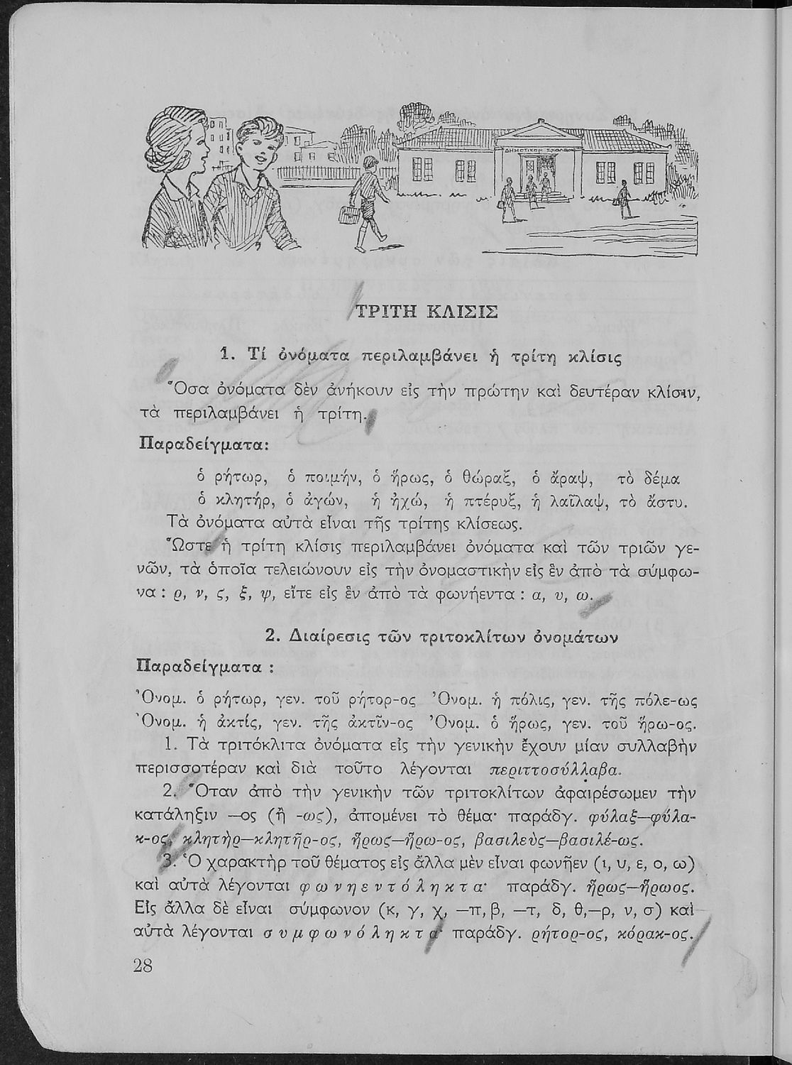 Σχολικό εγχειρίδιο γραμματικής για τους μαθητές της Ε΄ και ΣΤ΄ τάξης του Δημοτικού. Περιέχει τη διδασκαλία της γραμματικής της καθαρεύουσας με κανόνες και παραδείγματα.