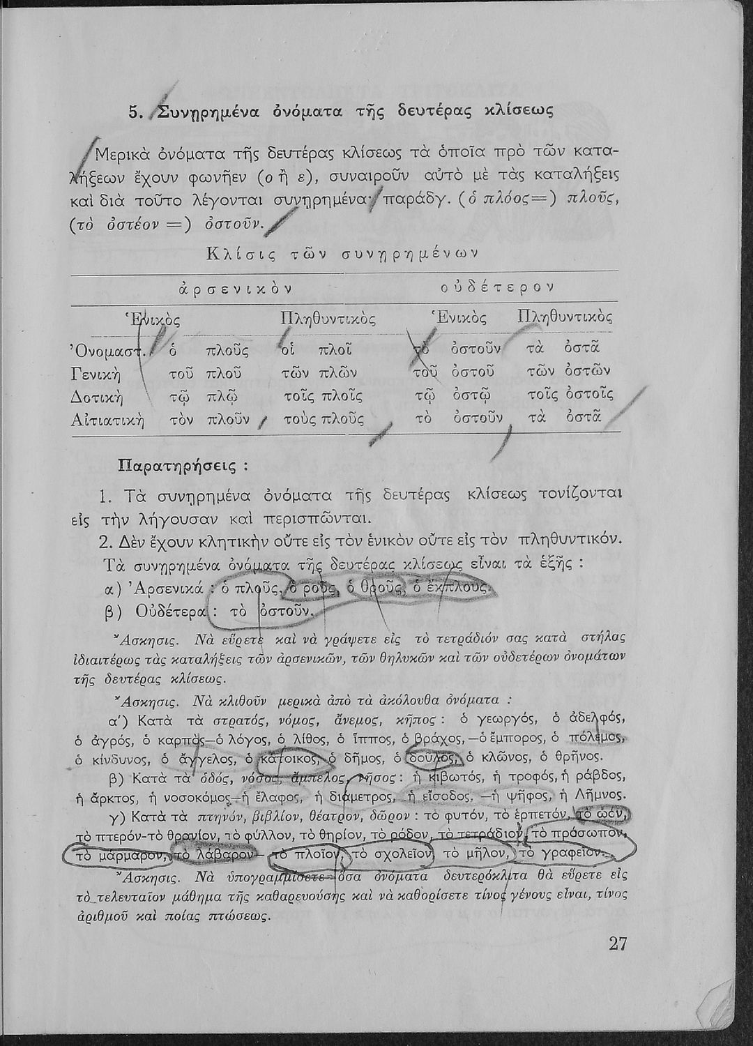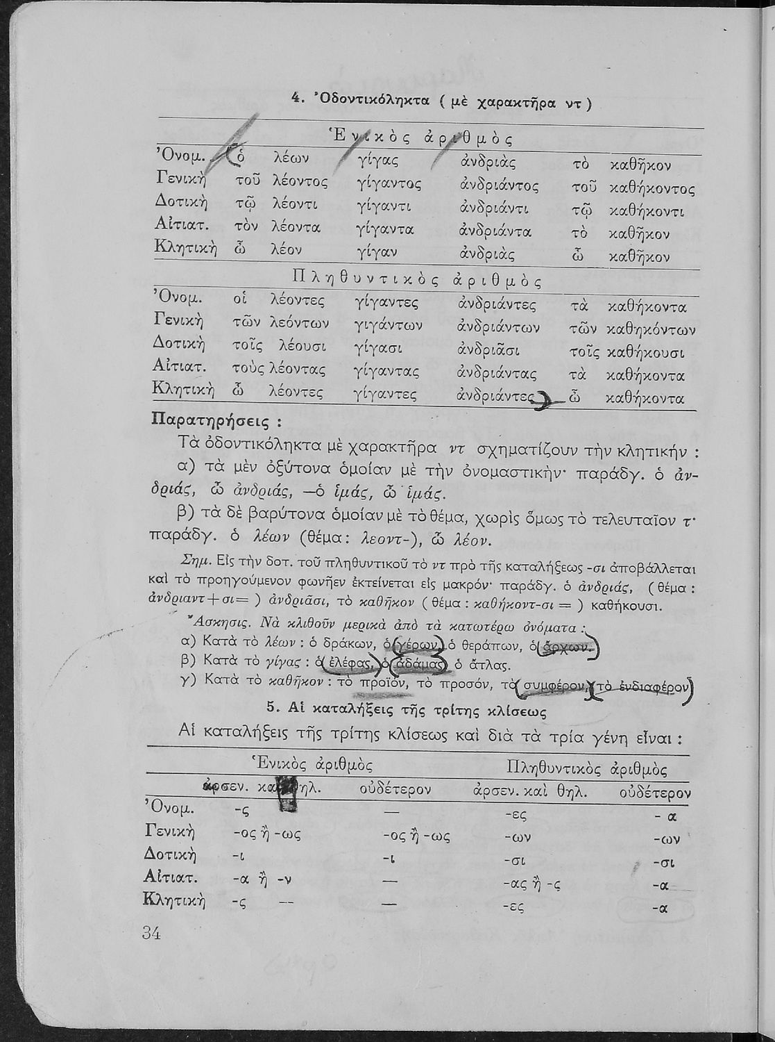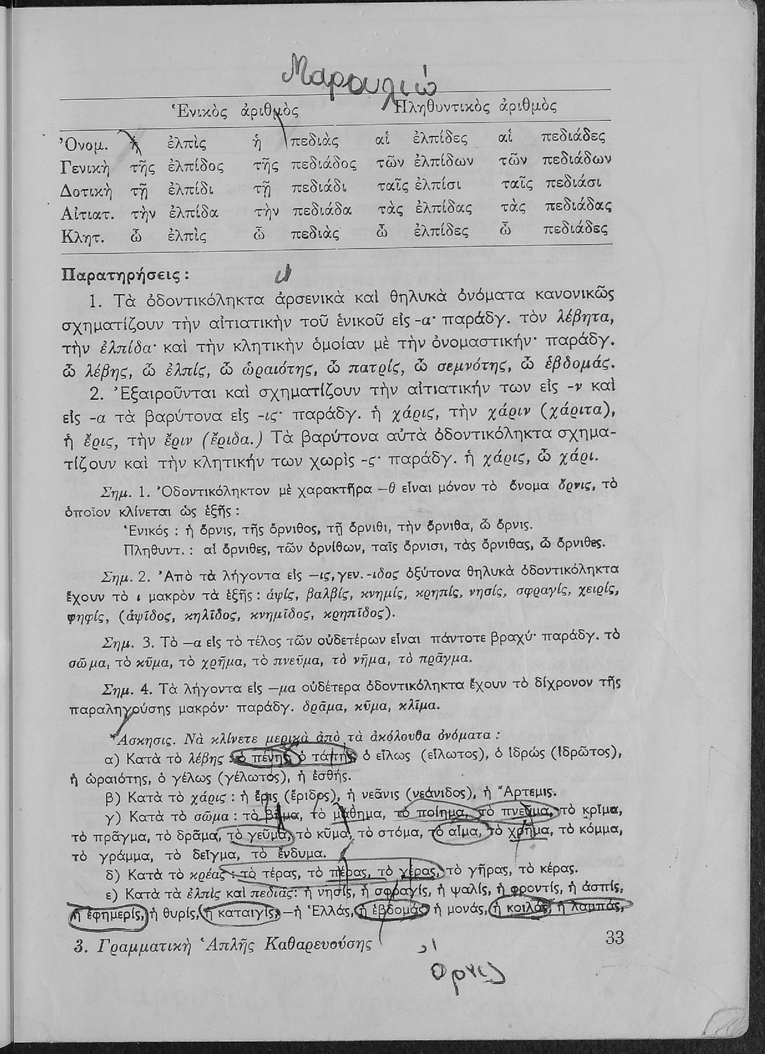Σχολικό εγχειρίδιο γραμματικής για τους μαθητές της Ε΄ και ΣΤ΄ τάξης του Δημοτικού. Περιέχει τη διδασκαλία της γραμματικής της καθαρεύουσας με κανόνες και παραδείγματα.