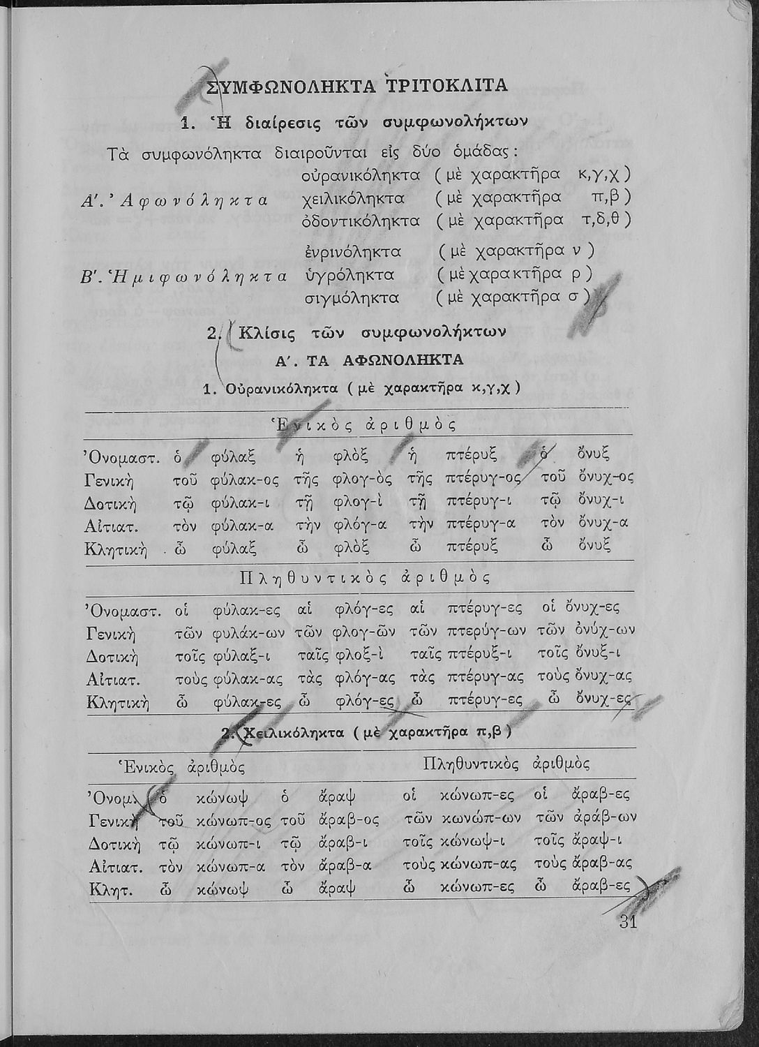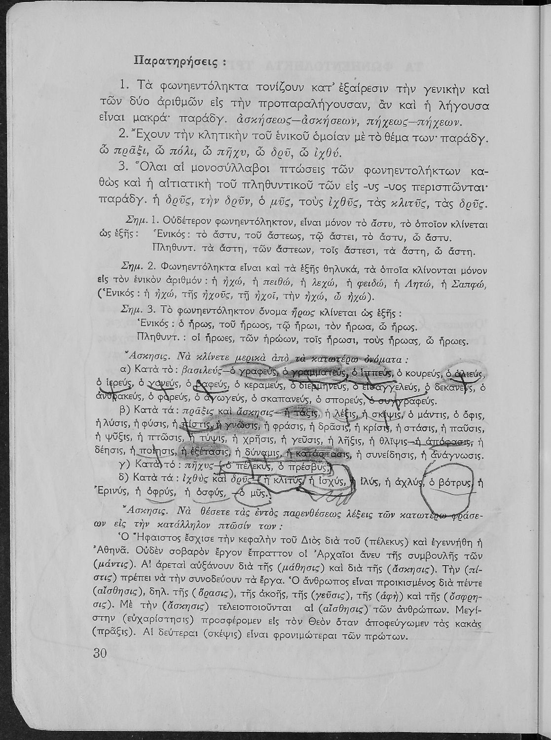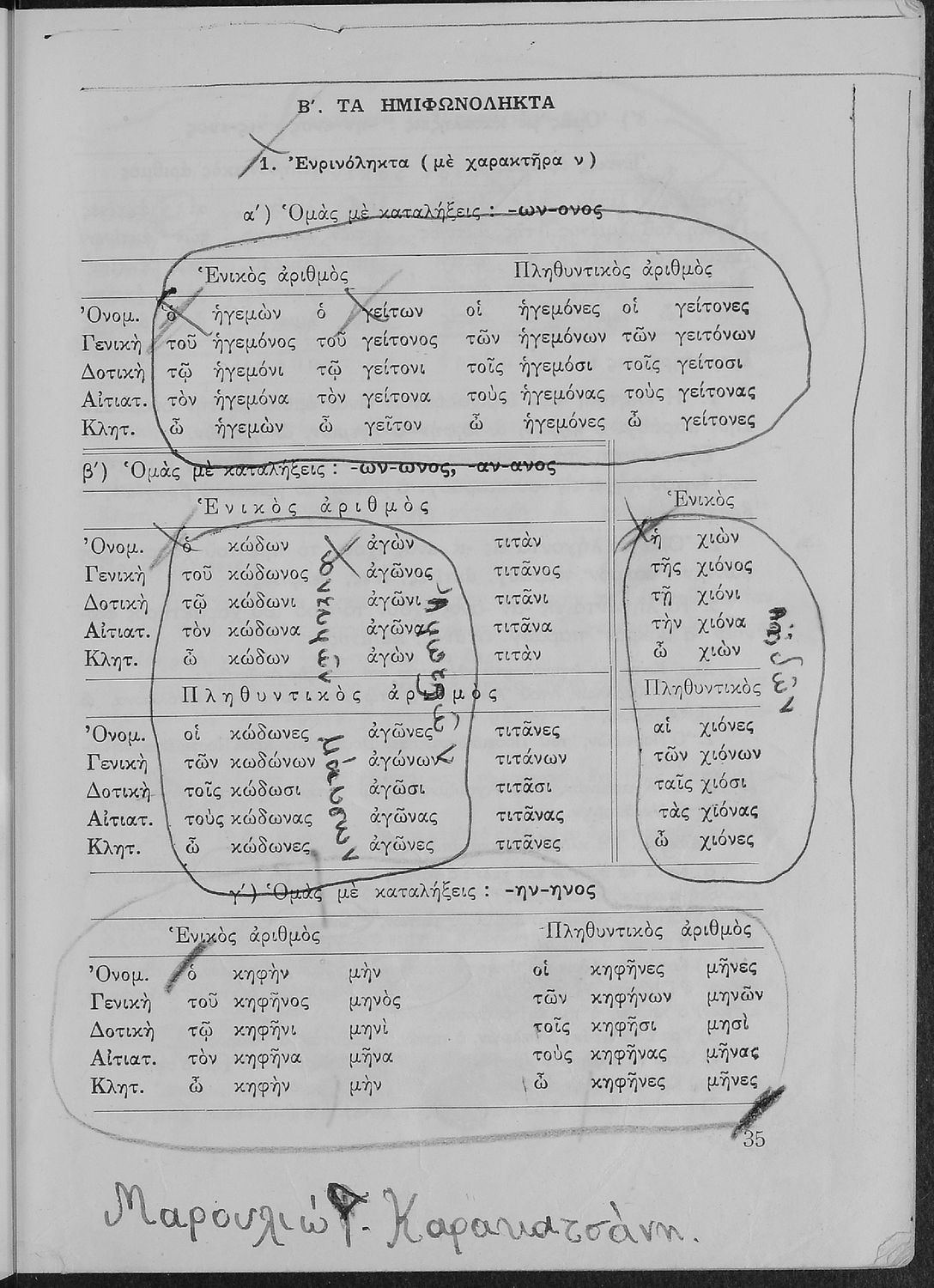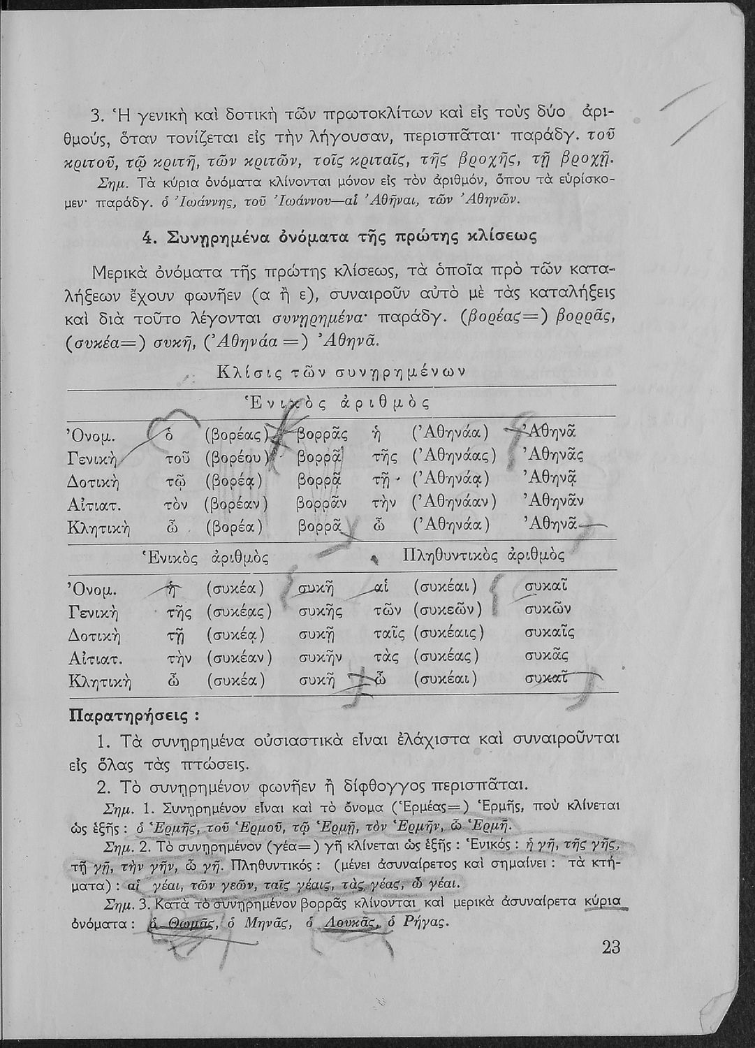 Σχολικό εγχειρίδιο γραμματικής για τους μαθητές της Ε΄ και ΣΤ΄ τάξης του Δημοτικού. Περιέχει τη διδασκαλία της γραμματικής της καθαρεύουσας με κανόνες και παραδείγματα.
