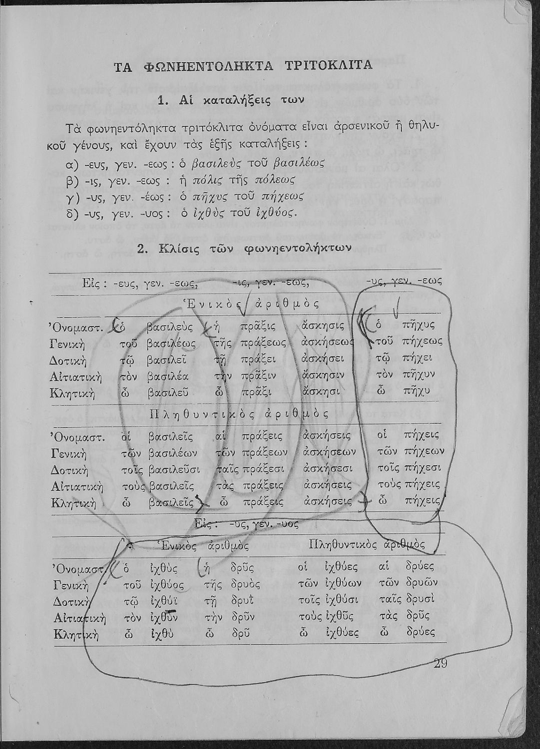 Βαθμίδα εκπαίδευσης: Πρωτοβάθμια Τάξη: Ε' Δημοτικού / ΣΤ' Δημοτικού Μάθημα: Νέα Ελληνικά Γλώσσα: Καθαρεύουσα Παρουσίαση περιεχομένου: Σχολικό εγχειρίδιο γραμματικής για τους μαθητές της Ε΄ και ΣΤ΄ τάξης του Δημοτικού. Περιέχει τη διδασκαλία της γραμματικής της καθαρεύουσας με κανόνες και παραδείγματα. |