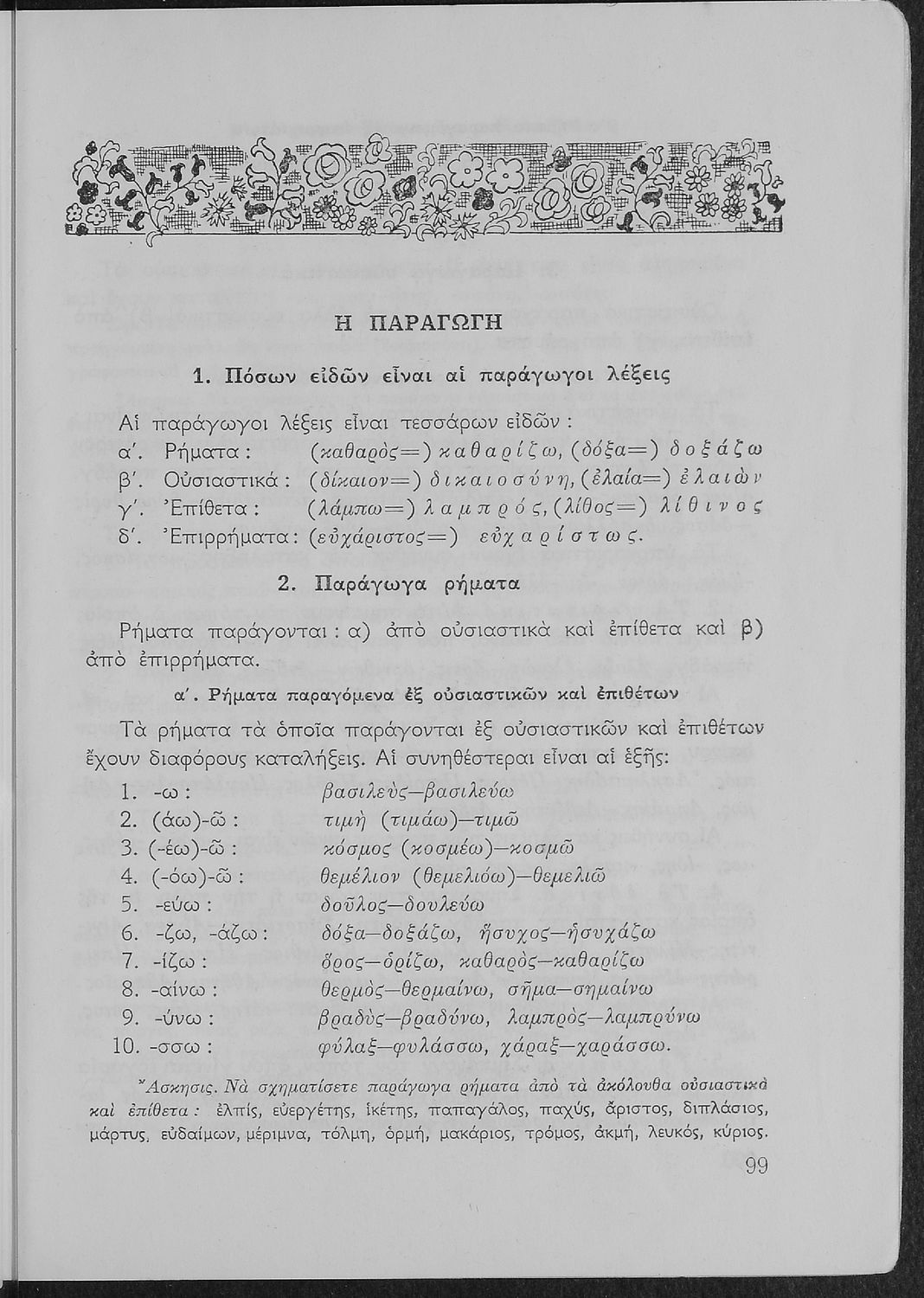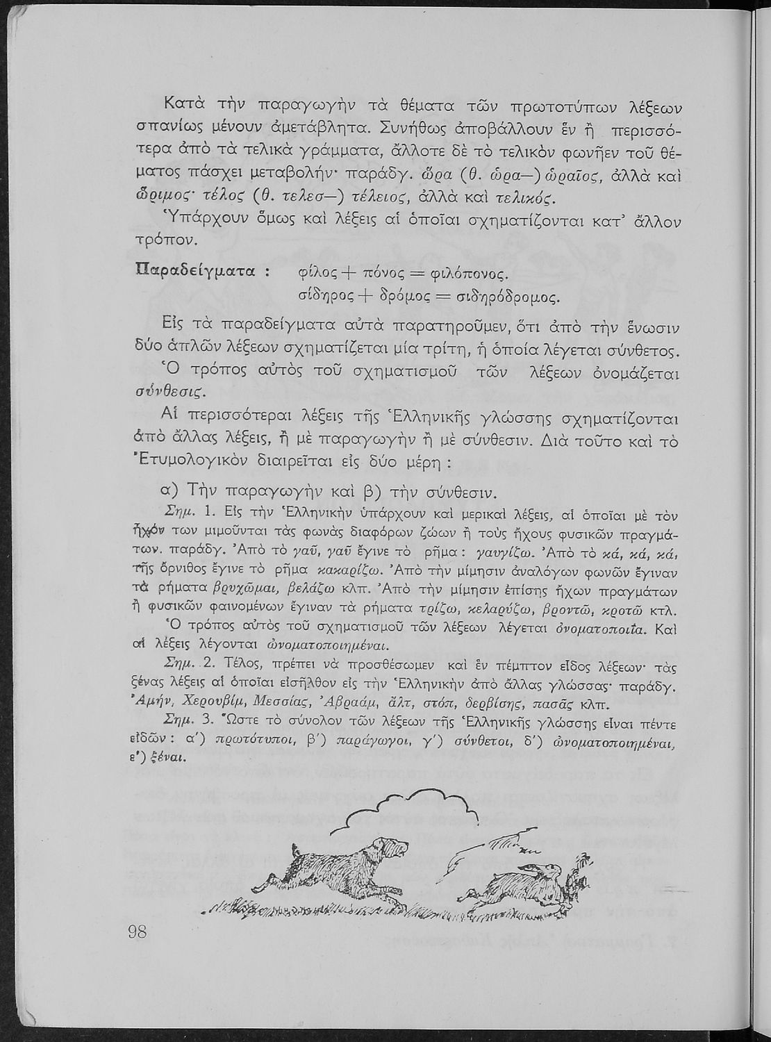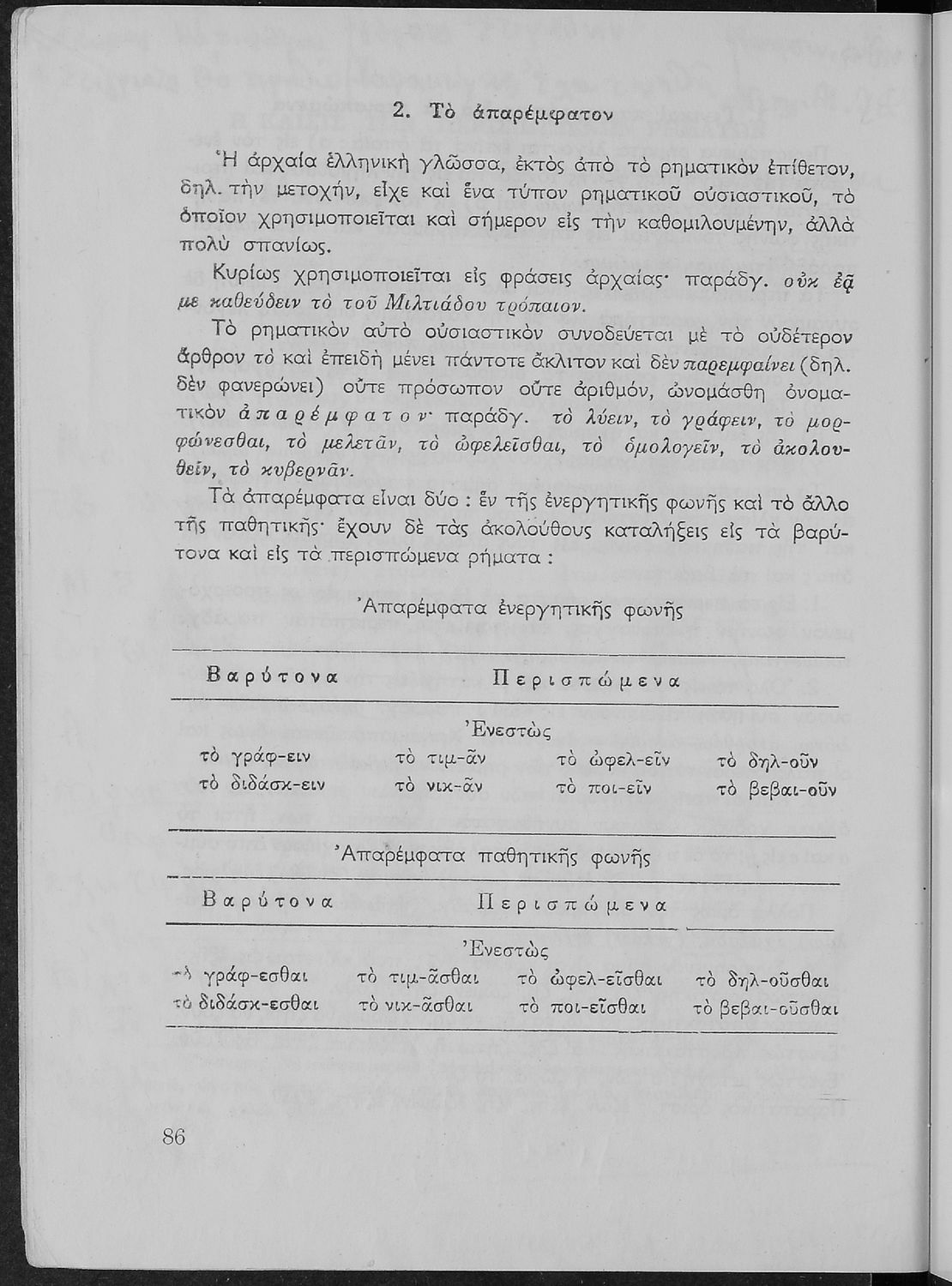 Μαθητικό βοήθημα Γραμματικής για τους μαθητές της Ε΄ και ΣΤ΄ τάξης του Δημοτικού. Περιέχει τη διδασκαλία της γραμματικής της καθαρεύουσας.