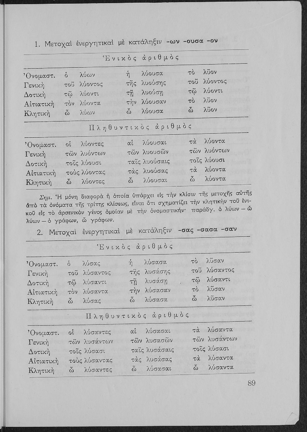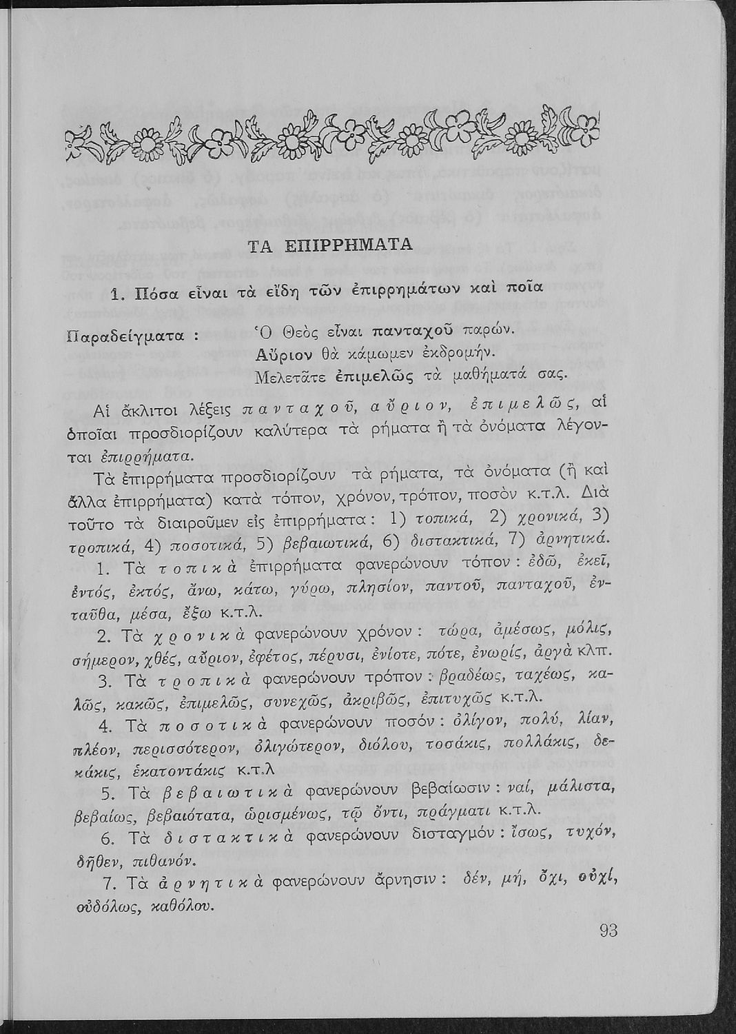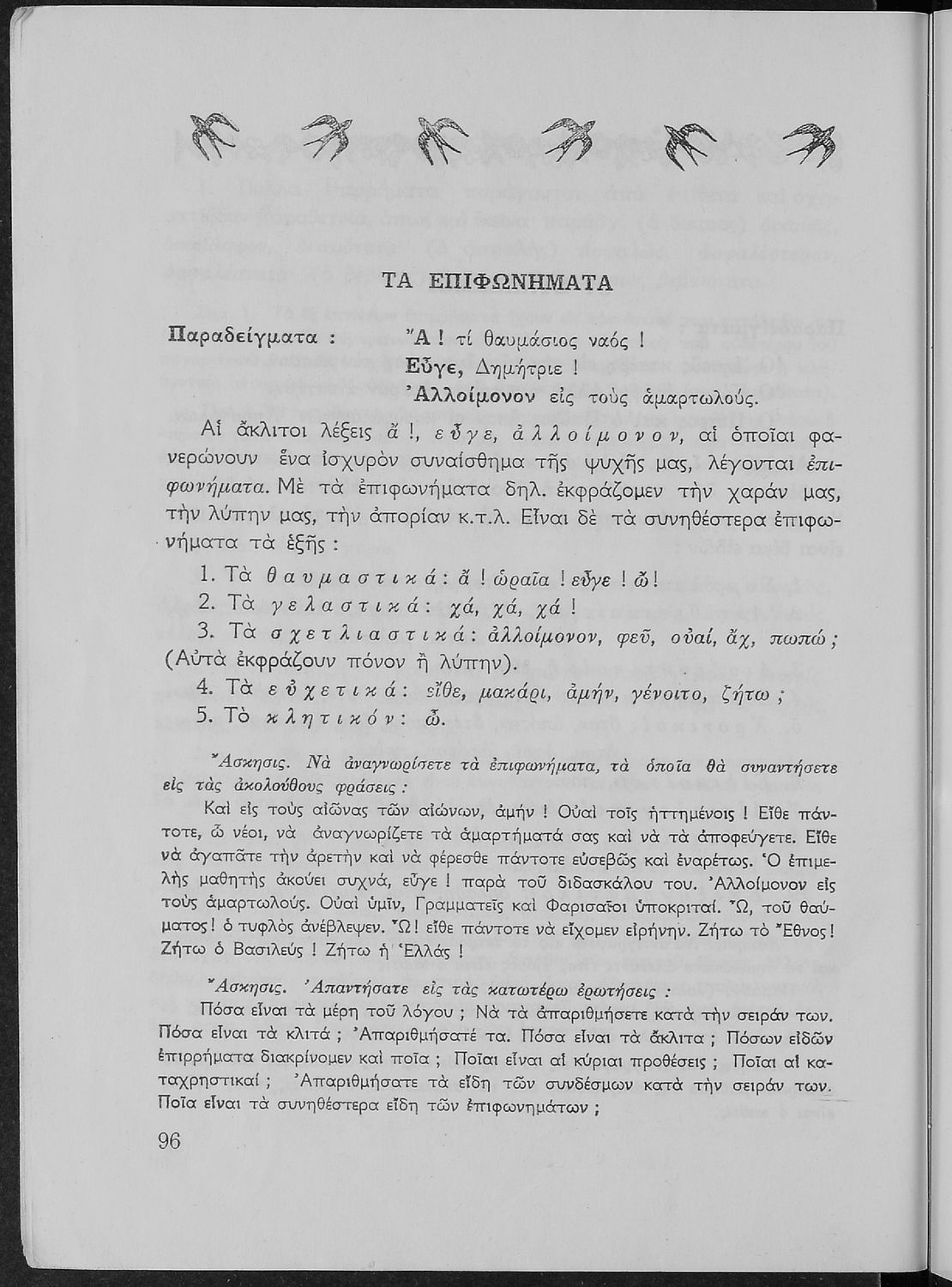 Μαθητικό βοήθημα Γραμματικής για τους μαθητές της Ε΄ και ΣΤ΄ τάξης του Δημοτικού. Περιέχει τη διδασκαλία της γραμματικής της καθαρεύουσας.