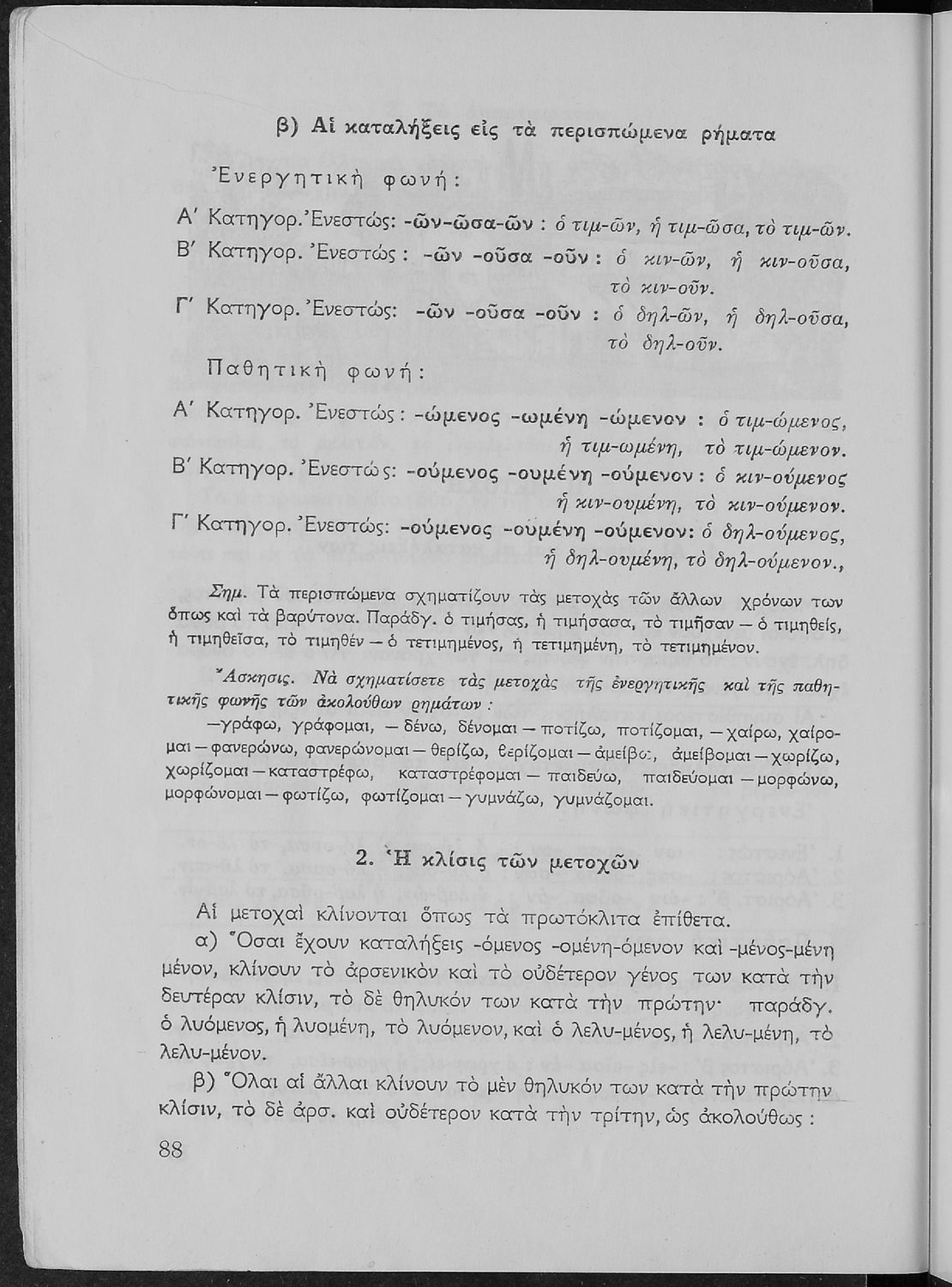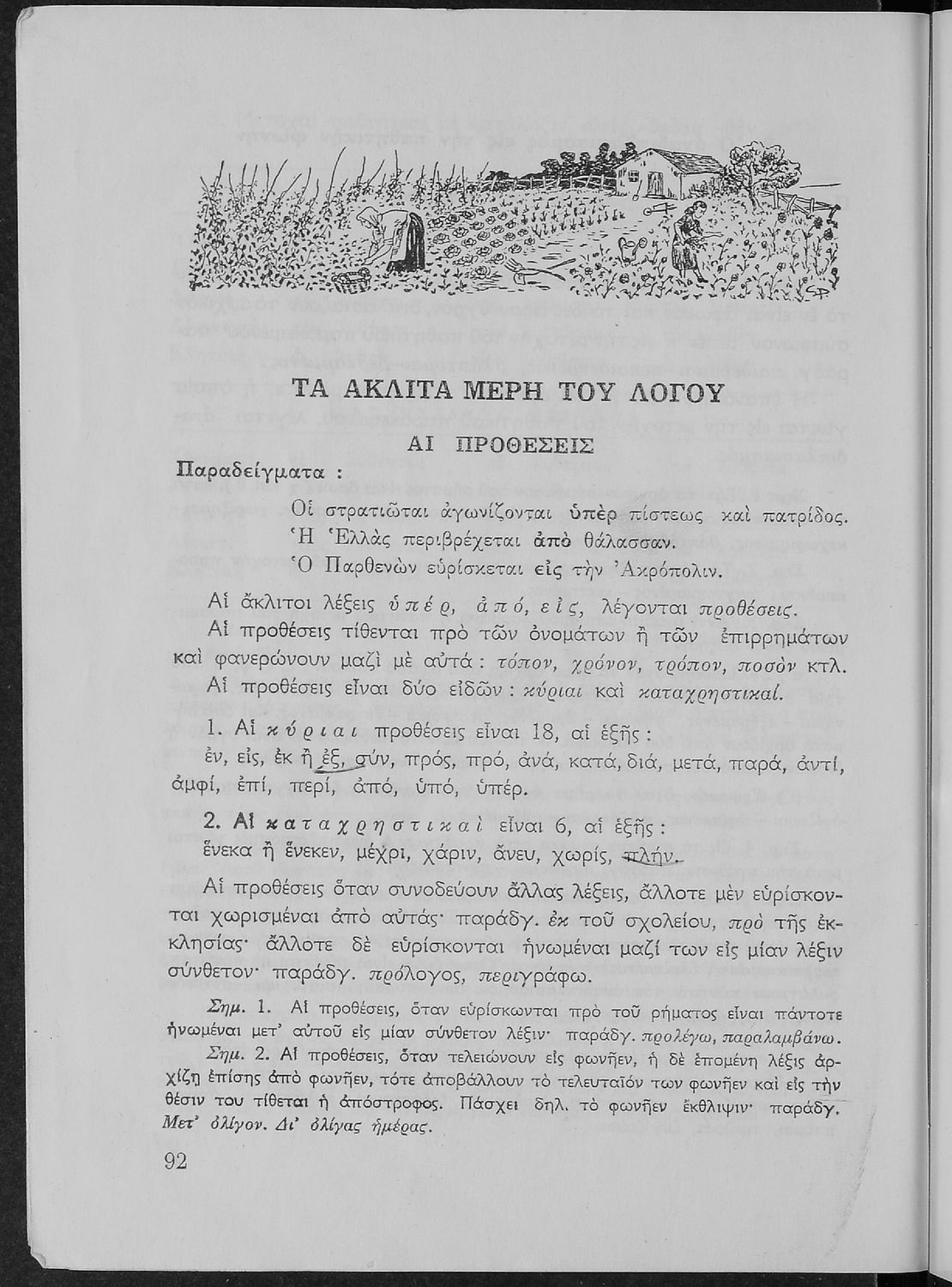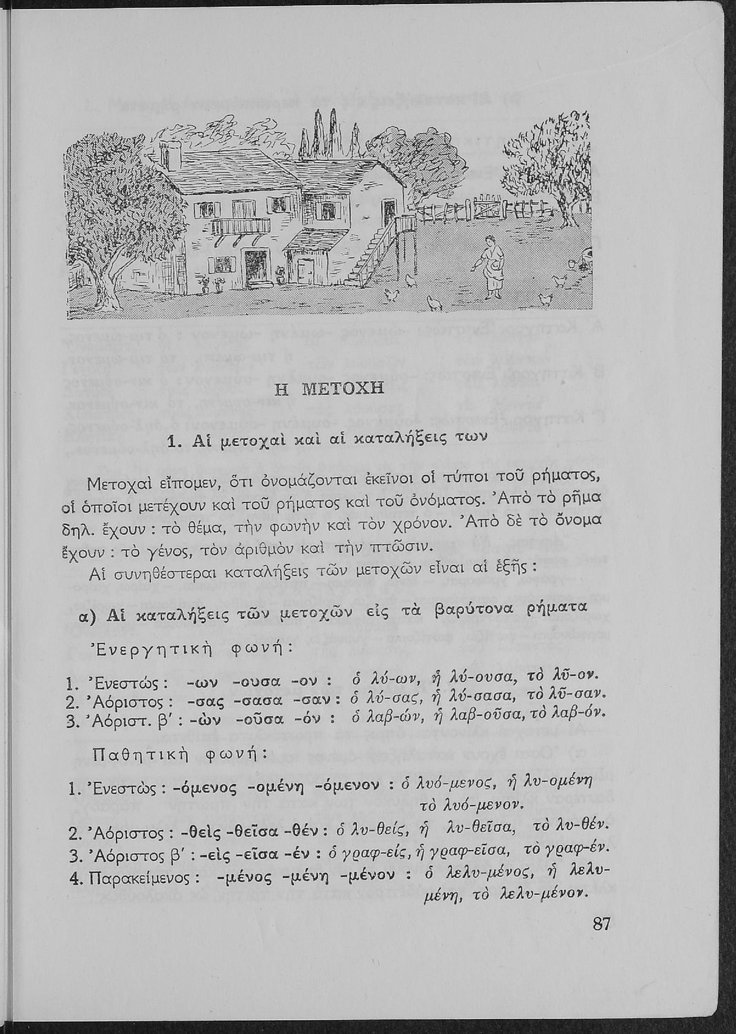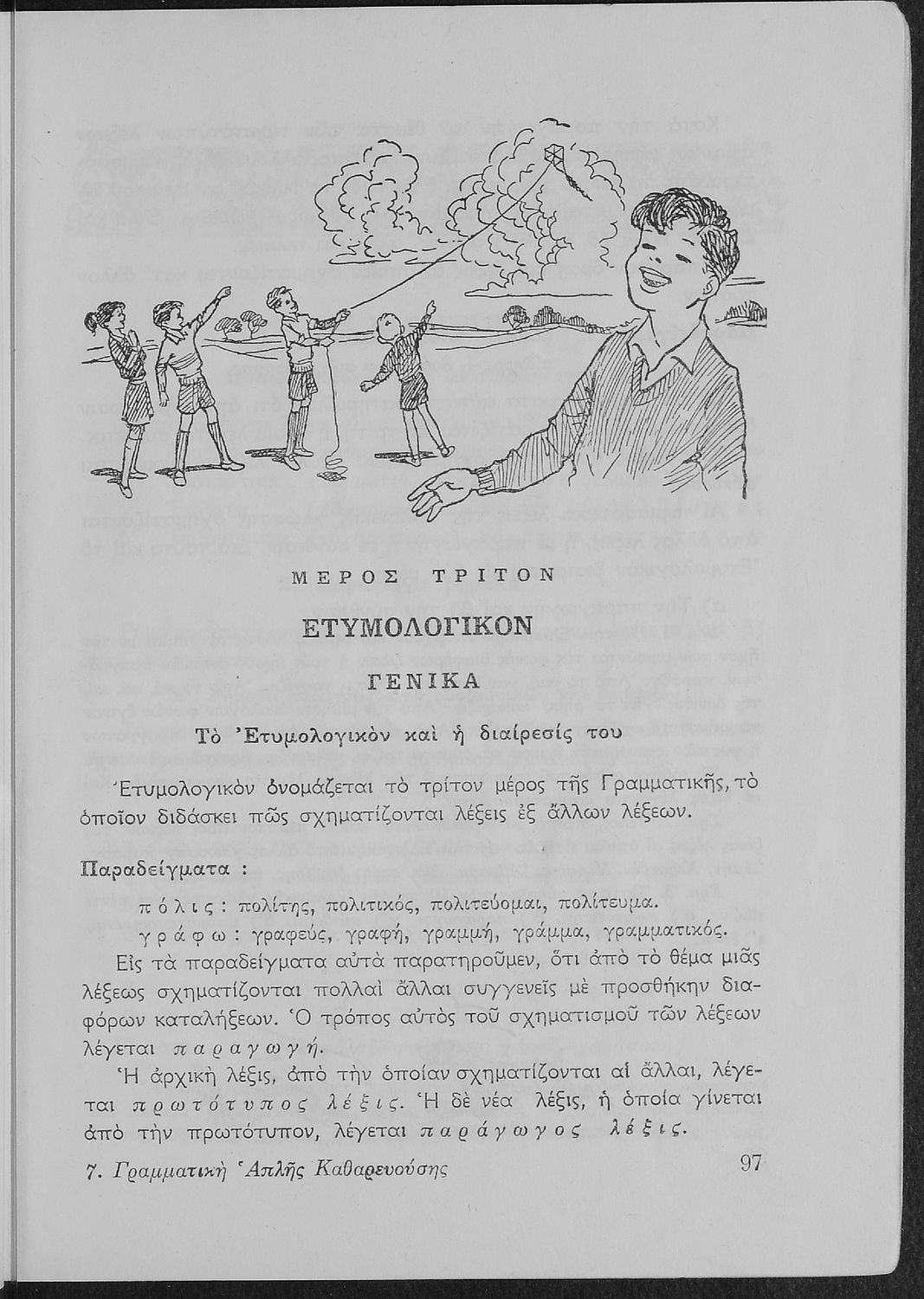 Παρουσίαση περιεχομένου: Σχολικό εγχειρίδιο γραμματικής για τους μαθητές της Ε΄ και ΣΤ΄ τάξης του Δημοτικού. Περιέχει τη διδασκαλία της γραμματικής της καθαρεύουσας με κανόνες και παραδείγματα.