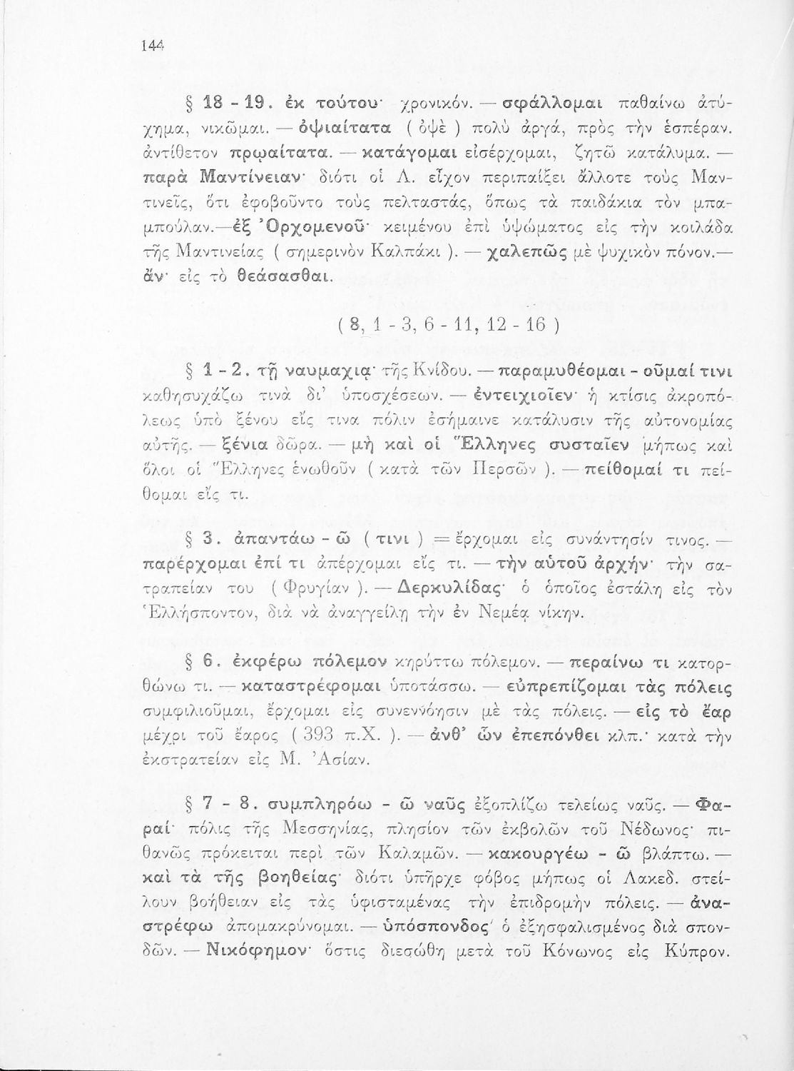 Σχολικό εγχειρίδιο Αρχαίων Ελληνικών Β΄ Γυμνασίου που περιλαμβάνει εισαγωγή στα Ελληνικά του Ξενοφώντα, το 3ο και το 4ο βιβλίο από τα Ελληνικά, ερμηνευτικές σημειώσεις και χωρογραφικό πίνακα της περιοχής.
