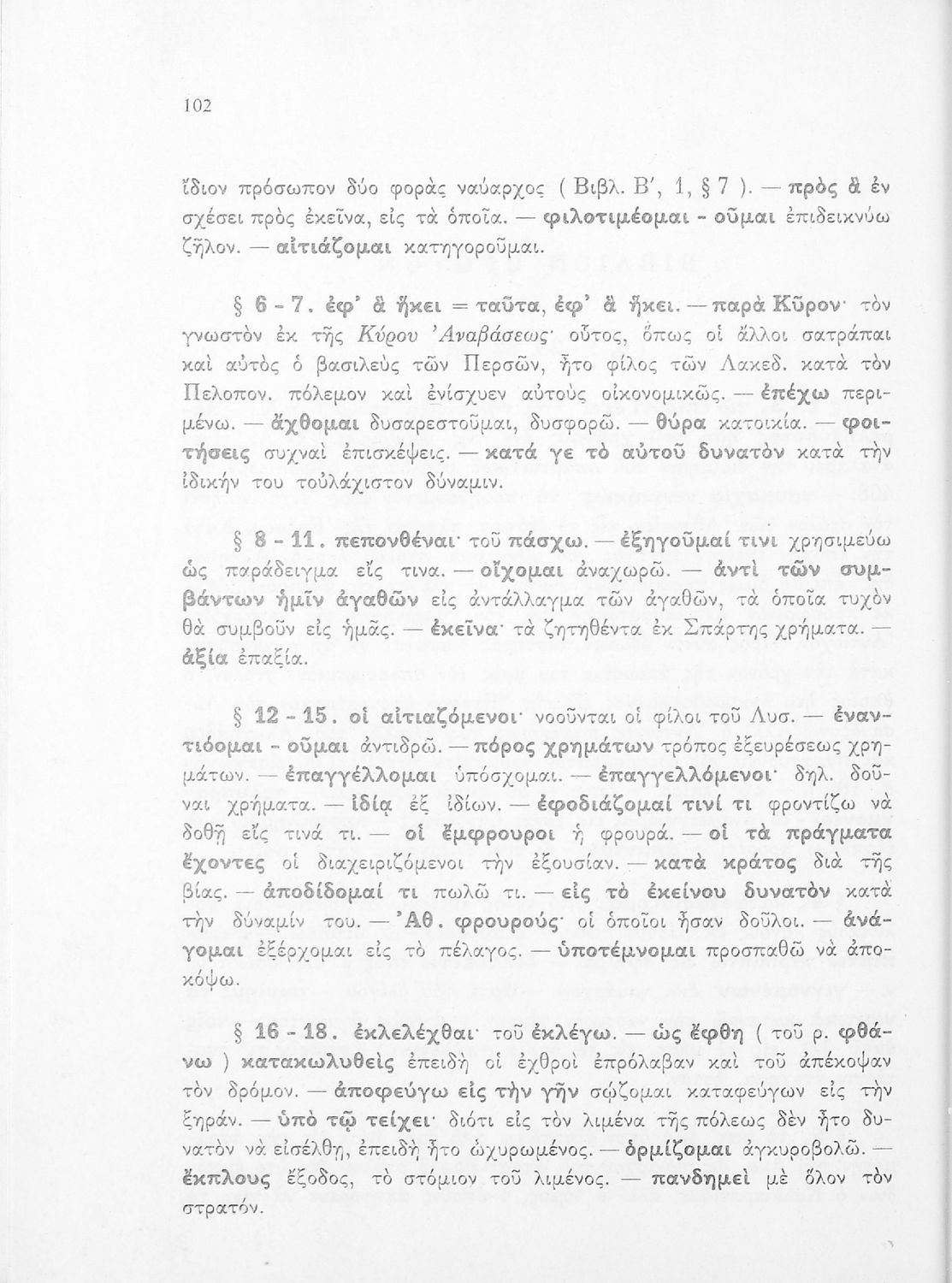 Σχολικό εγχειρίδιο Αρχαίων Ελληνικών Β΄ Γυμνασίου που περιέχει αποσπάσματα από το έργο Κύρου Ανάβασις του Ξενοφώντα, λεξιλογικές παρατηρήσεις, ερμηνευτικά, πραγματολογικά σχόλια και γραμματικές παρατηρήσεις.