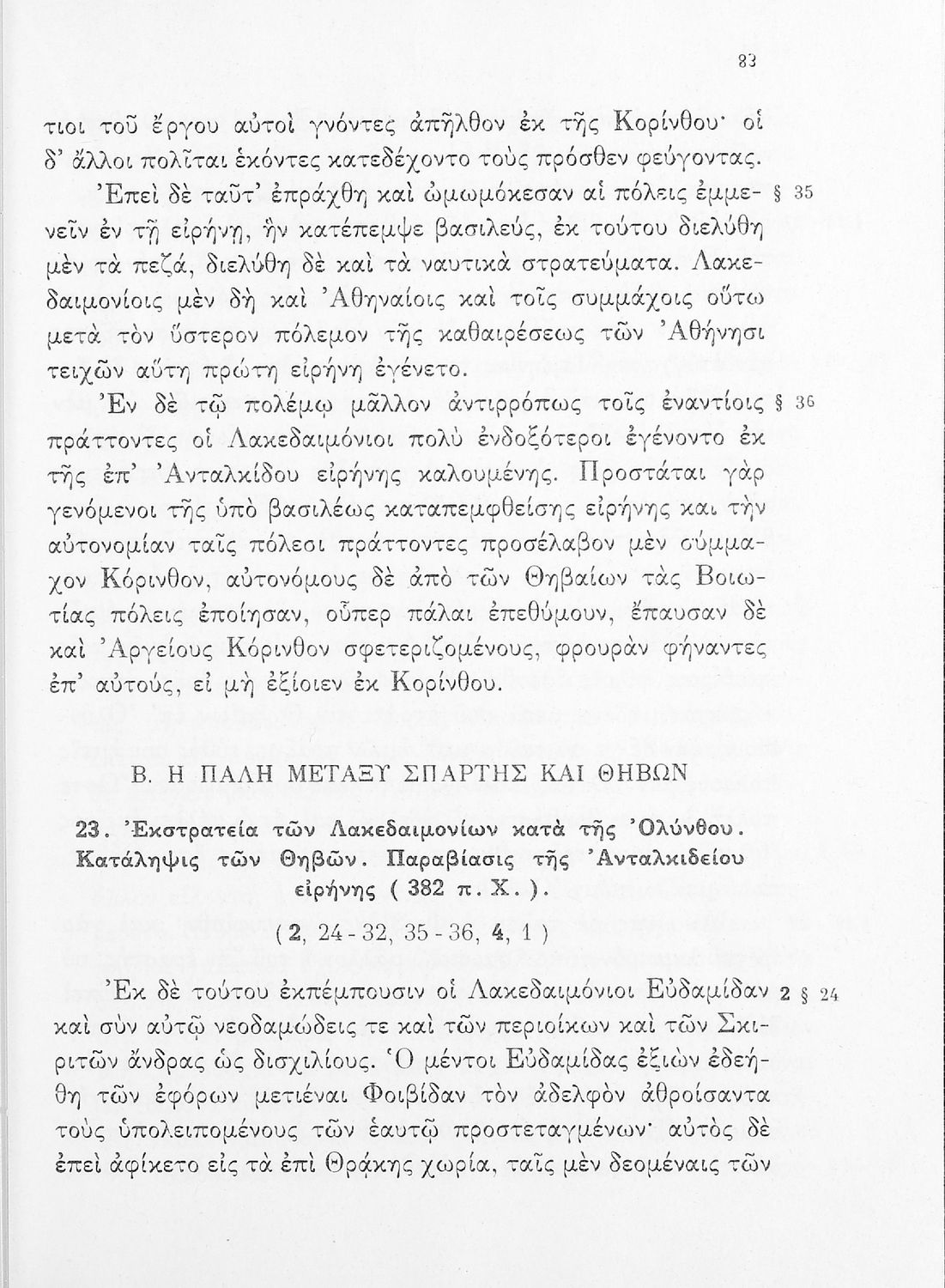Σχολικό εγχειρίδιο της Β΄ Γυμνασίου για το μάθημα των Αρχαίων Ελληνικών. Περιλαμβάνει κείμενα από το έργο Ελληνικά του Ξενοφώντα. Διαθέτει εισαγωγή, μετάφραση και ερμηνευτικές παρατηρήσεις του συγγραφέα.