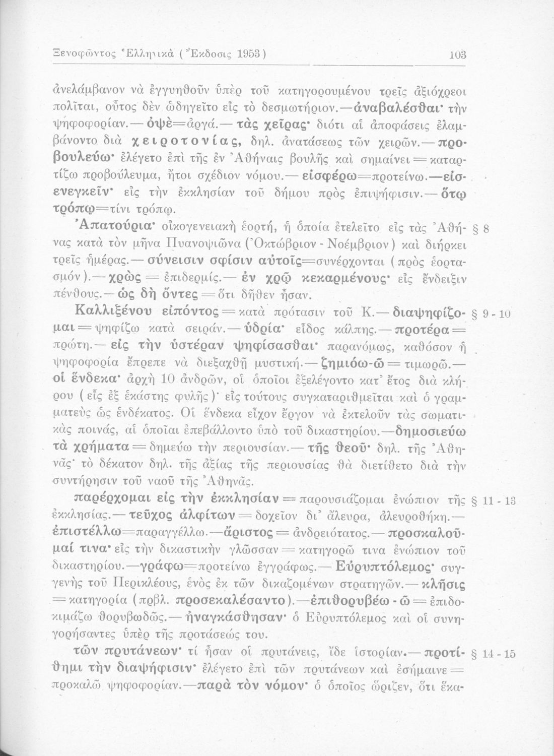 Σχολικό εγχειρίδιο της Β΄ Γυμνασίου για το μάθημα των Αρχαίων Ελληνικών. Περιλαμβάνει αποσπάσματα από τα Ελληνικά του Ξενοφώντα. Περιέχει το αρχαίο κείμενο, λεξιλογικές παρατηρήσεις, ερμηνευτικά, πραγματολογικά σχόλια και γραμματικές παρατηρήσεις του συγγραφέα.
