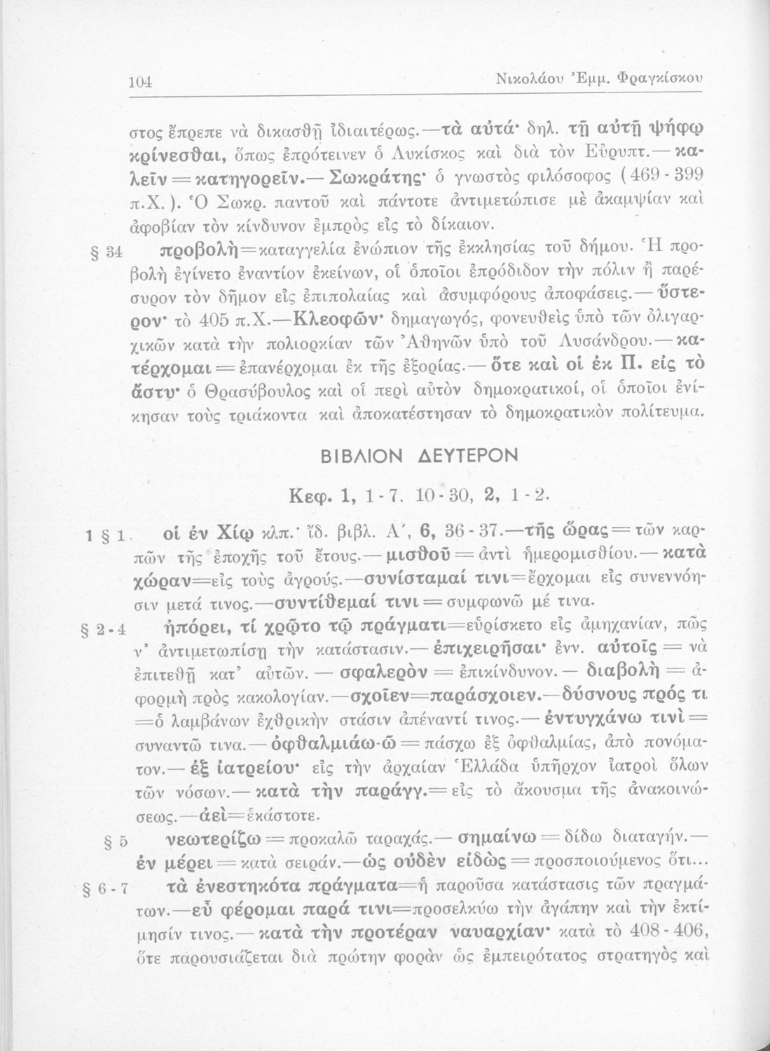 Βαθμίδα εκπαίδευσης: Δευτεροβάθμια Τάξη: Β' Γυμνασίου Μάθημα: Αρχαία Ελληνικά Γλώσσα: Απλή καθαρεύουσα Παρουσίαση περιεχομένου: Σχολικό εγχειρίδιο της Β΄ Γυμνασίου για το μάθημα των Αρχαίων Ελληνικών. Περιλαμβάνει αποσπάσματα από τα Ελληνικά του Ξενοφώντα. Περιέχει το αρχαίο κείμενο, λεξιλογικές παρατηρήσεις, ερμηνευτικά, πραγματολογικά σχόλια και γραμματικές παρατηρήσεις του συγγραφέα. |
