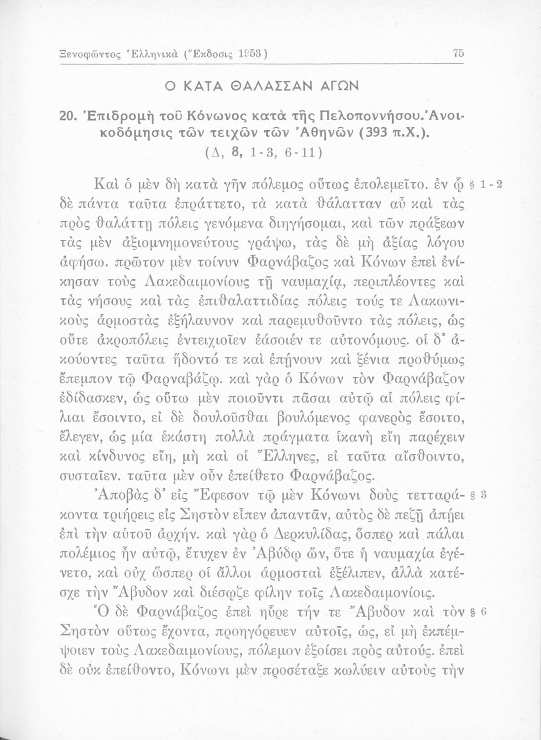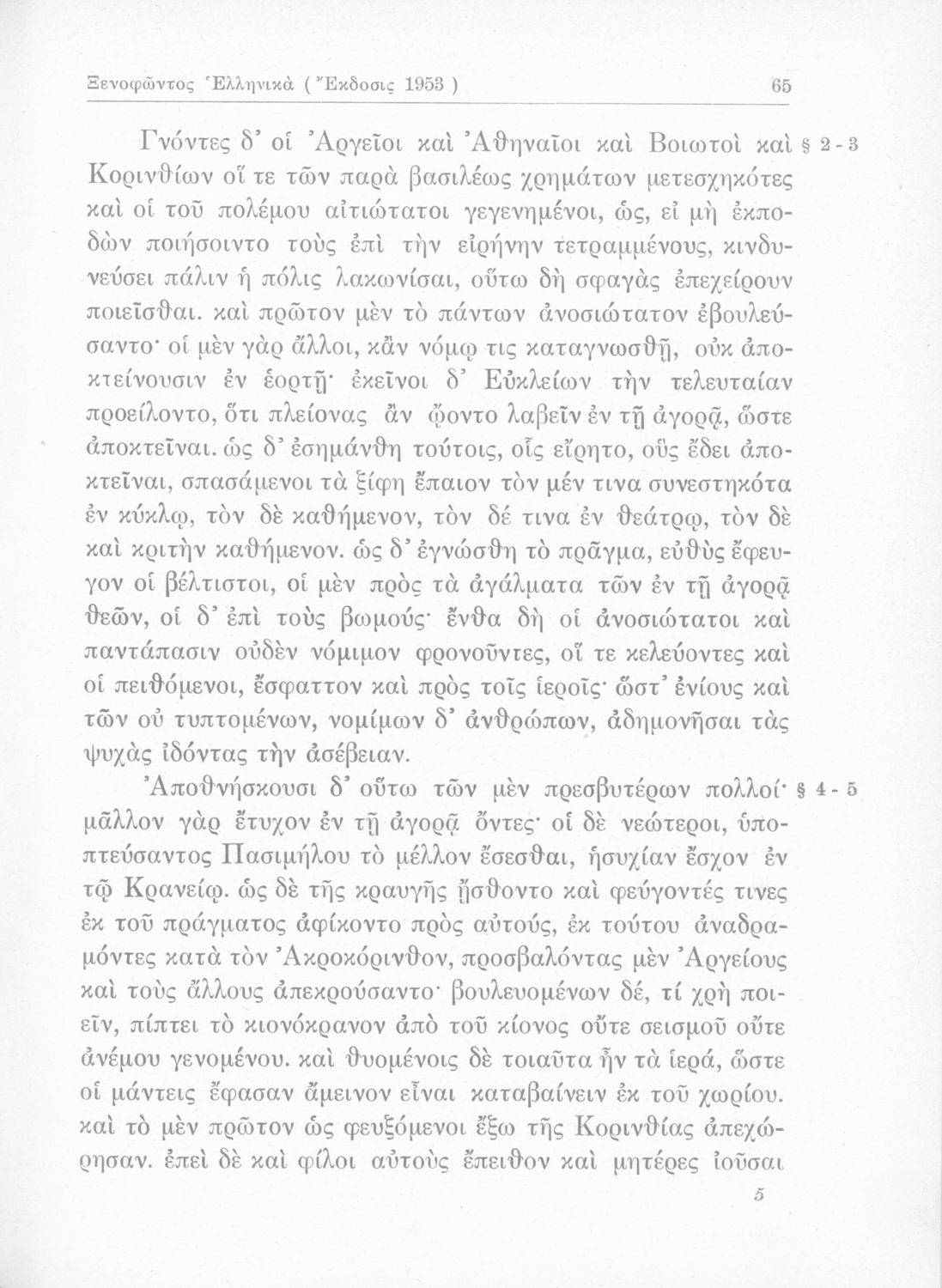 Σχολικό εγχειρίδιο της Β΄ Γυμνασίου για το μάθημα των Αρχαίων Ελληνικών. Περιλαμβάνει αποσπάσματα από τα Ελληνικά του Ξενοφώντα. Περιέχει το αρχαίο κείμενο, λεξιλογικές παρατηρήσεις, ερμηνευτικά, πραγματολογικά σχόλια και γραμματικές παρατηρήσεις του συγγραφέα.