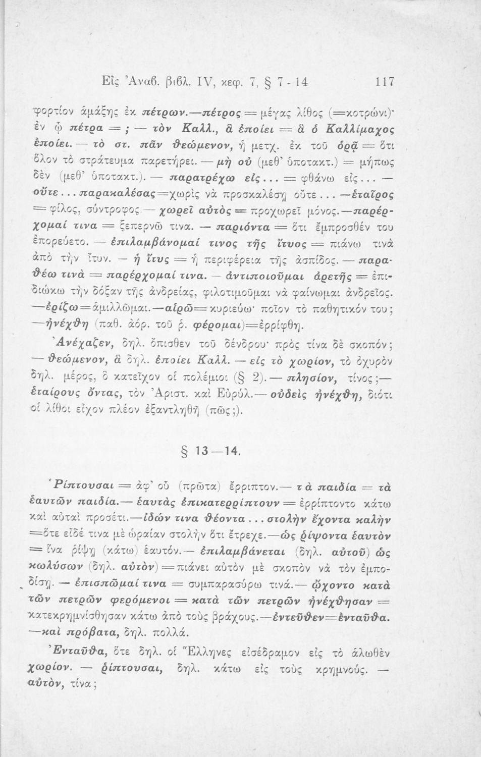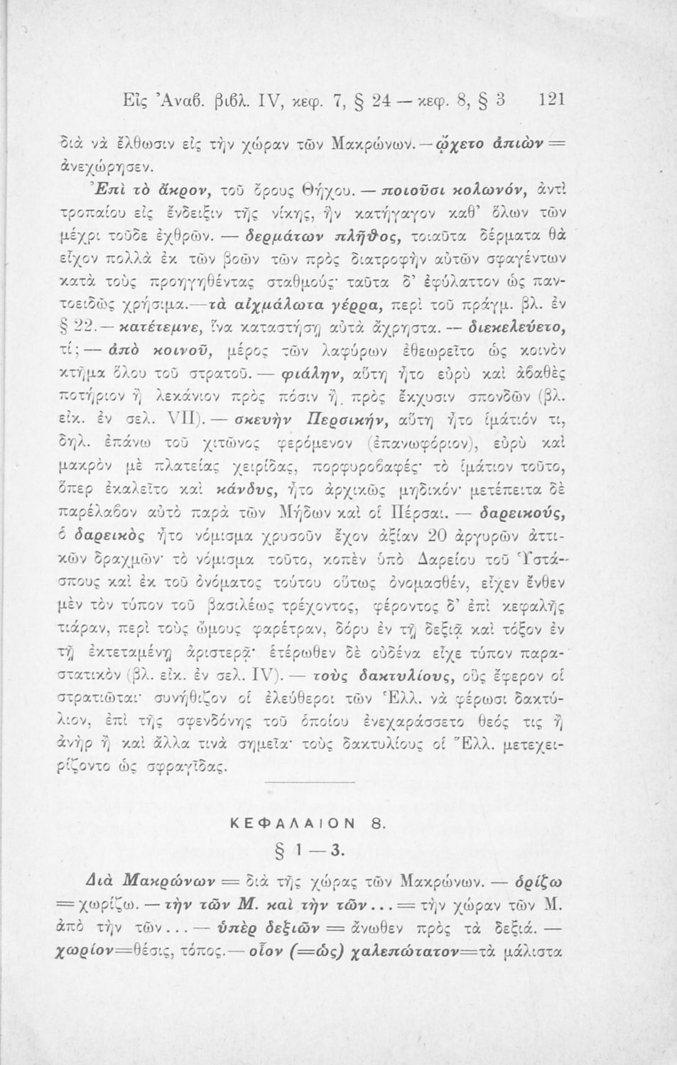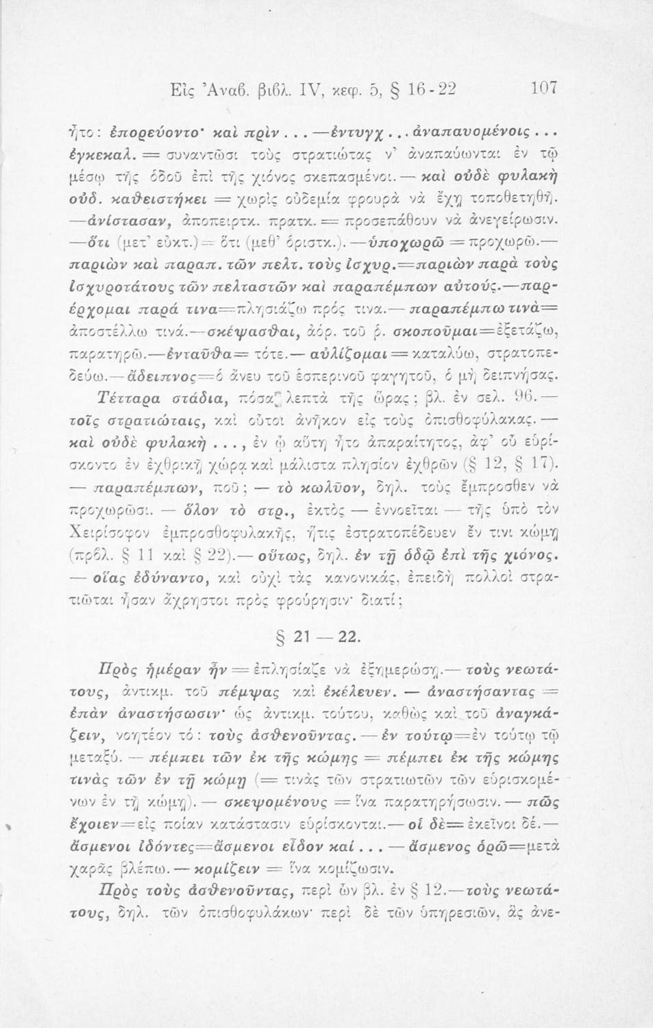 Παρουσίαση περιεχομένου: Σχολικό εγχειρίδιο της Γ' Ελληνικού Σχολείου και Αστικών Σχολείων για το μάθημα των Αρχαίων Ελληνικών. Το σύγγραμμα περιλαμβάνει κείμενα κατ΄ επιλογή από τα τέσσερα τελευταία βιβλία του έργου Κύρου Ανάβασις. Το πρωτότυπο κείμενο συνοδεύεται από ερμηνευτικές, πραγματολογικές και γλωσσικές παρατηρήσεις του συγγραφέα. Ο συγγραφέας ήταν διδάκτωρ φιλολογίας και Καθηγητής στο Α΄ Γυμνάσιο του Πειραιά.