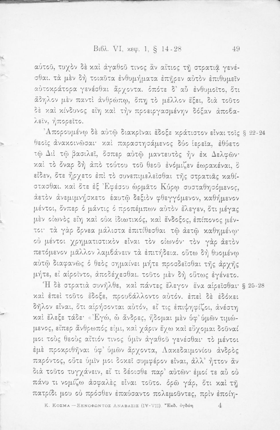 Ξενοφώντος Κύρου Αναβάσεως τα τέσσερα τελευταία βιβλία κατ΄ εκλογήν εκδοθέντα δια την Γ΄ Τάξιν των Ελληνικών Σχολείων και την Α΄ των Αστικών Σχολείων των Θηλέων