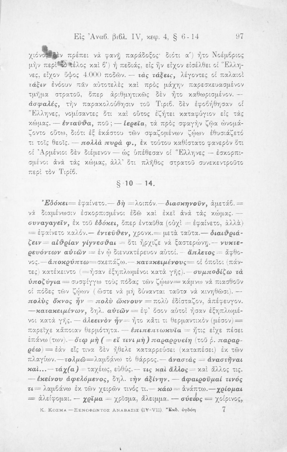 Ξενοφών, Δ. Η. Κυριακόπουλος (σχόλια)