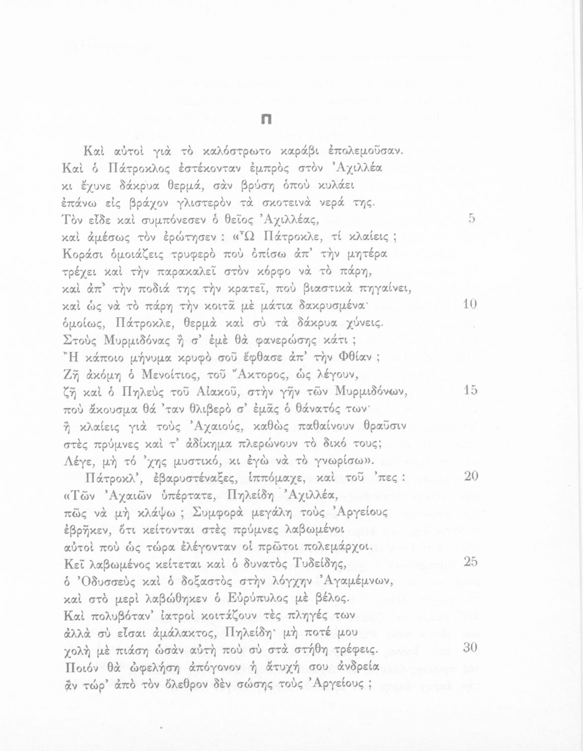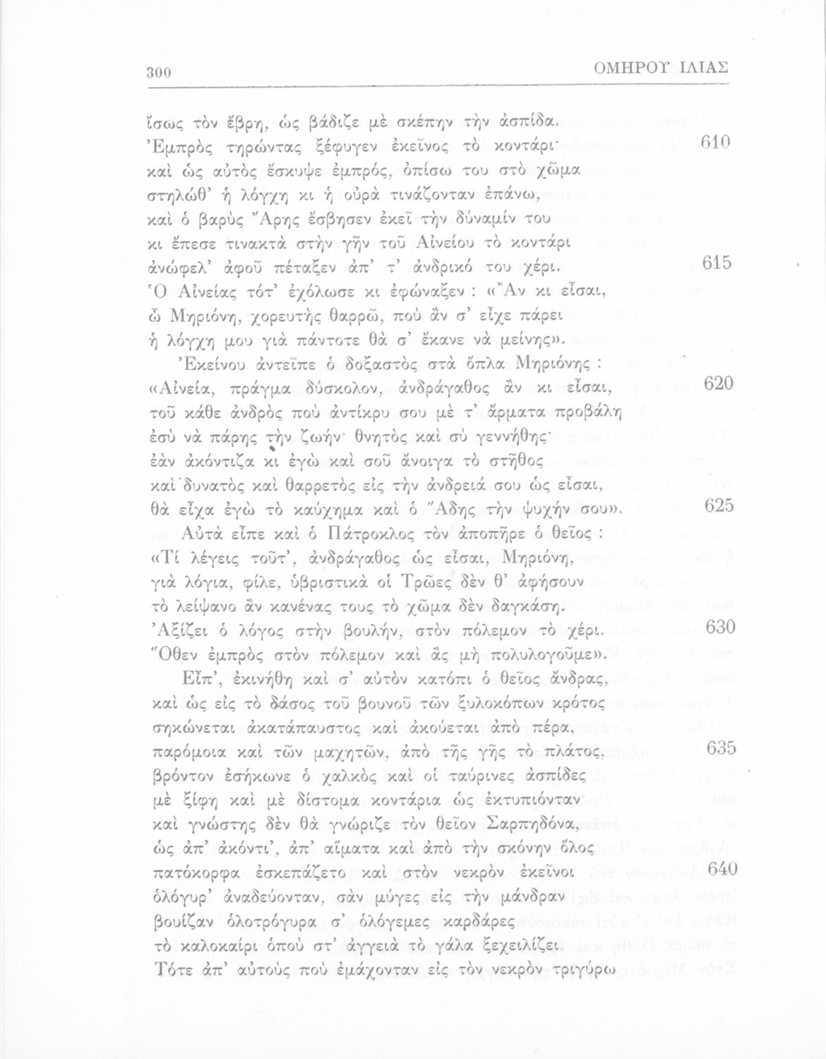 Σχολικό εγχειρίδιο της Δευτεροβάθμιας Εκπαίδευσης για το μάθημα των Αρχαίων Ελληνικών. Πρόκειται για το κείμενο της Ιλιάδας μεταφρασμένο, με πραγματολογικές παρατηρήσεις. Στο τέλος περιλαμβάνει λεξιλόγιο.