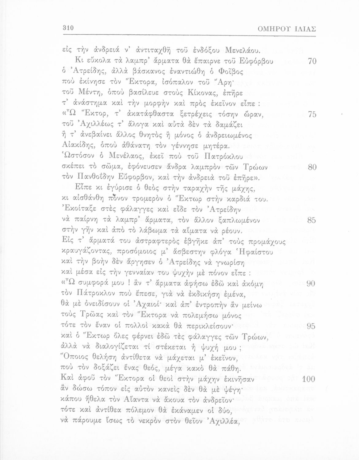 Σχολικό εγχειρίδιο της Δευτεροβάθμιας Εκπαίδευσης για το μάθημα των Αρχαίων Ελληνικών. Πρόκειται για το κείμενο της Ιλιάδας μεταφρασμένο, με πραγματολογικές παρατηρήσεις. Στο τέλος περιλαμβάνει λεξιλόγιο.