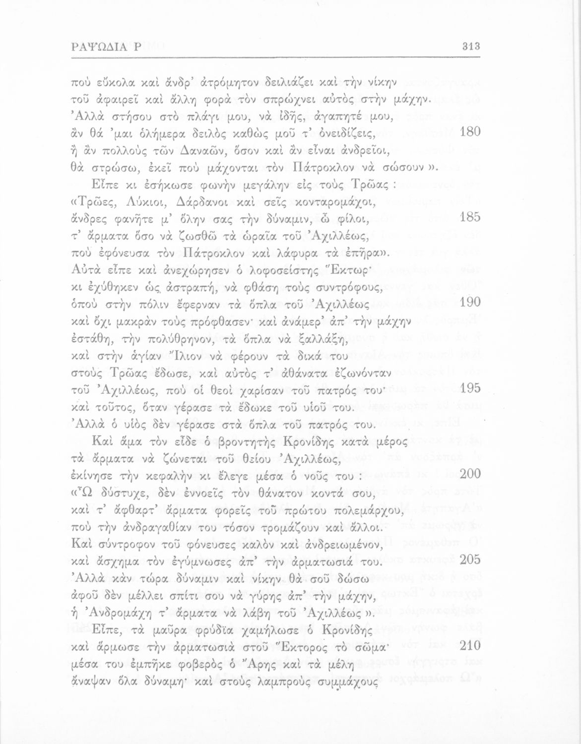 Μαθητικό βοήθημα του Ελληνικού Σχολείου, των Παρθεναγωγείων και του Γυμνασίου για το μάθημα των Αρχαίων Ελληνικών. Περιέχει τις ραψωδίες Ο, Π, Ρ, Σ, Τ, Χ, ψ, Ω από το πρωτότυπο με σχόλια και ερμηνευτικές ...