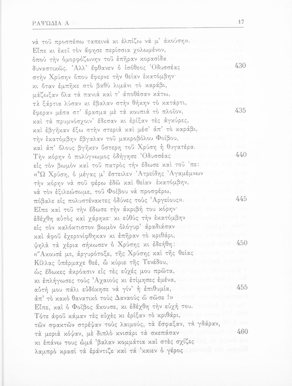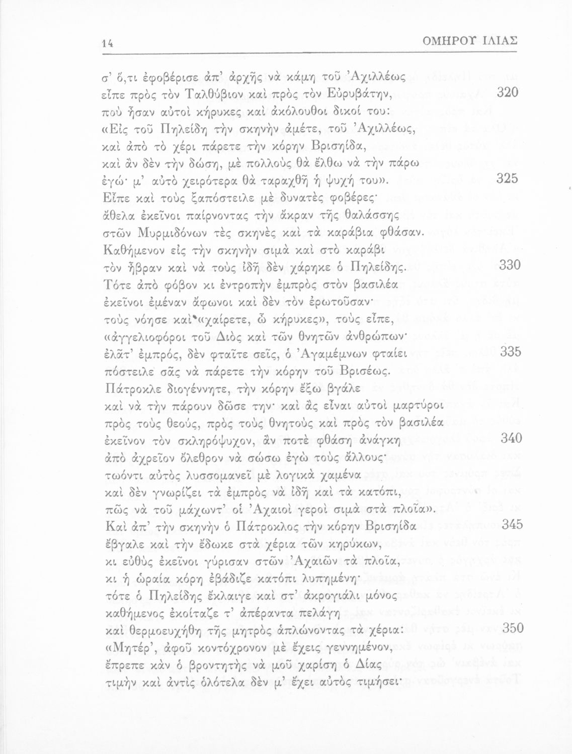 Σχολικό εγχειρίδιο της Δευτεροβάθμιας Εκπαίδευσης για το μάθημα των Αρχαίων Ελληνικών. Πρόκειται για το κείμενο της Ιλιάδας μεταφρασμένο, με πραγματολογικές παρατηρήσεις. Στο τέλος περιλαμβάνει λεξιλόγιο.