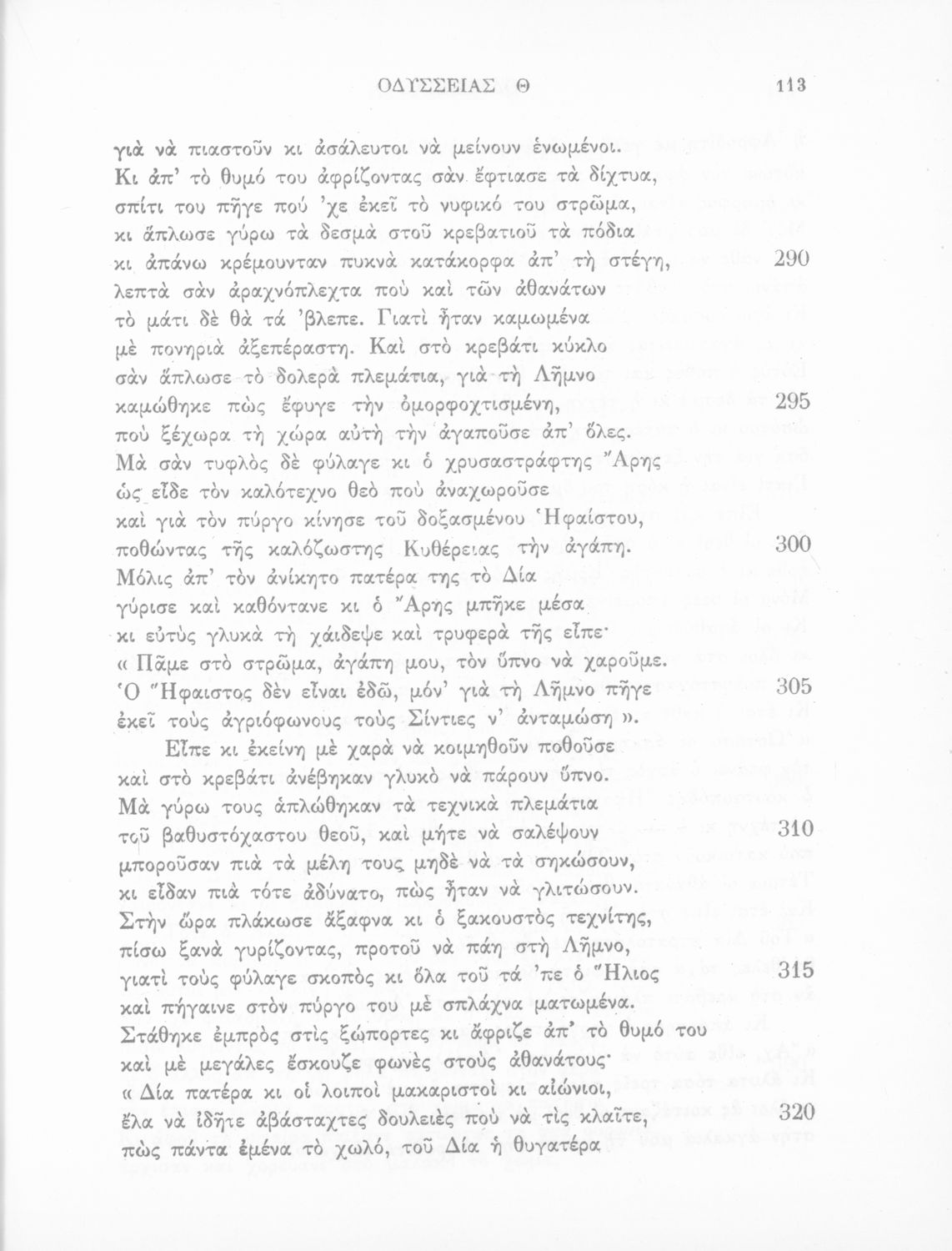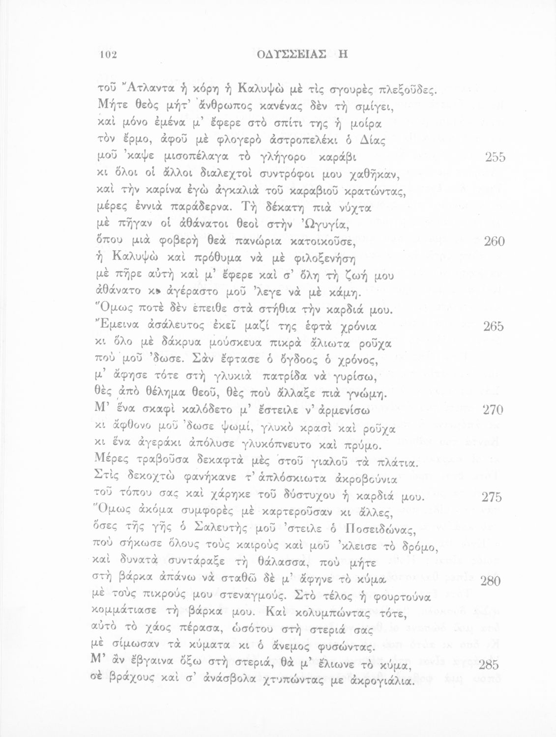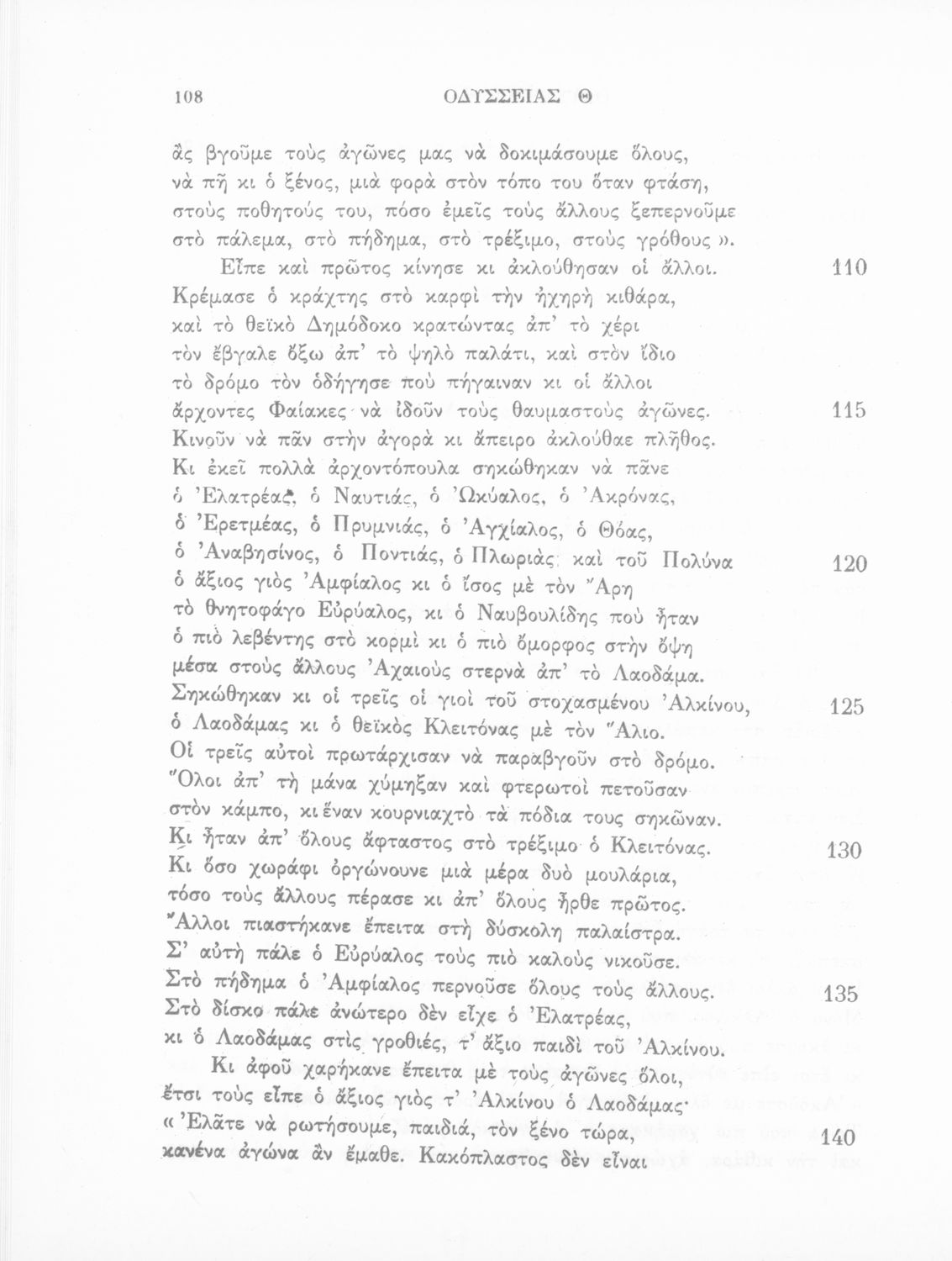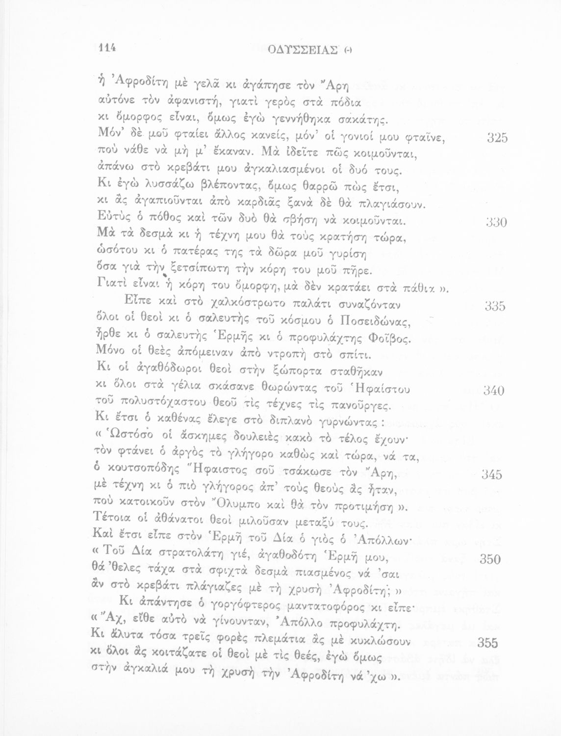 Σχολικό εγχειρίδιο του Γυμνασίου για το μάθημα των Αρχαίων Ελληνικών. Πρόκειται για το κείμενο της Οδύσσειας μεταφρασμένο στο τέλος περιλαμβάνει λεξιλόγιο.