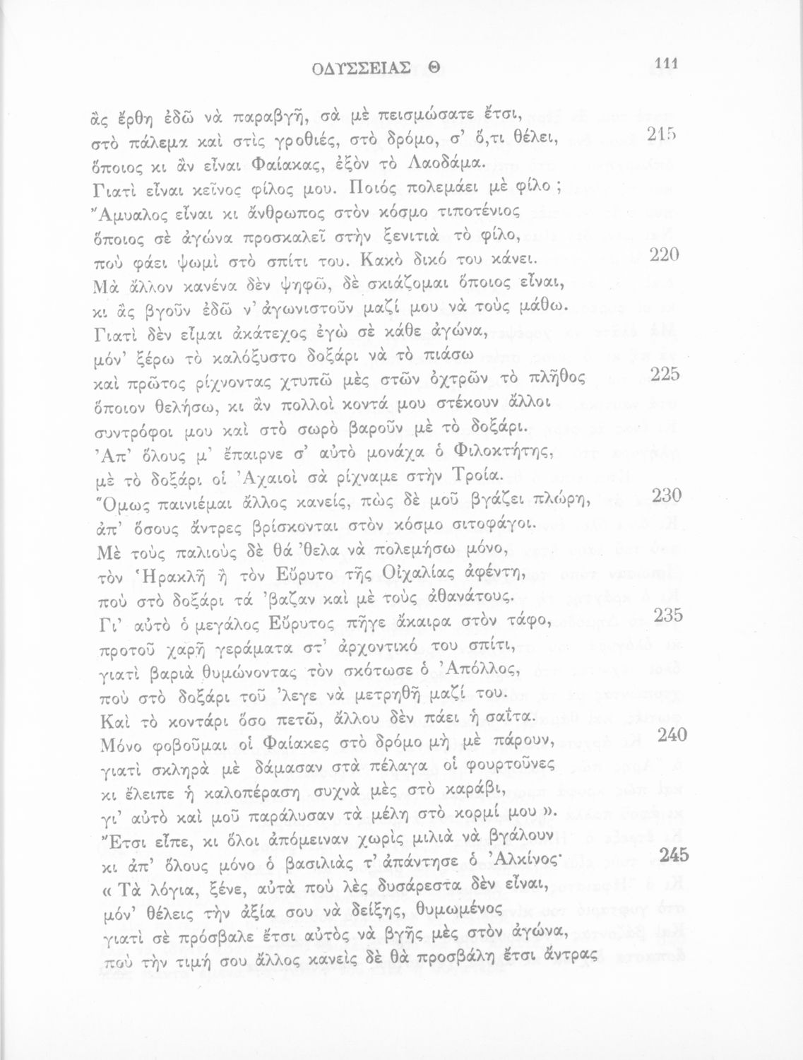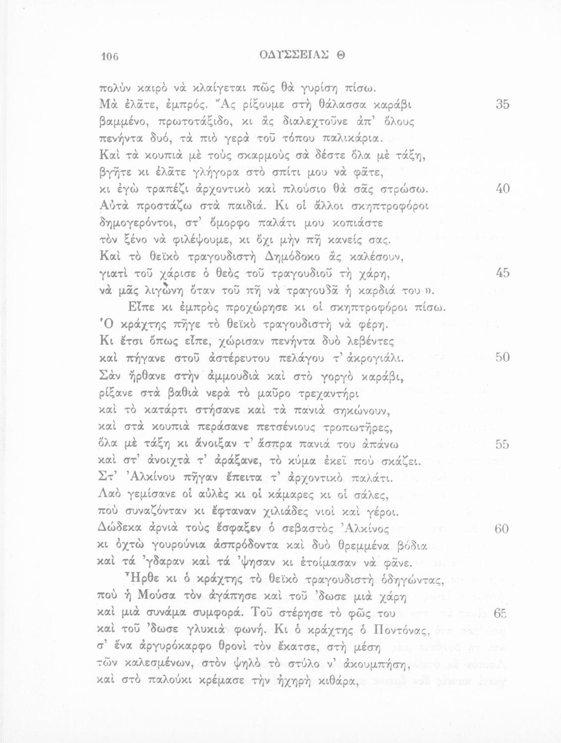 Παιδαγωγικό βοήθημα Αρχαίων Ελληνικών που περιλαμβάνει μετάφραση της Ομήρου Οδύσσειας στη νέα ελληνική, εισαγωγή στην επική ποίηση και στην Οδύσσεια, περιλήψεις και σημειώσεις.