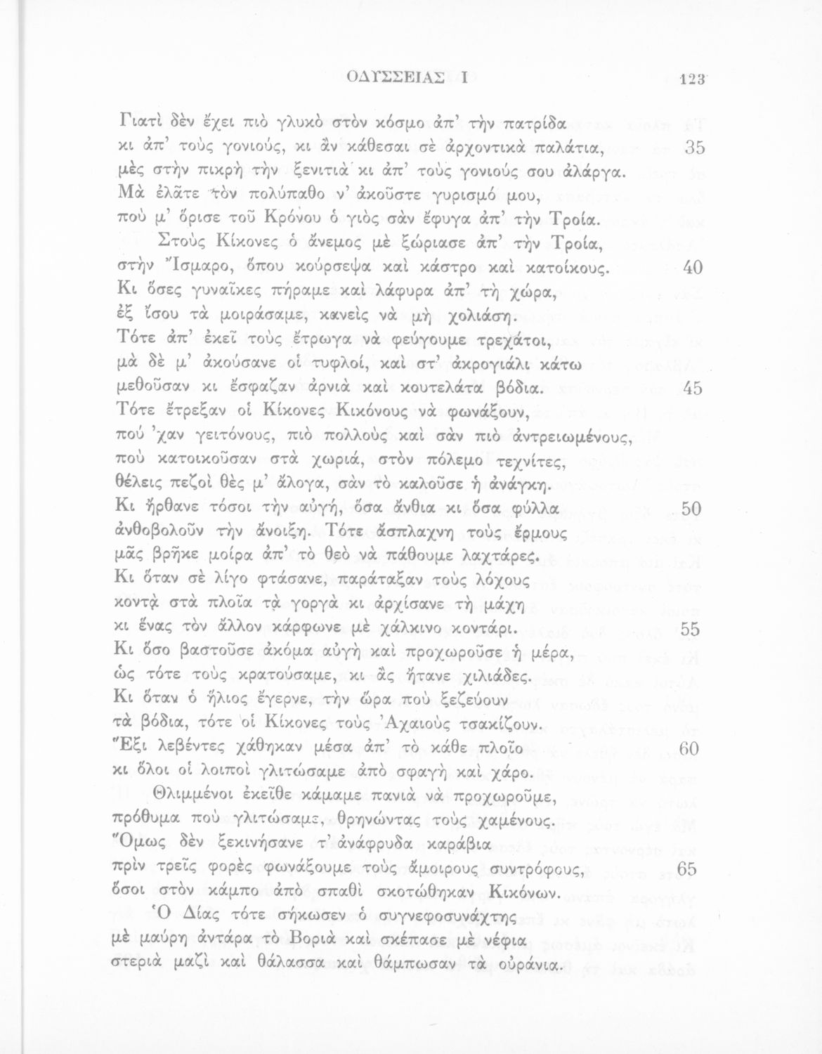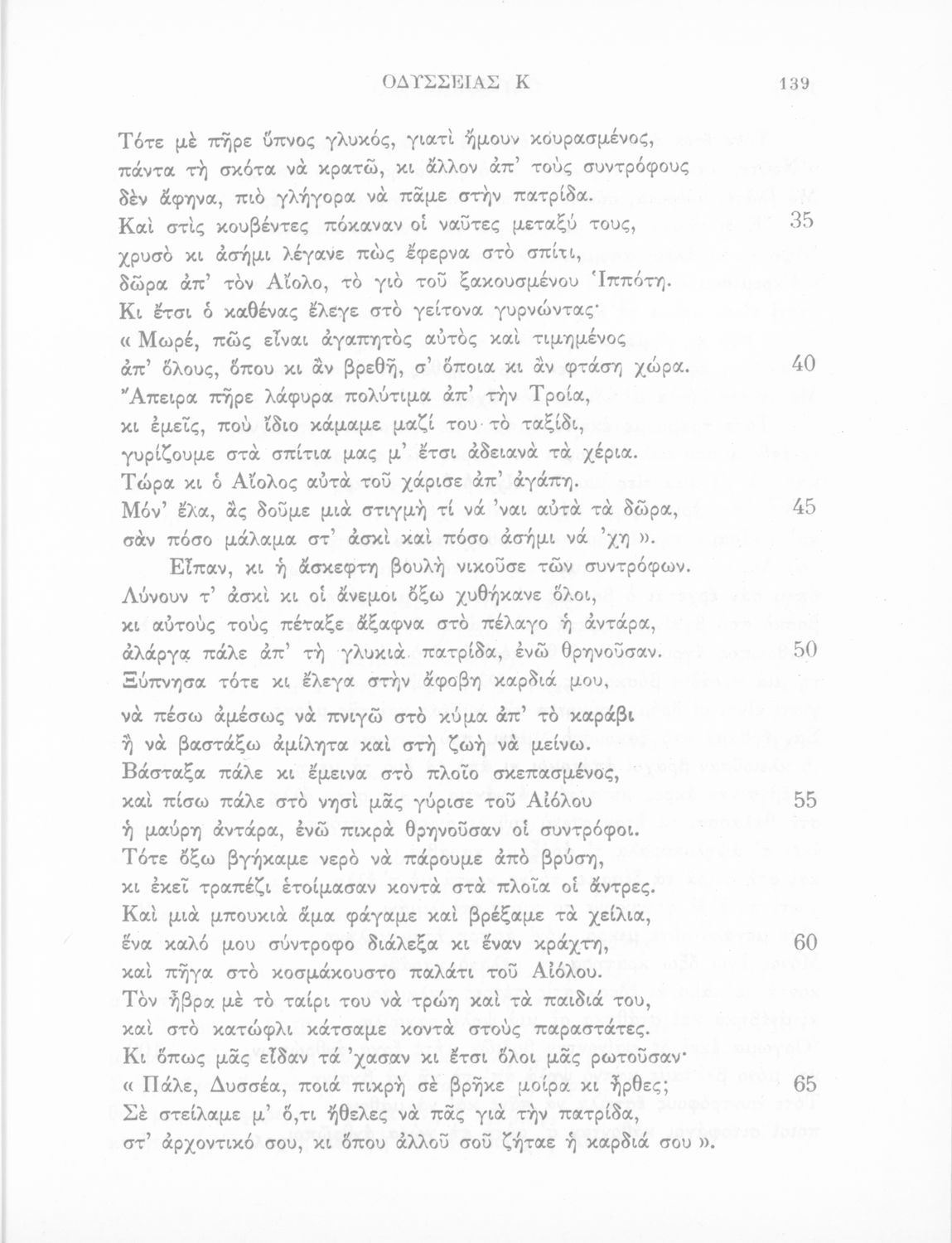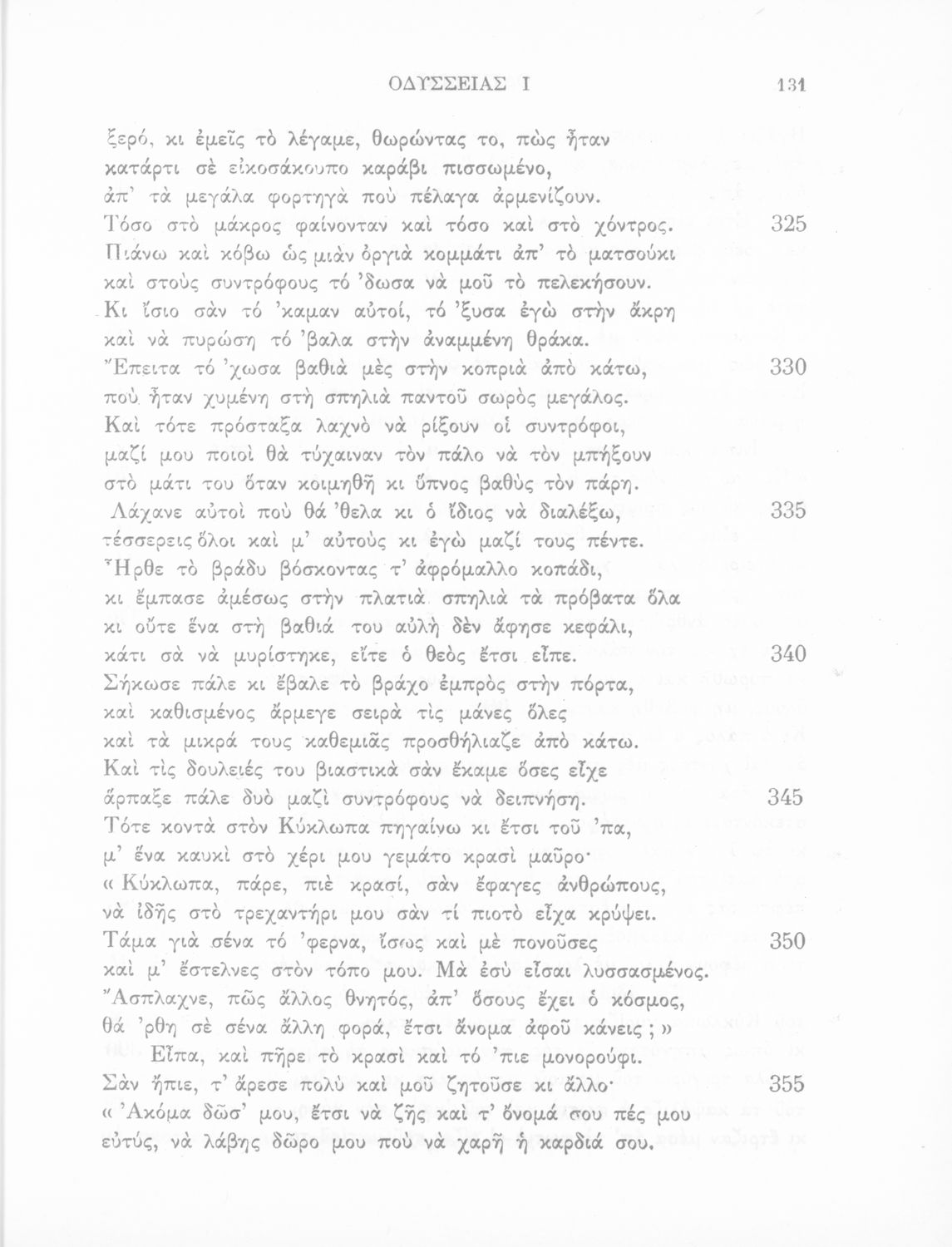 Σχολικό εγχειρίδιο του Γυμνασίου για το μάθημα των Αρχαίων Ελληνικών. Πρόκειται για το κείμενο της Οδύσσειας μεταφρασμένο στο τέλος περιλαμβάνει λεξιλόγιο.