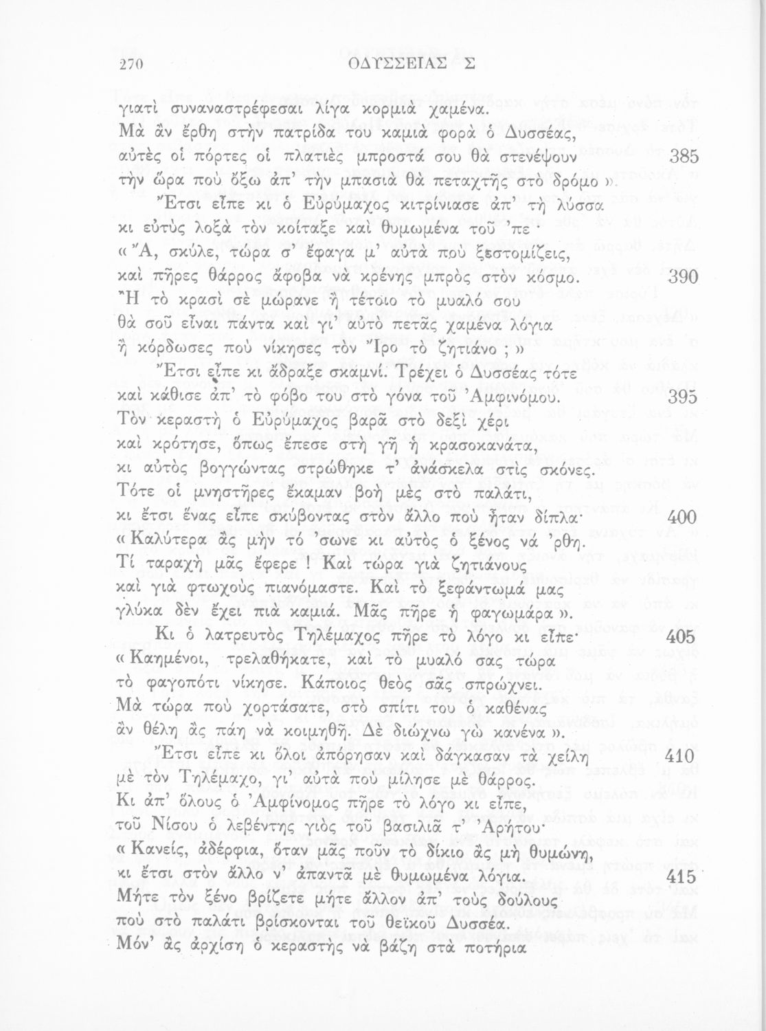 Σχολικό εγχειρίδιο του Γυμνασίου για το μάθημα των Αρχαίων Ελληνικών. Πρόκειται για το κείμενο της Οδύσσειας μεταφρασμένο στο τέλος περιλαμβάνει λεξιλόγιο.