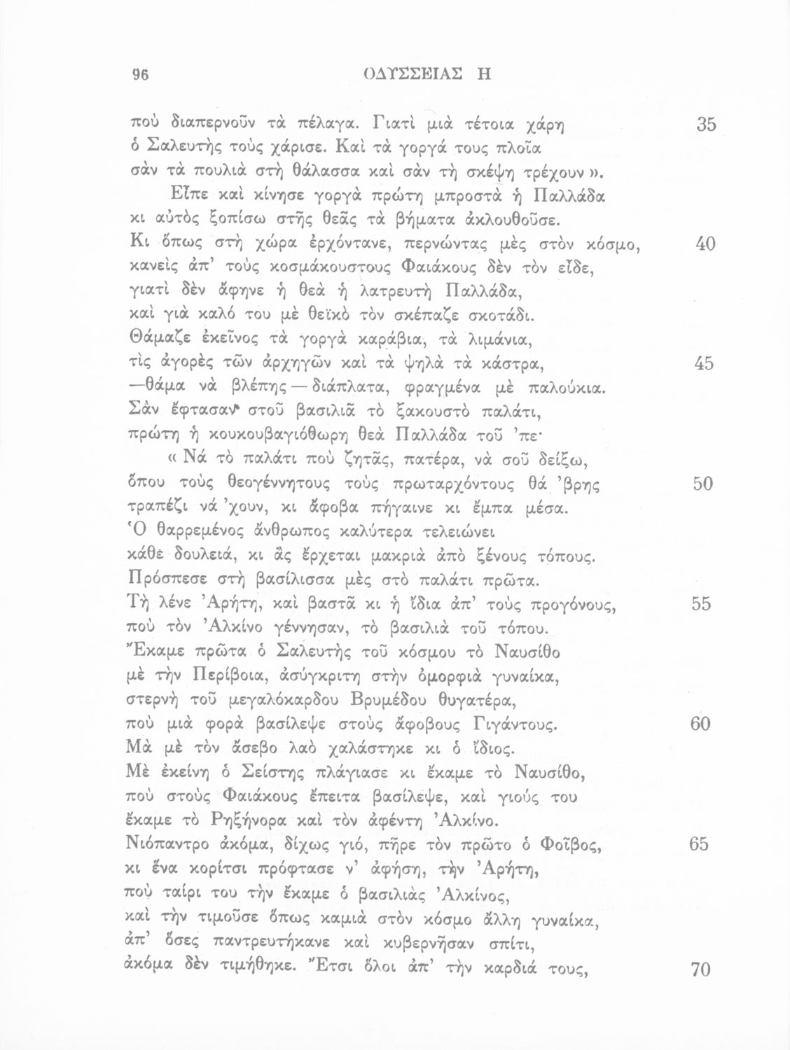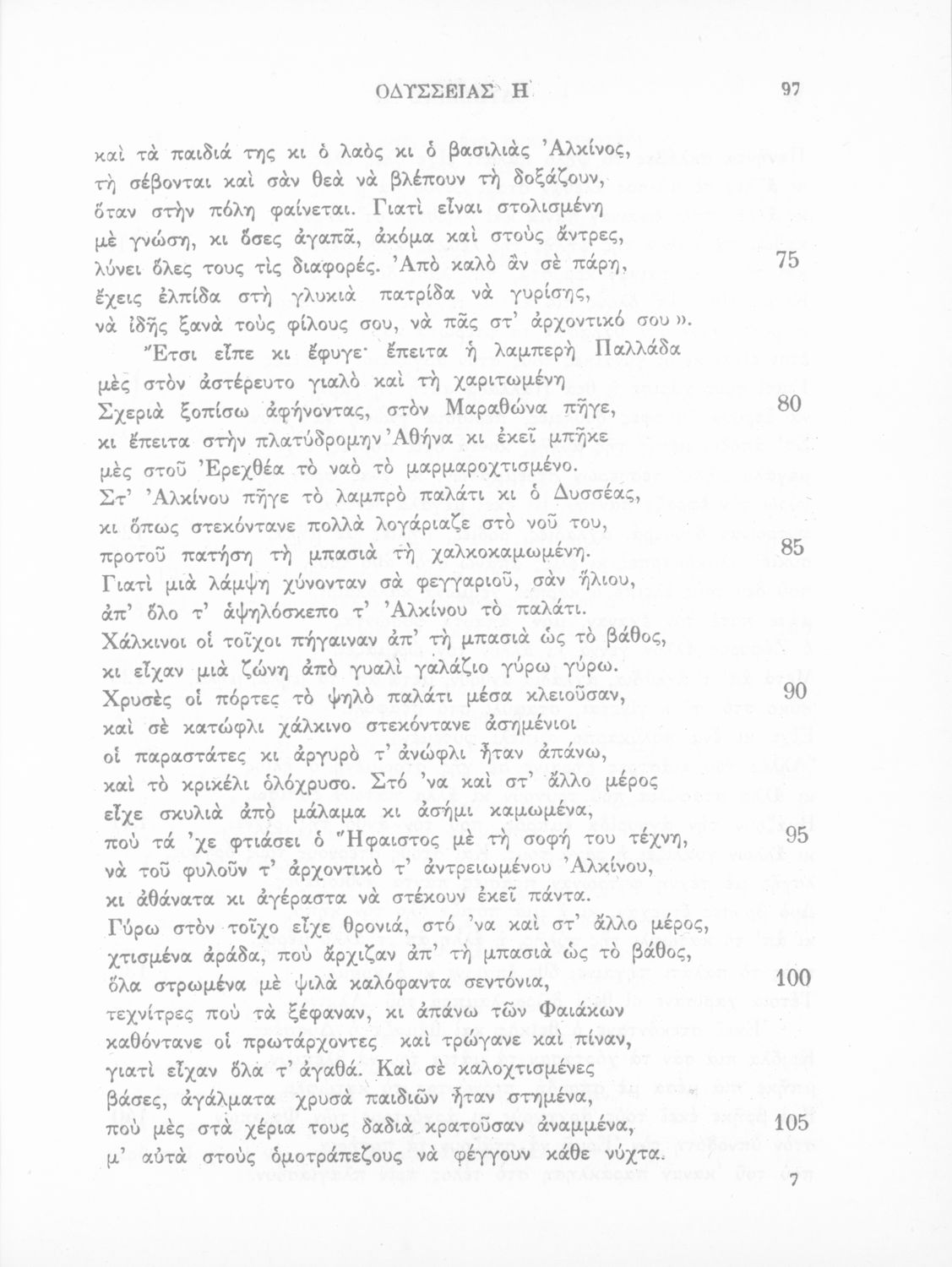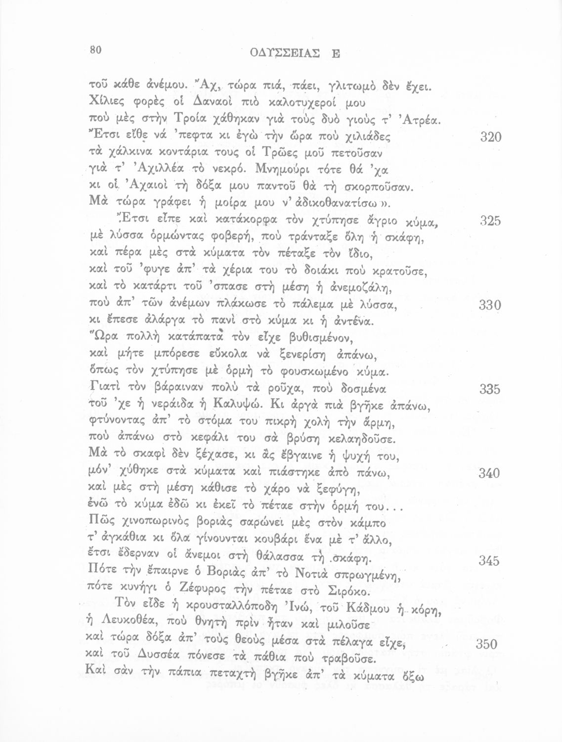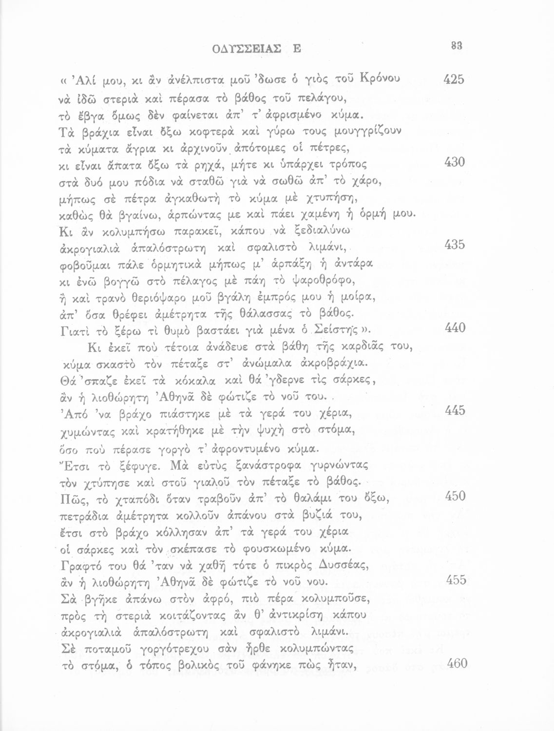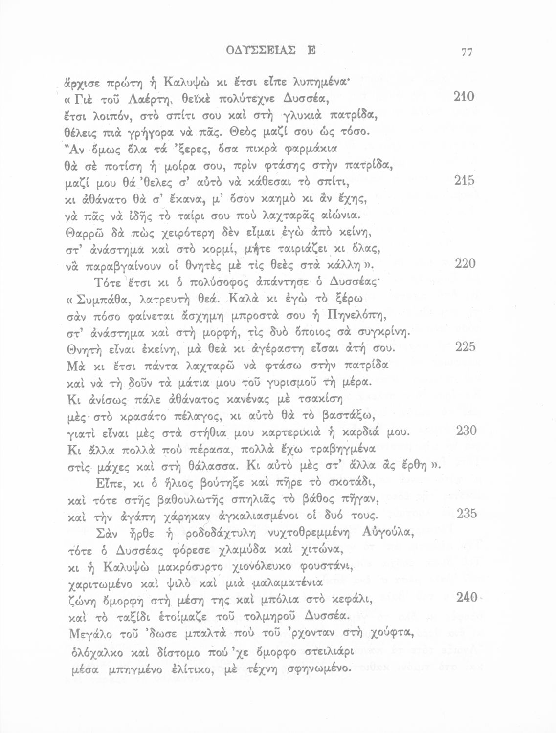 Παιδαγωγικό βοήθημα Αρχαίων Ελληνικών που περιλαμβάνει μετάφραση της Ομήρου Οδύσσειας στη νέα ελληνική, εισαγωγή στην επική ποίηση και στην Οδύσσεια, περιλήψεις και σημειώσεις.