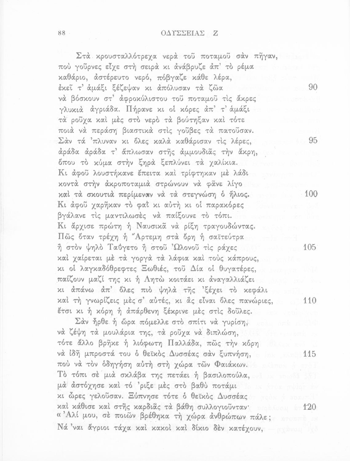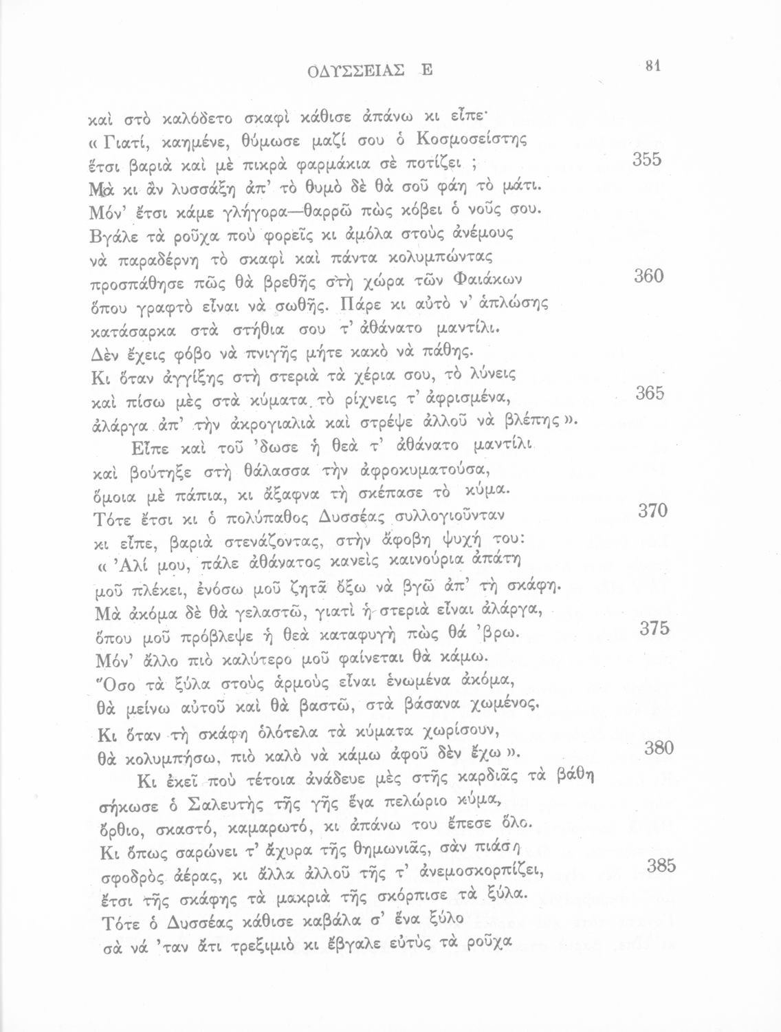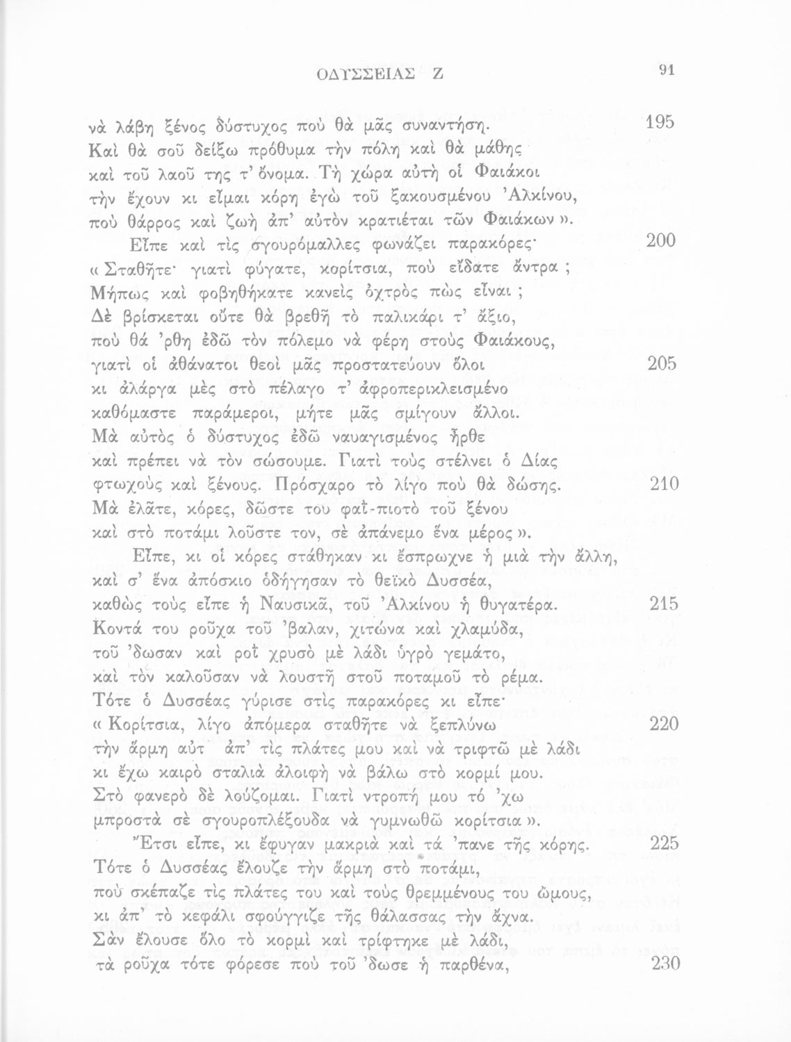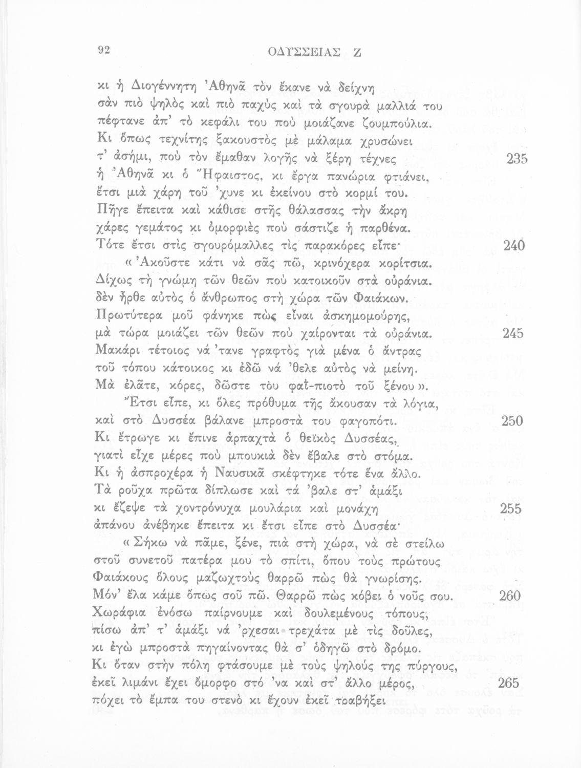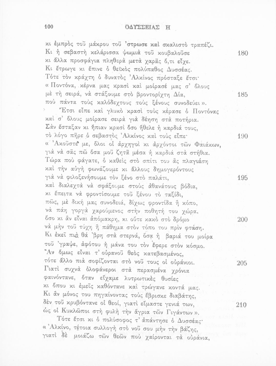 Σχολικό εγχειρίδιο του Γυμνασίου για το μάθημα των Αρχαίων Ελληνικών. Πρόκειται για το κείμενο της Οδύσσειας μεταφρασμένο στο τέλος περιλαμβάνει λεξιλόγιο.
